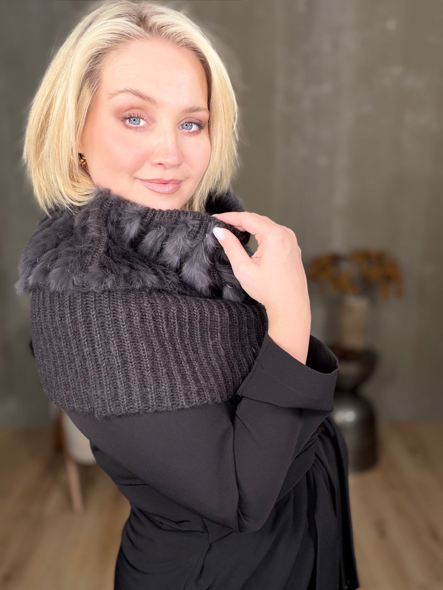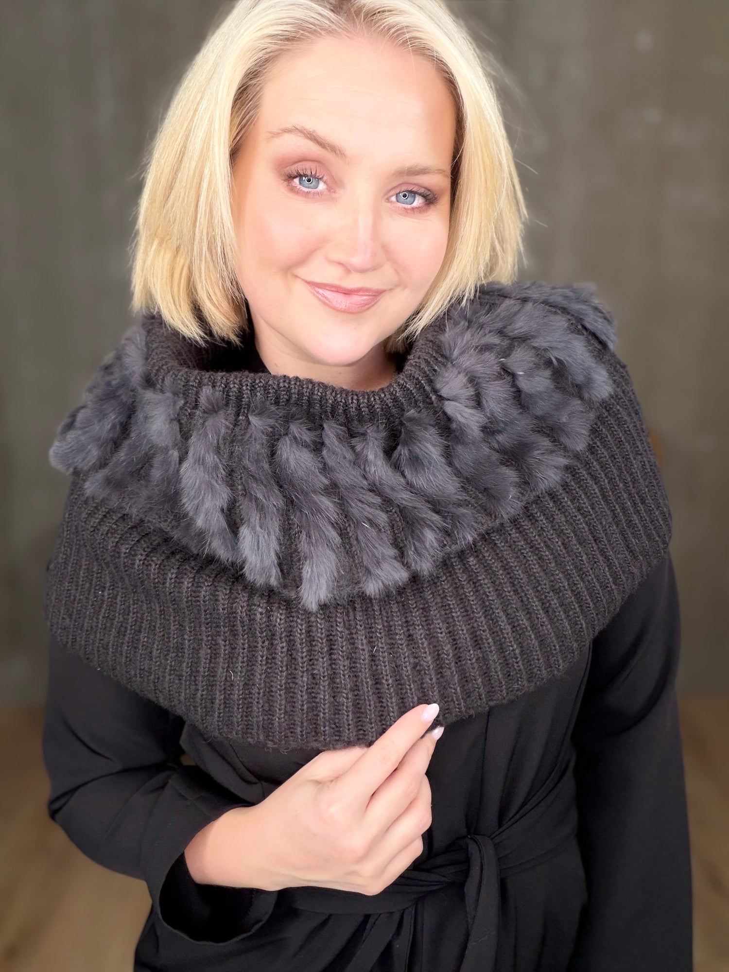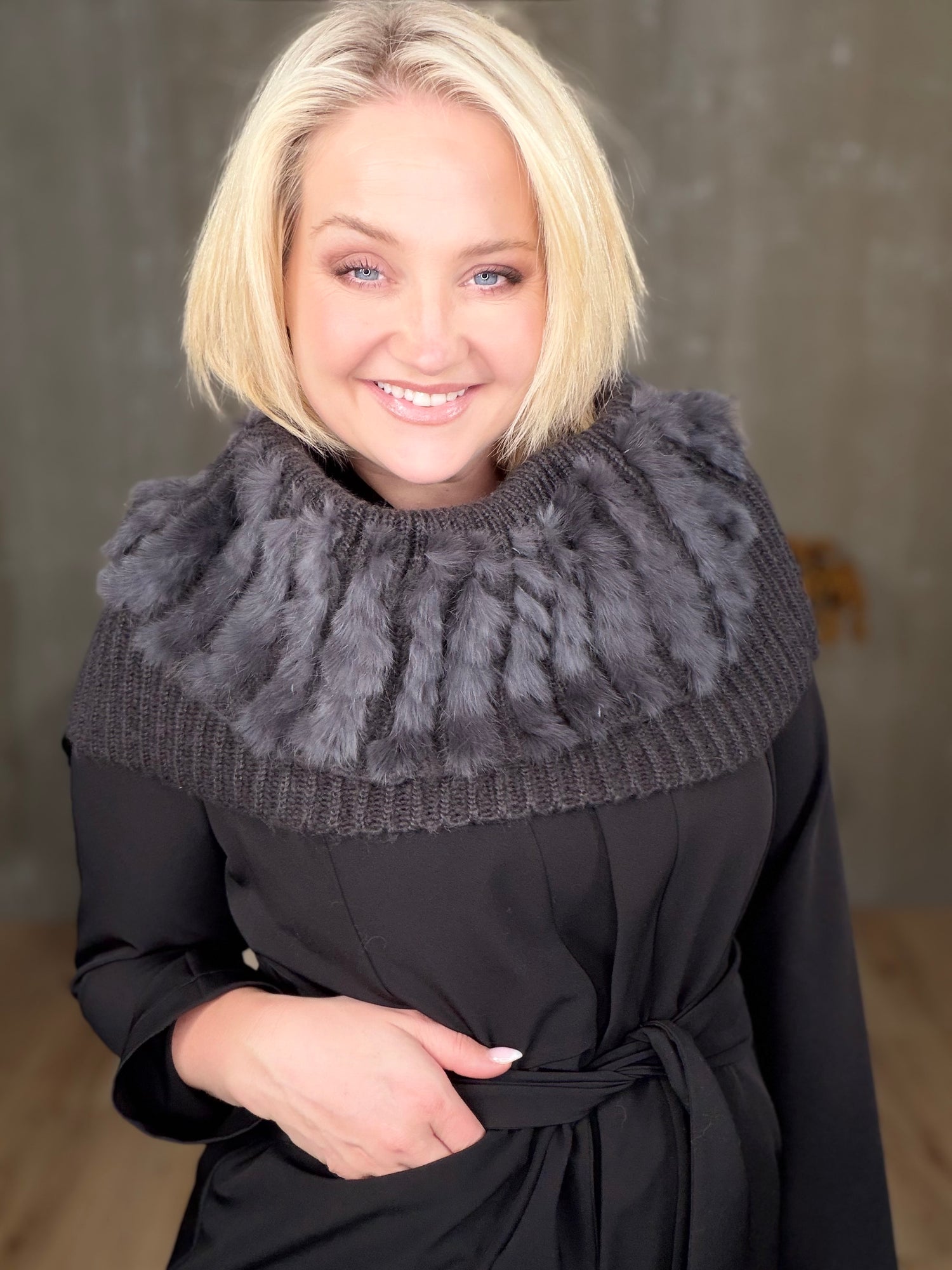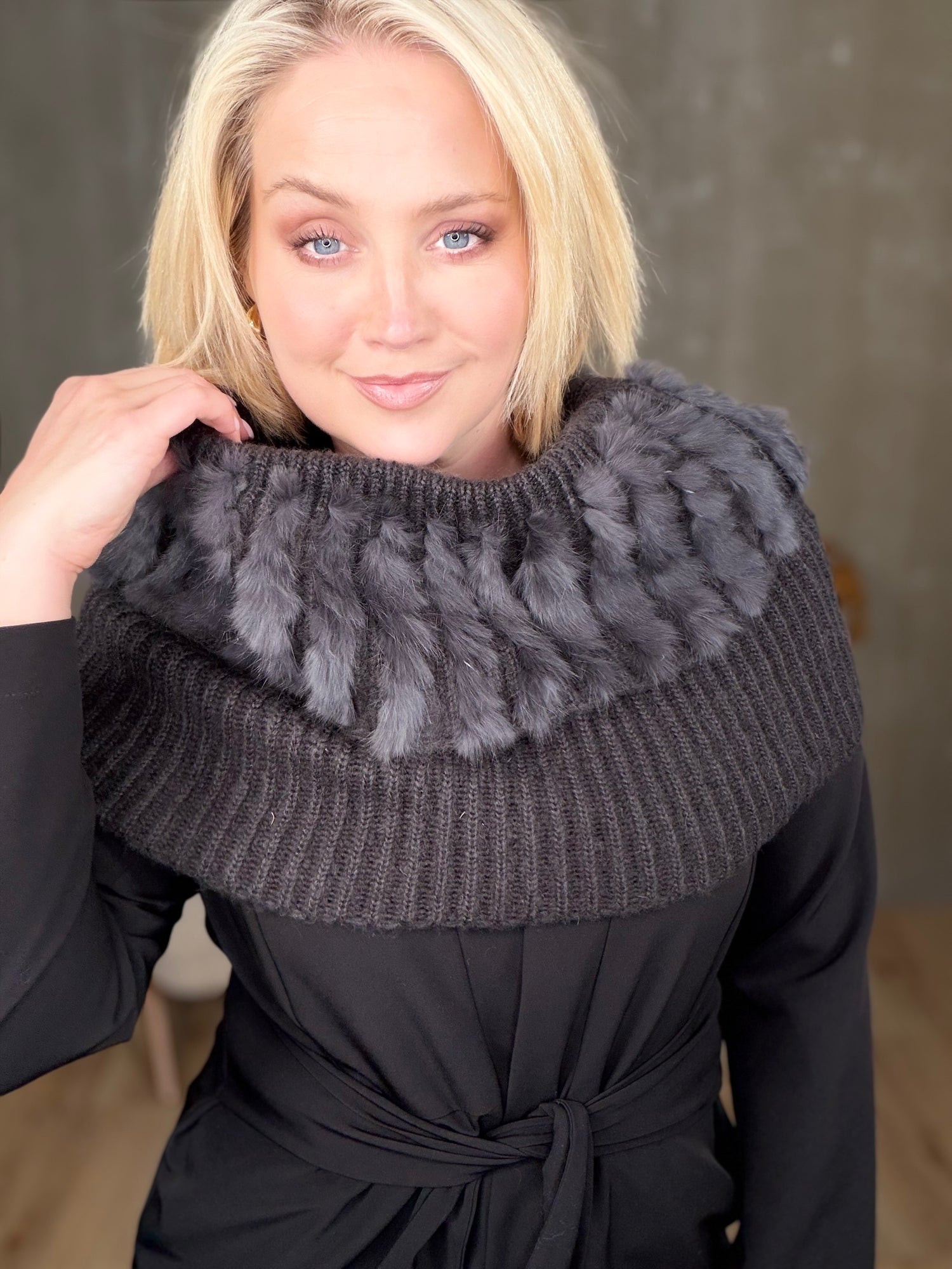 Dásamlega fallegur og hlýr kragi með kanínu. Fullkominn á köldum dögum undir kápur og jakka.