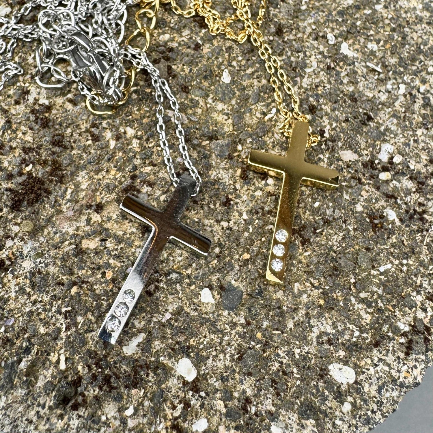 Þessir krossar eru nýir hjá Kristu og henta ungum sem öldnum. Þeir henta öllum kynjum og eru um 2 cm að hæð og 1 cm að breidd. Það eru 3 litlir steinar í krossunum. Krossarnir eru í fínlegri keðju og má nota í vatni, sundi og fleira án þess að falli á skartið. Lengd keðju er 41-47 stillanleg.