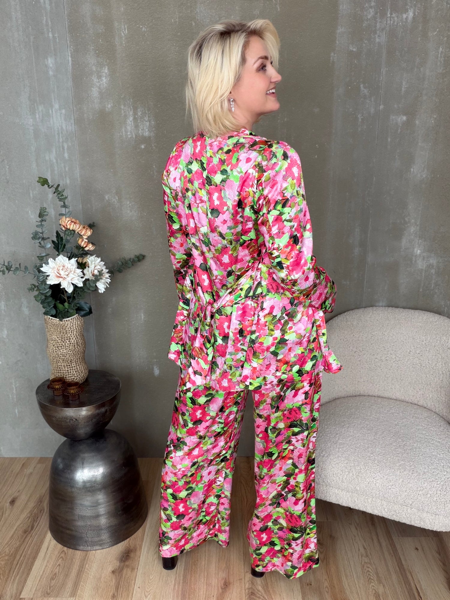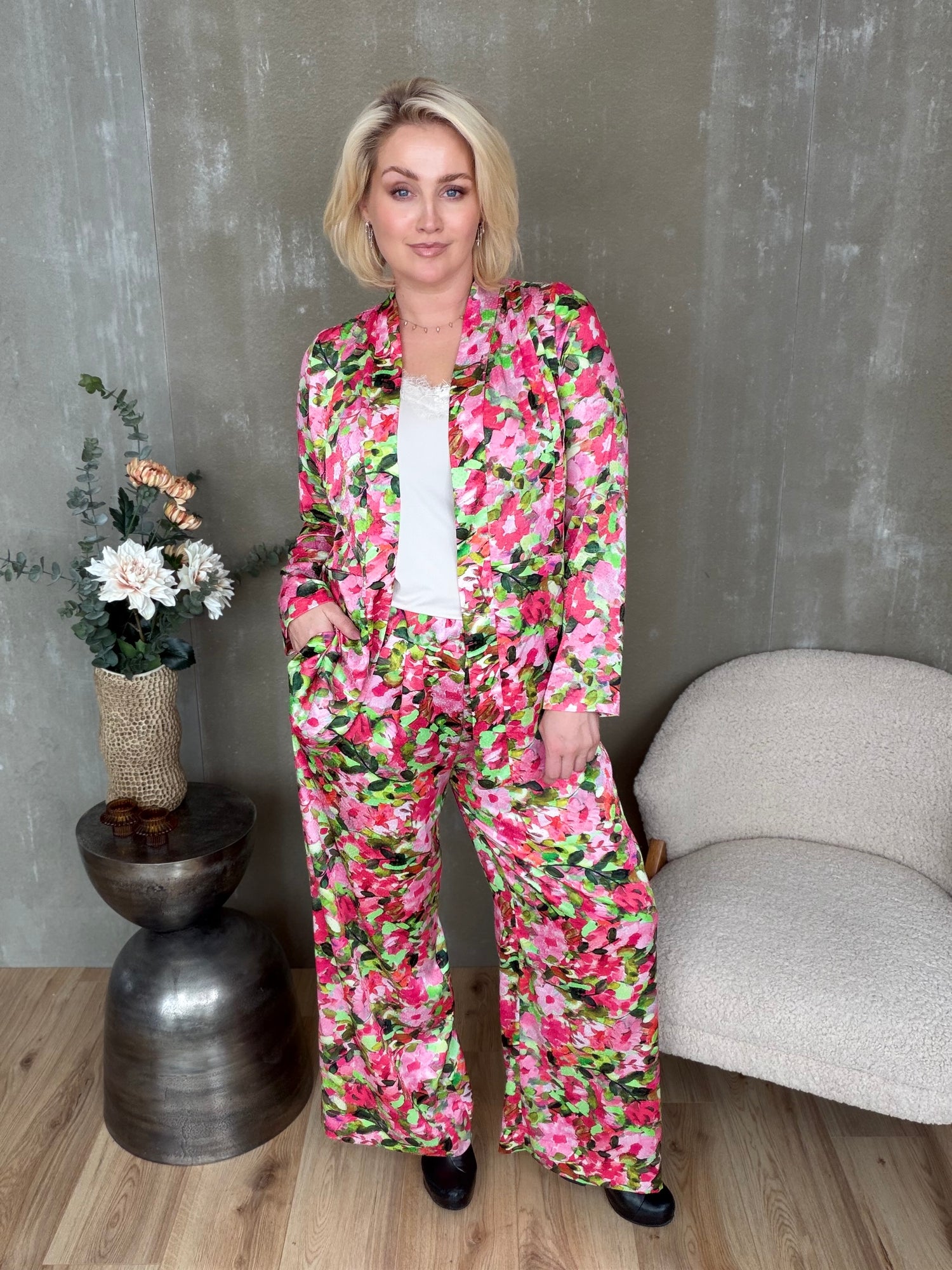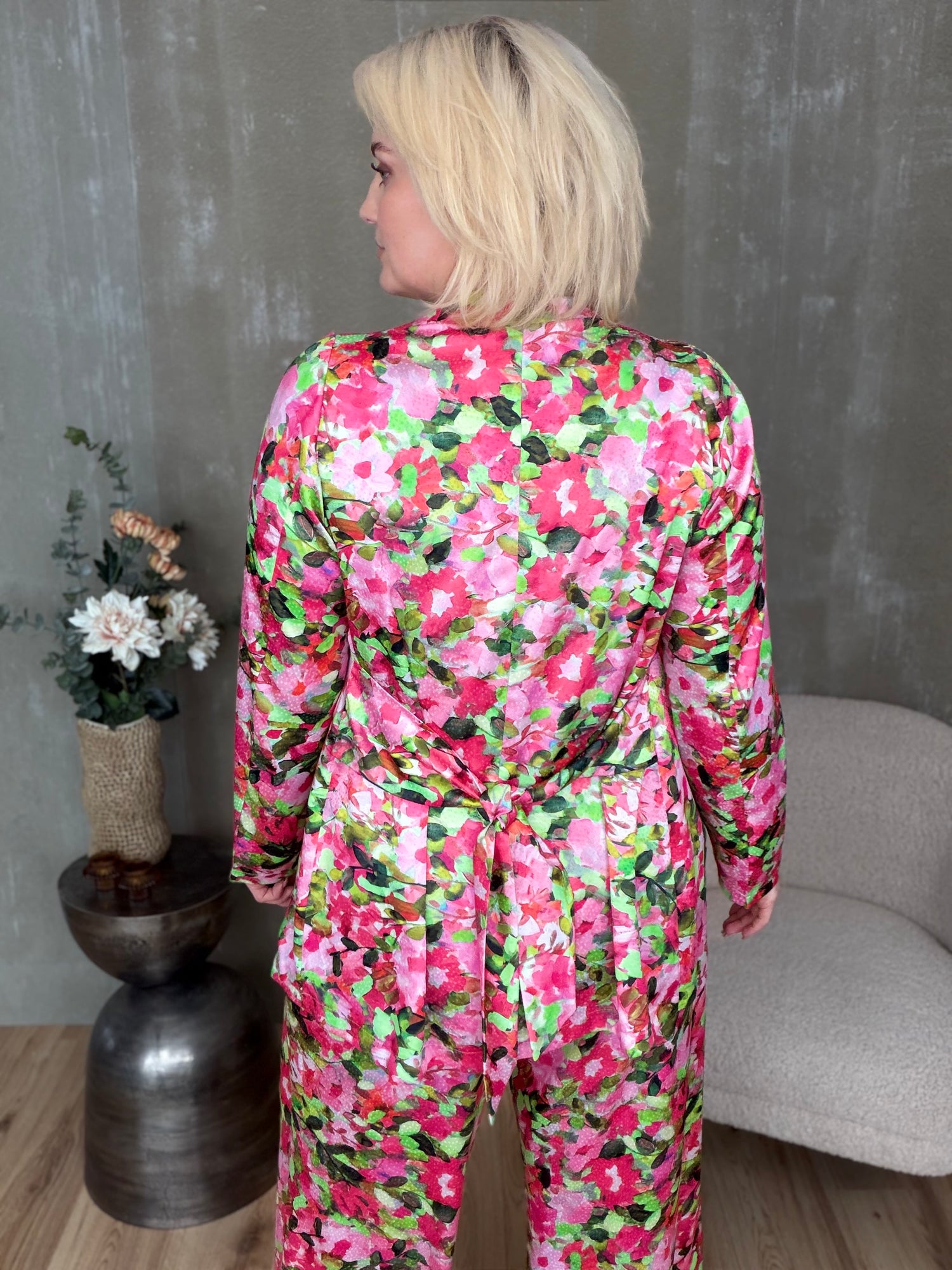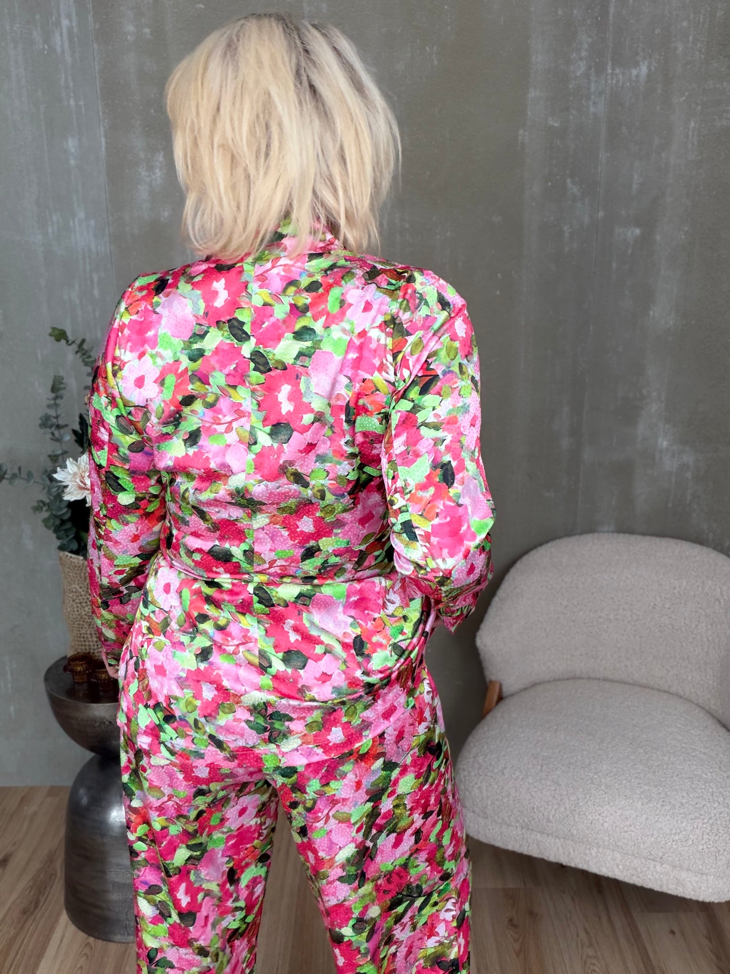 Mímir Satín Blazer - Bleikur/Blóma / XS er forpöntuð og verður send um leið og hún kemur aftur á lager.