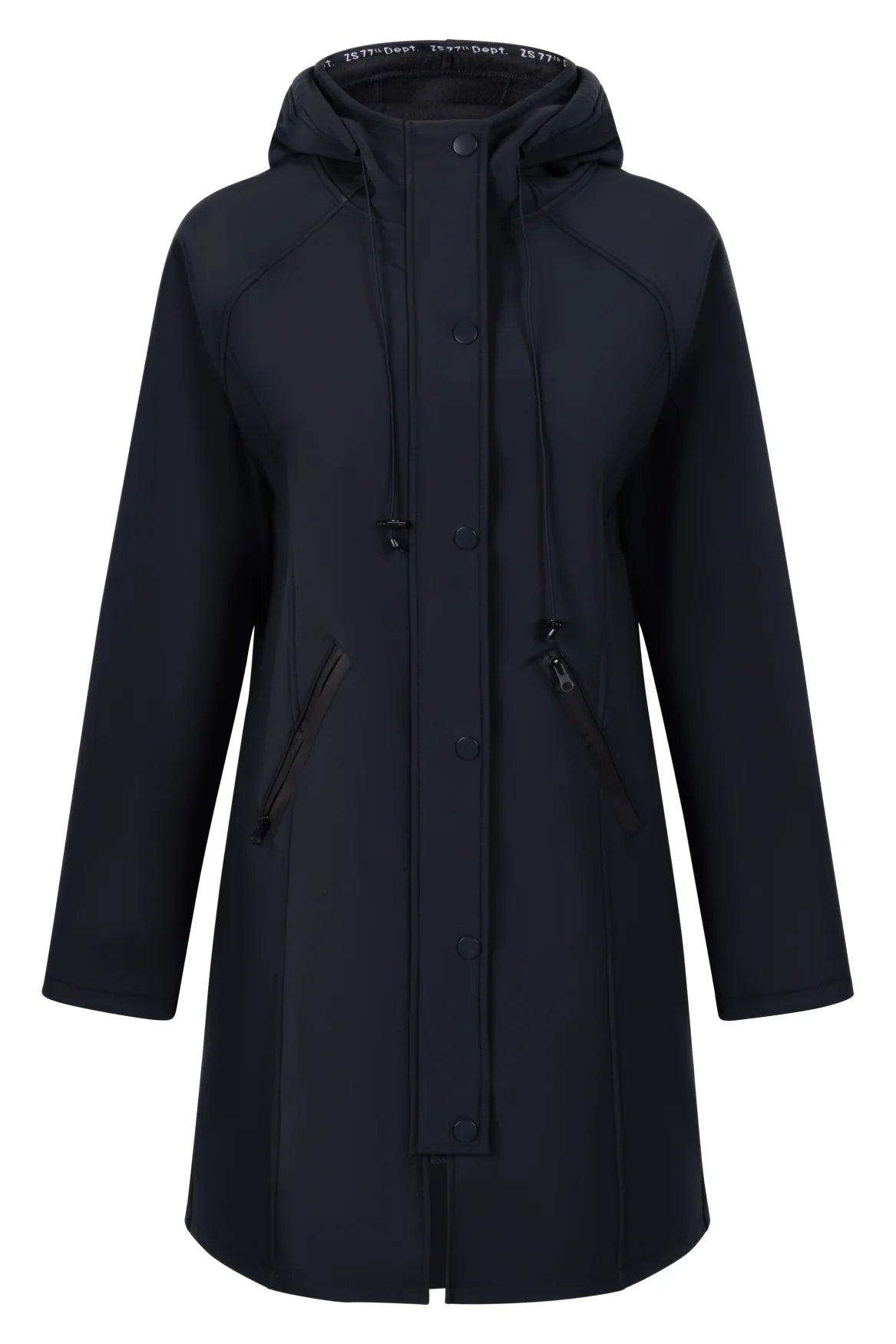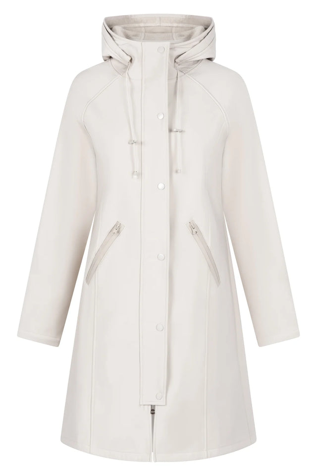 Klassískur og praktískur jakki með hettu, beinu og klæðilegu sniði. Rennilás og smellur að framan ásamt vösum með rennilás gera hann bæði þægilegan og notadrjúgan – fullkominn fyrir daglega notkun með sportlegu yfirbragði.