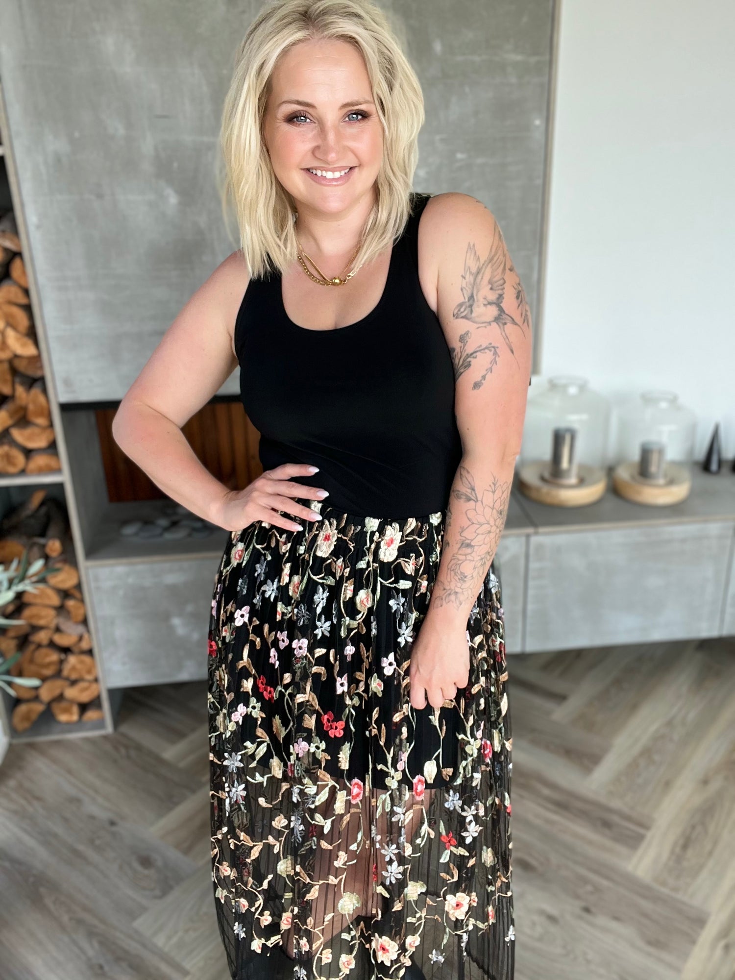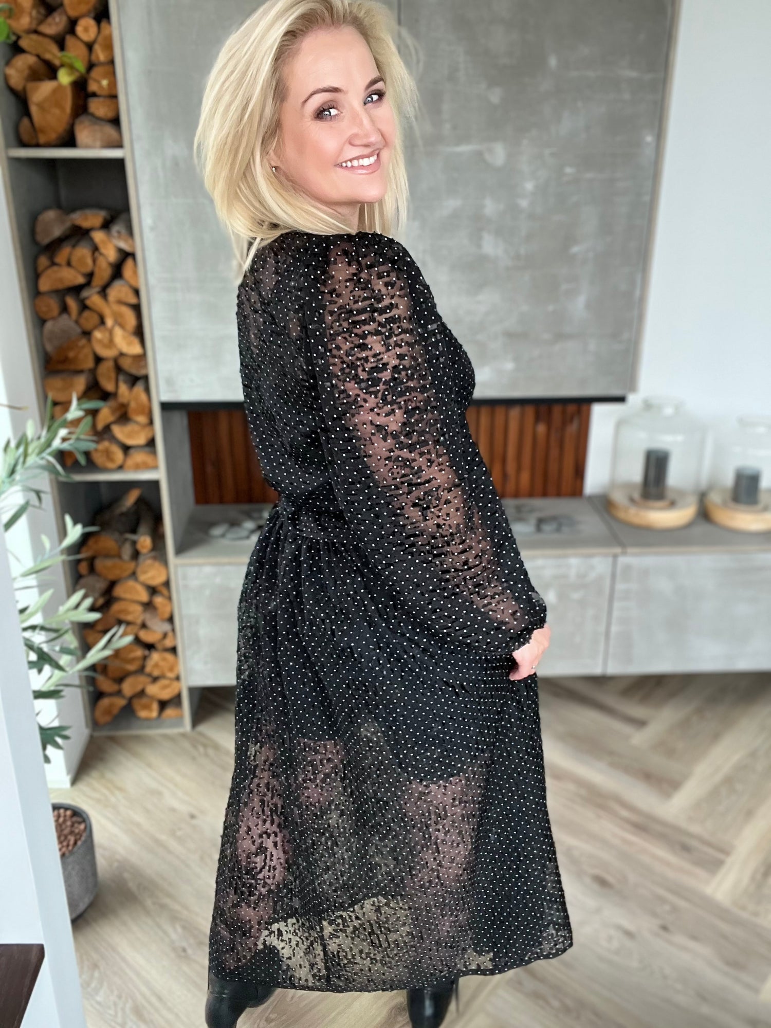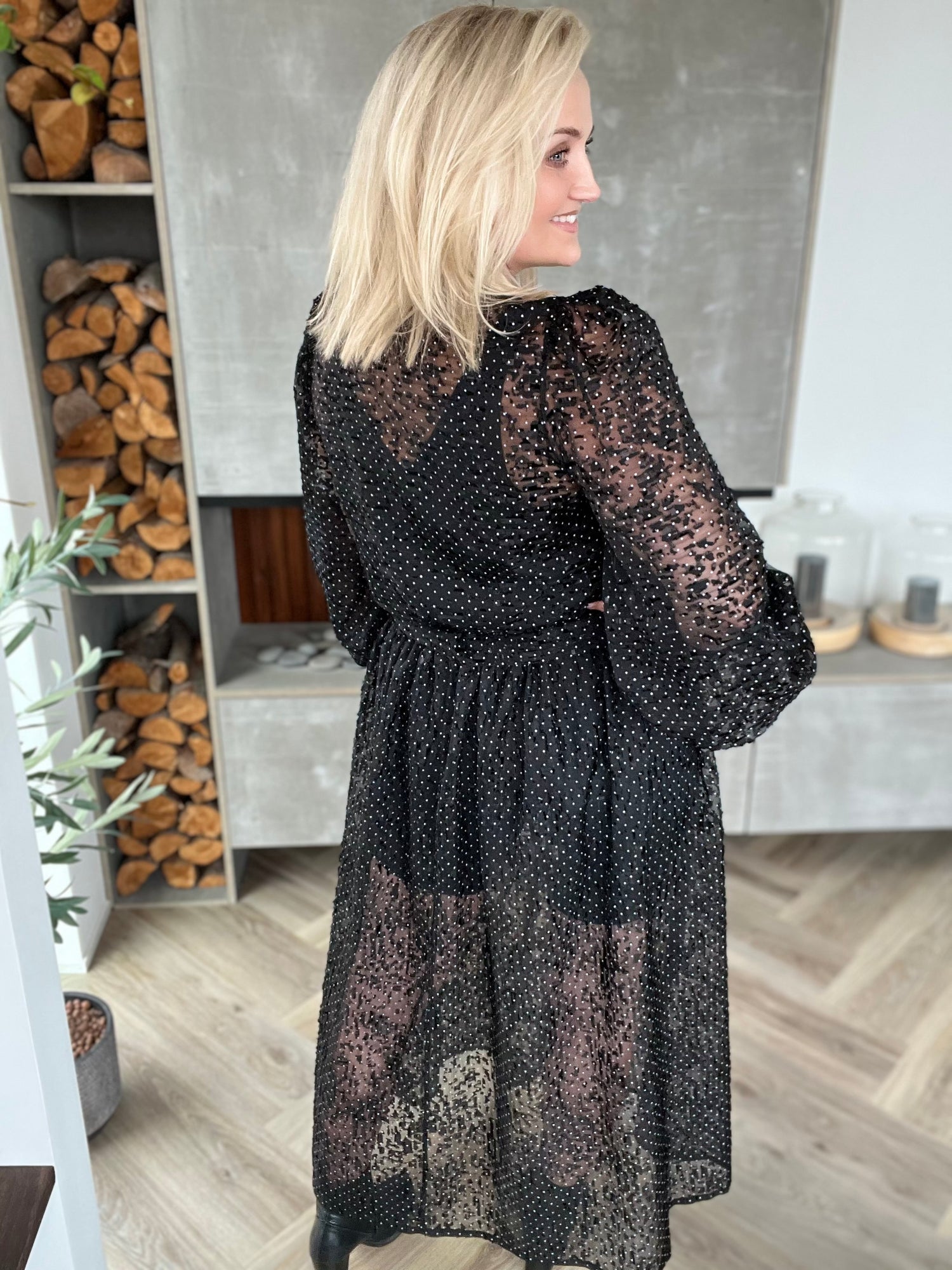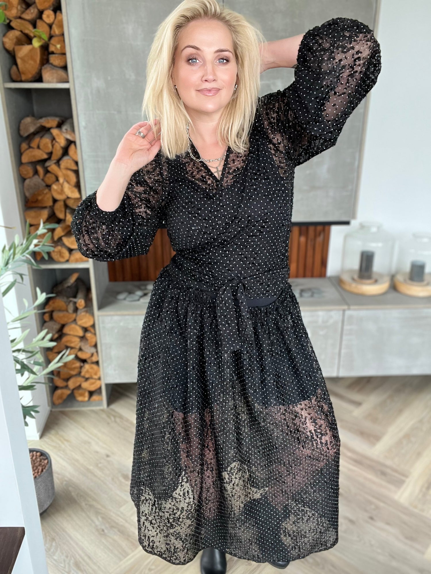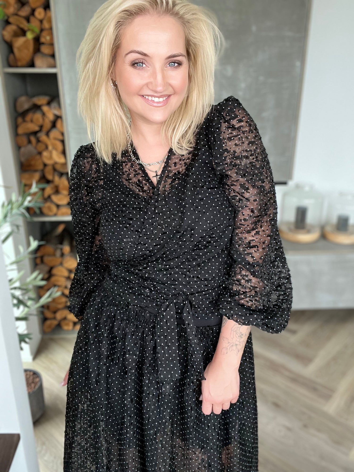Fallegt siffon pils með doppum eða blómaáferð og þægilegri teygju í mitti.