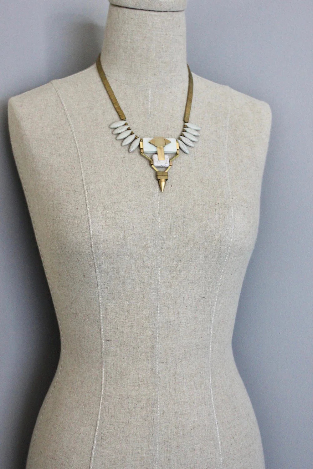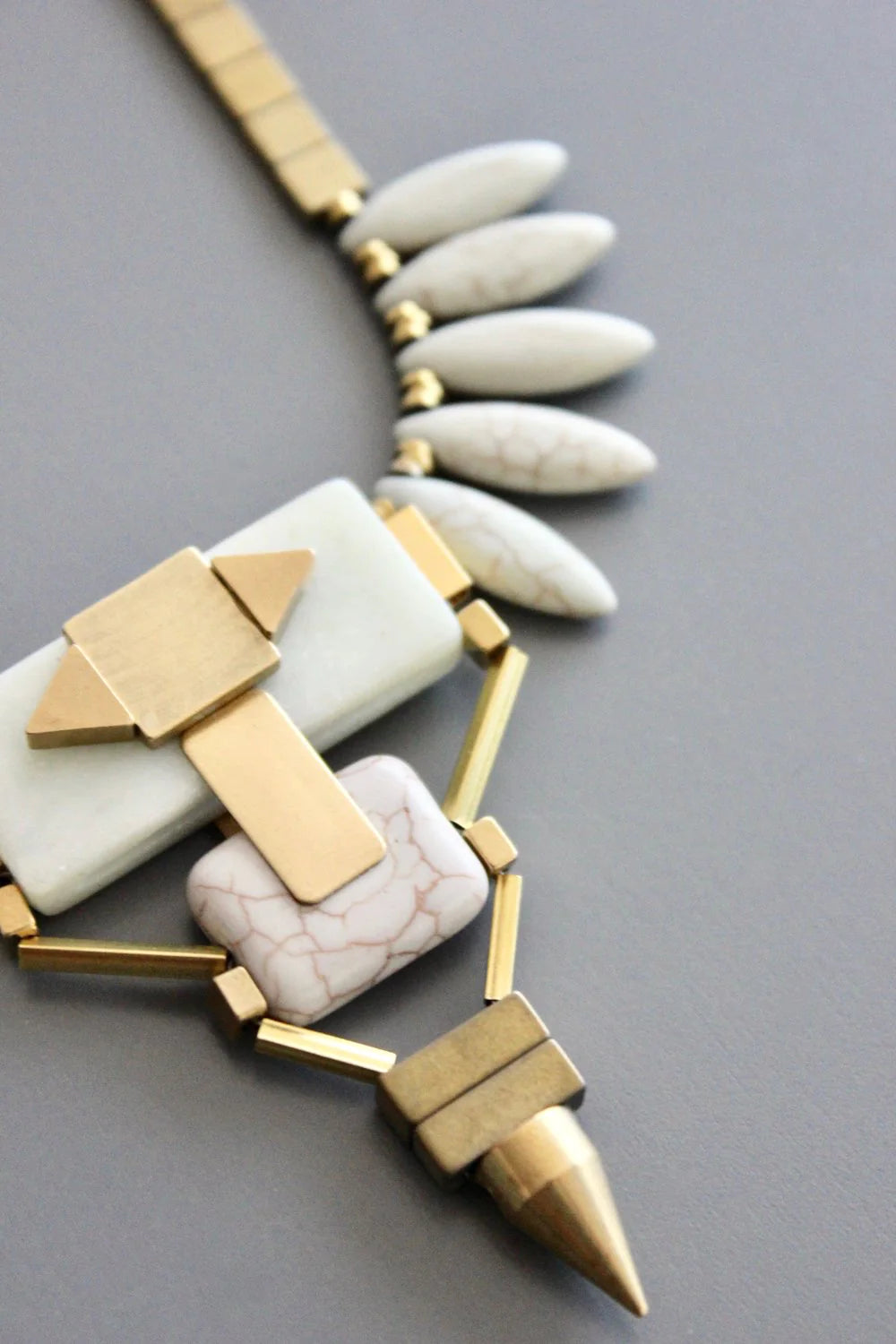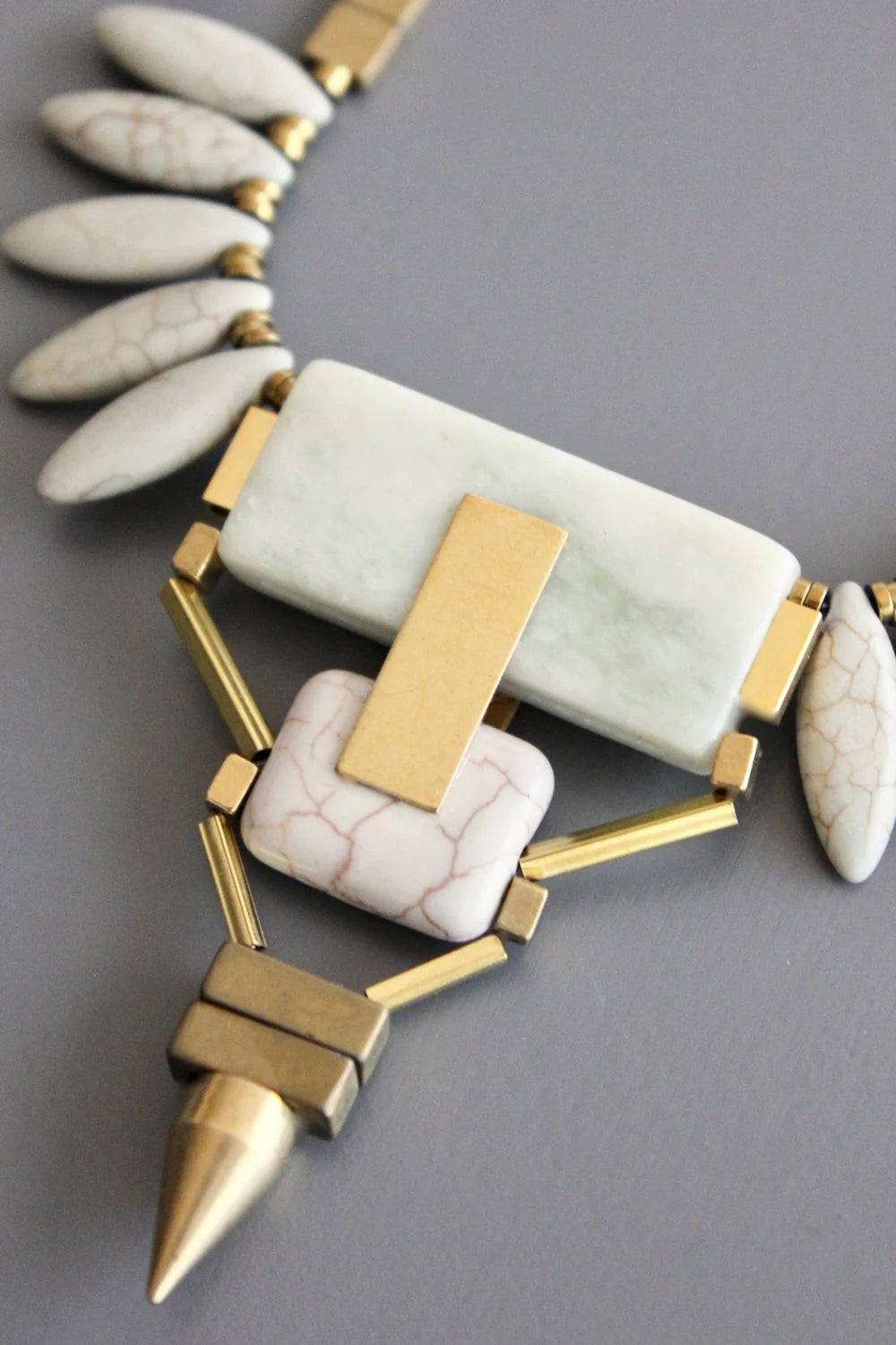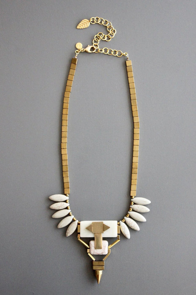 16" REVERSIBLE necklace with plated hematite, magnesite, brass, and agate. 3 inch extender.r.