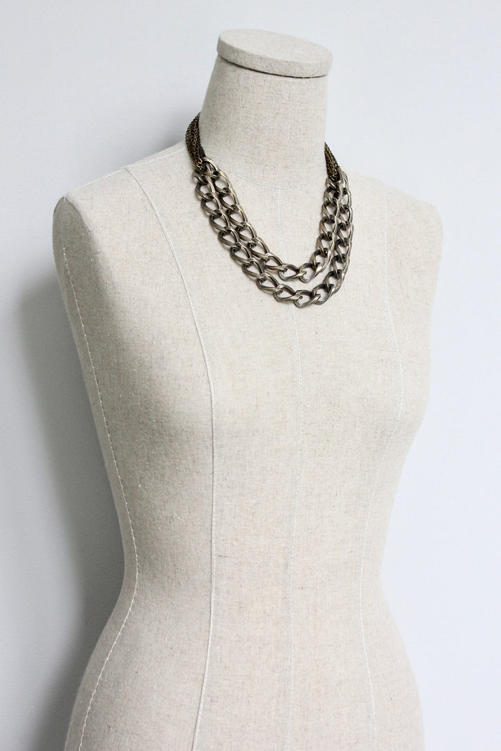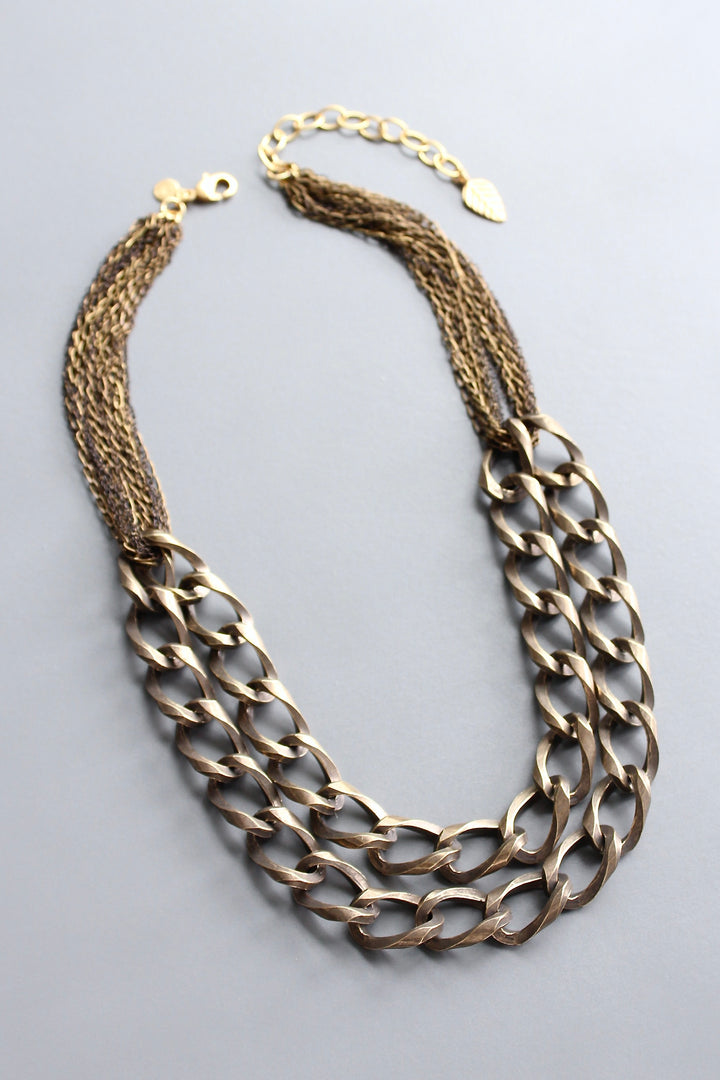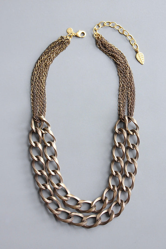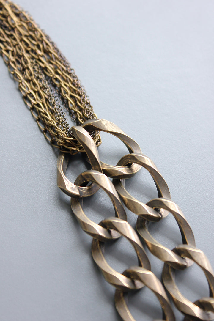18” multi-strand necklace with oxidized brass chain. 3 inch extender.