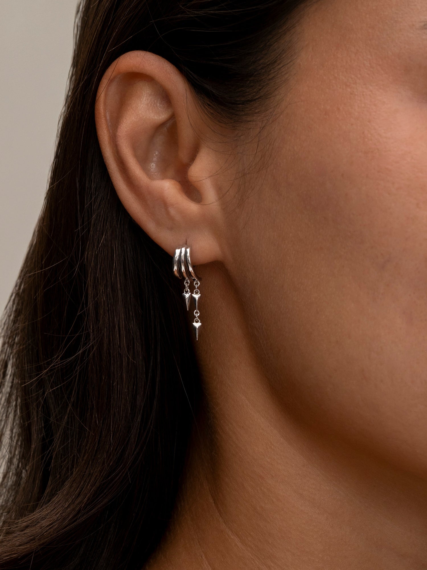 Lynx eyrnalokkarnir eru fágaður og tímalaus grunnur fyrir hvaða tilefni sem er. Þeir eru styttri að lengd, sem gerir þá fullkomna fyrir hreint og minimalistískt útlit í fyrsta gat – eða hægt að nota þá í annað gat með öðrum lokkum.