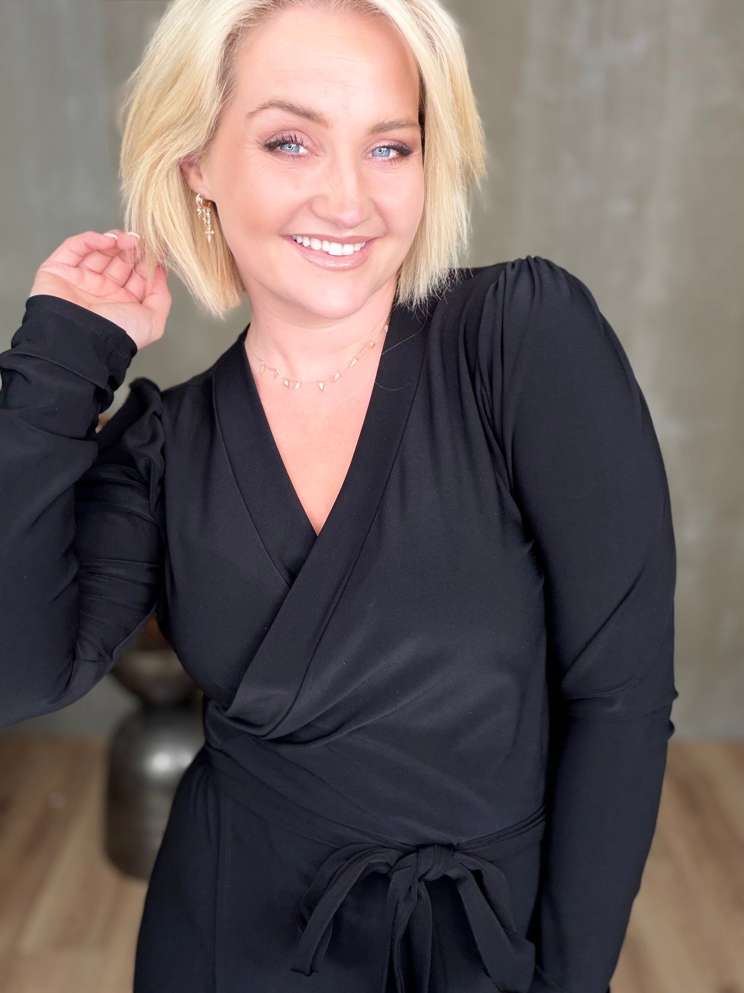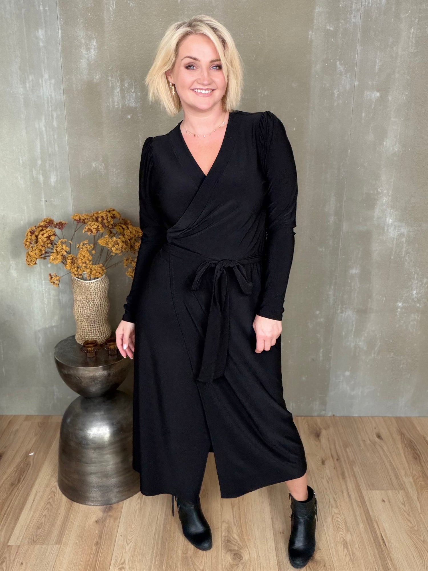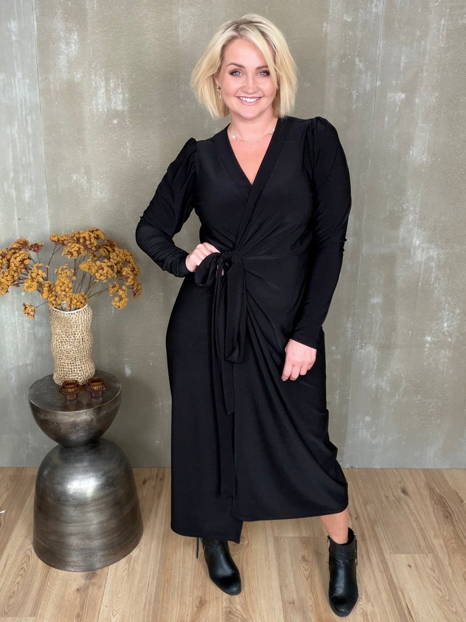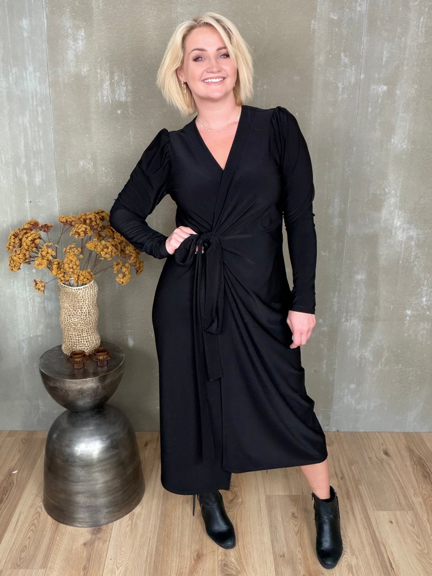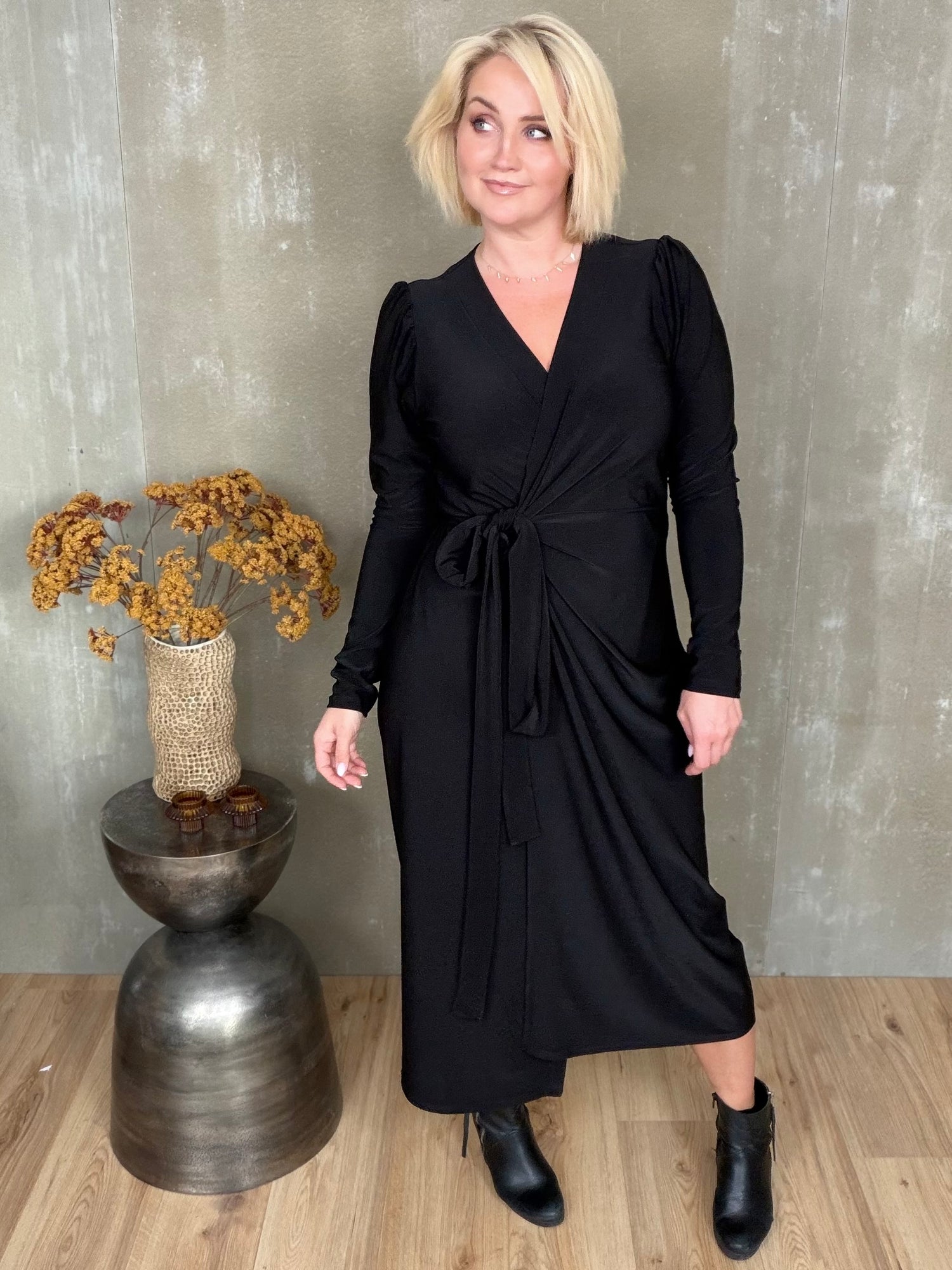 Gras er dásamlega léttur og flæðandi wrap kjóll sem hægt er að binda á nokkra vegu. Hann er með púff og efnið er skemmtilega efni með teygju.