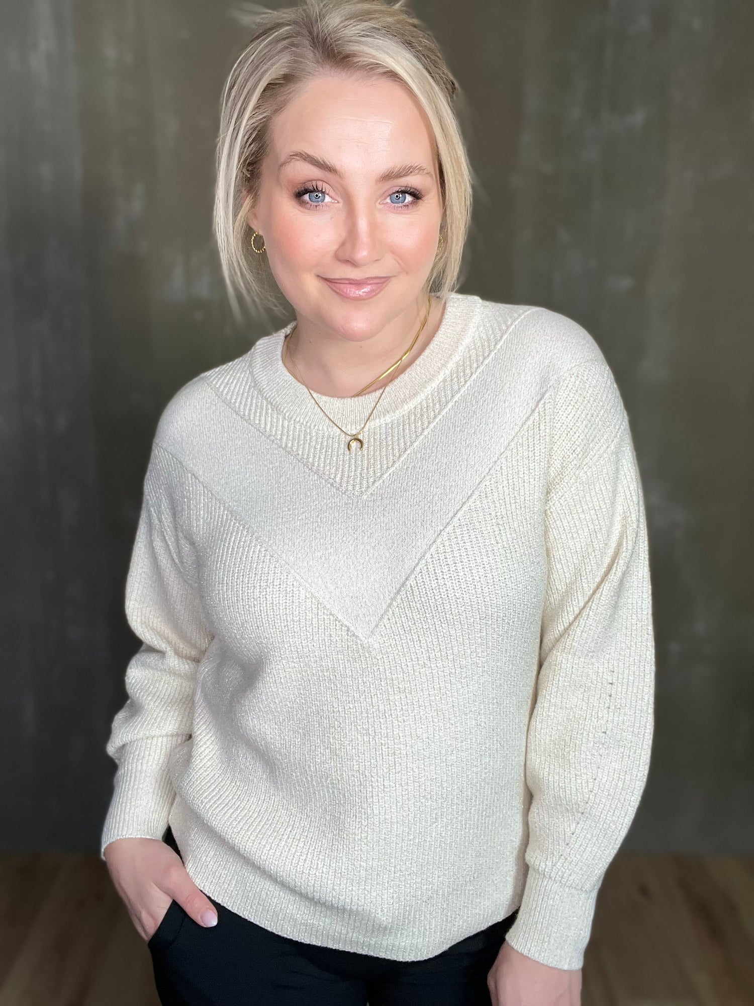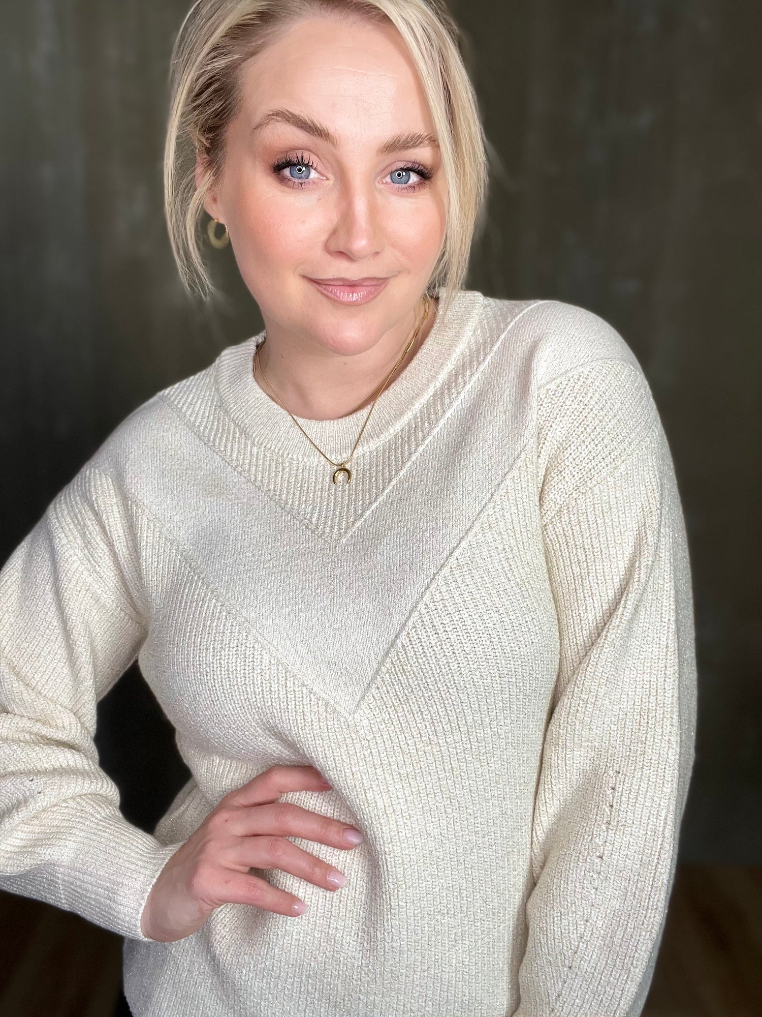 Falleg peysa frá Zoso! Melody prjónapeysan er með fallegu prjóni, hringhálsmáli og víðu, “oversized” sniði. Hún passar fullkomlega við Belle Flair Travel buxurnar frá Zoso eða einhverjar aðrar buxur og munstrið í peysunni setur punktinn yfir i-ið! Virkilega mjúk peysa með smá glitri.