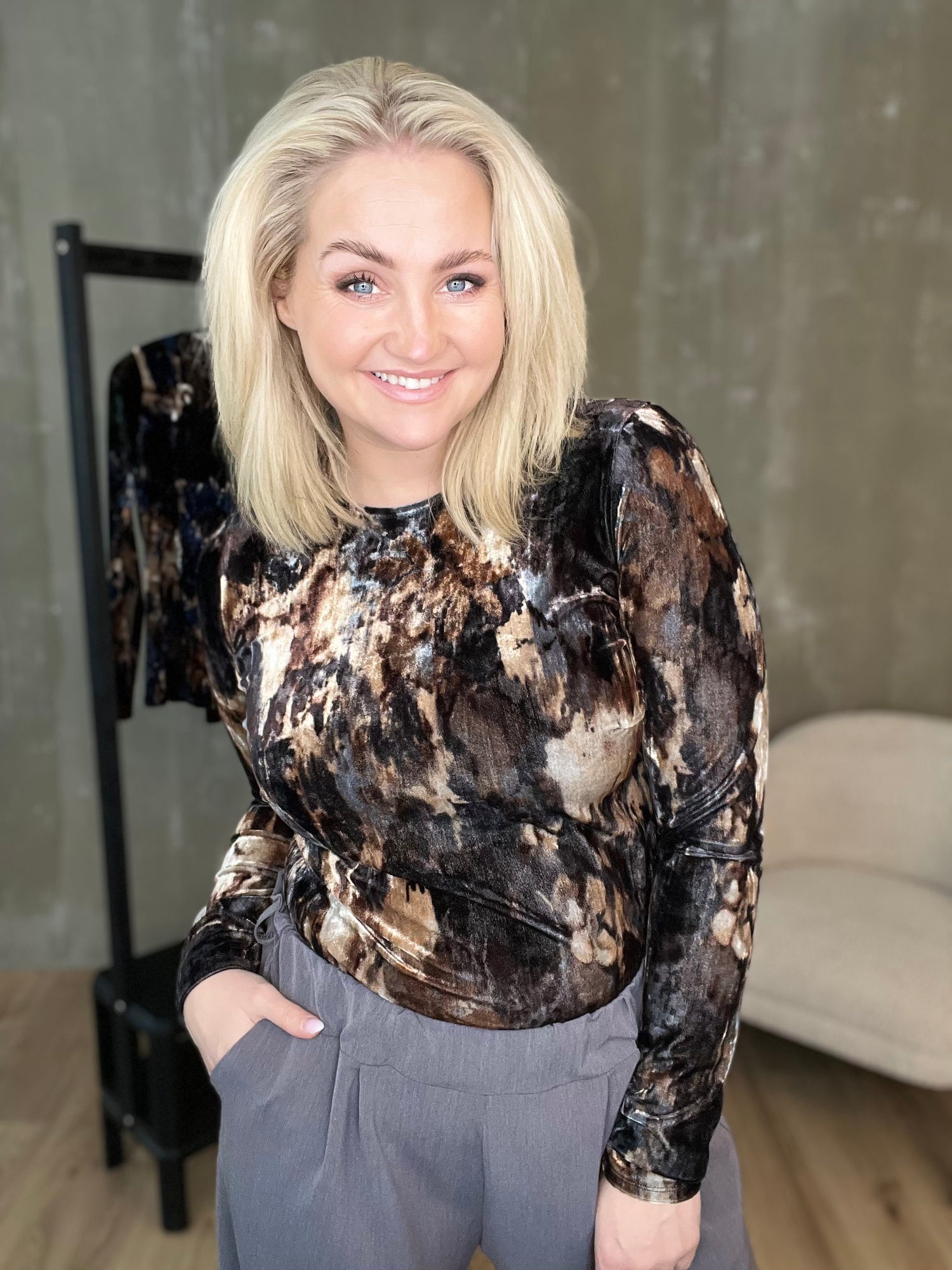 Alma toppur velúr - XS / Blá/brúnn er forpöntuð og verður send um leið og hún kemur aftur á lager.