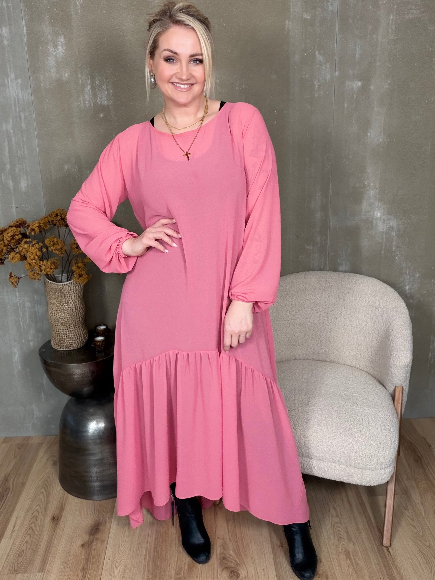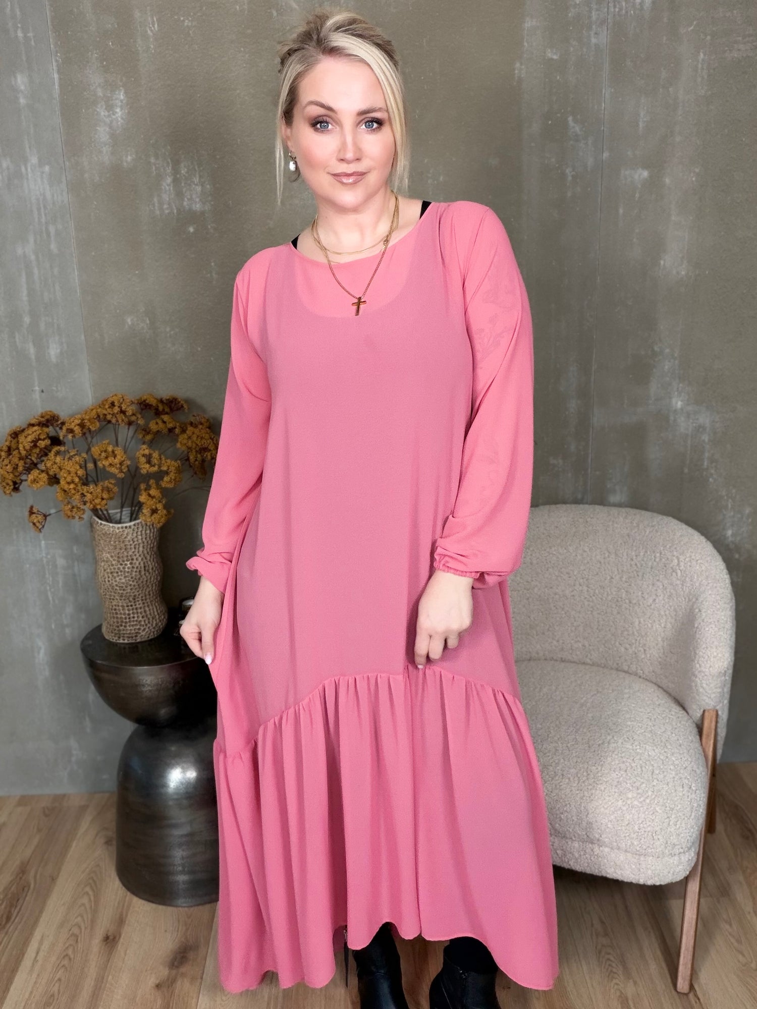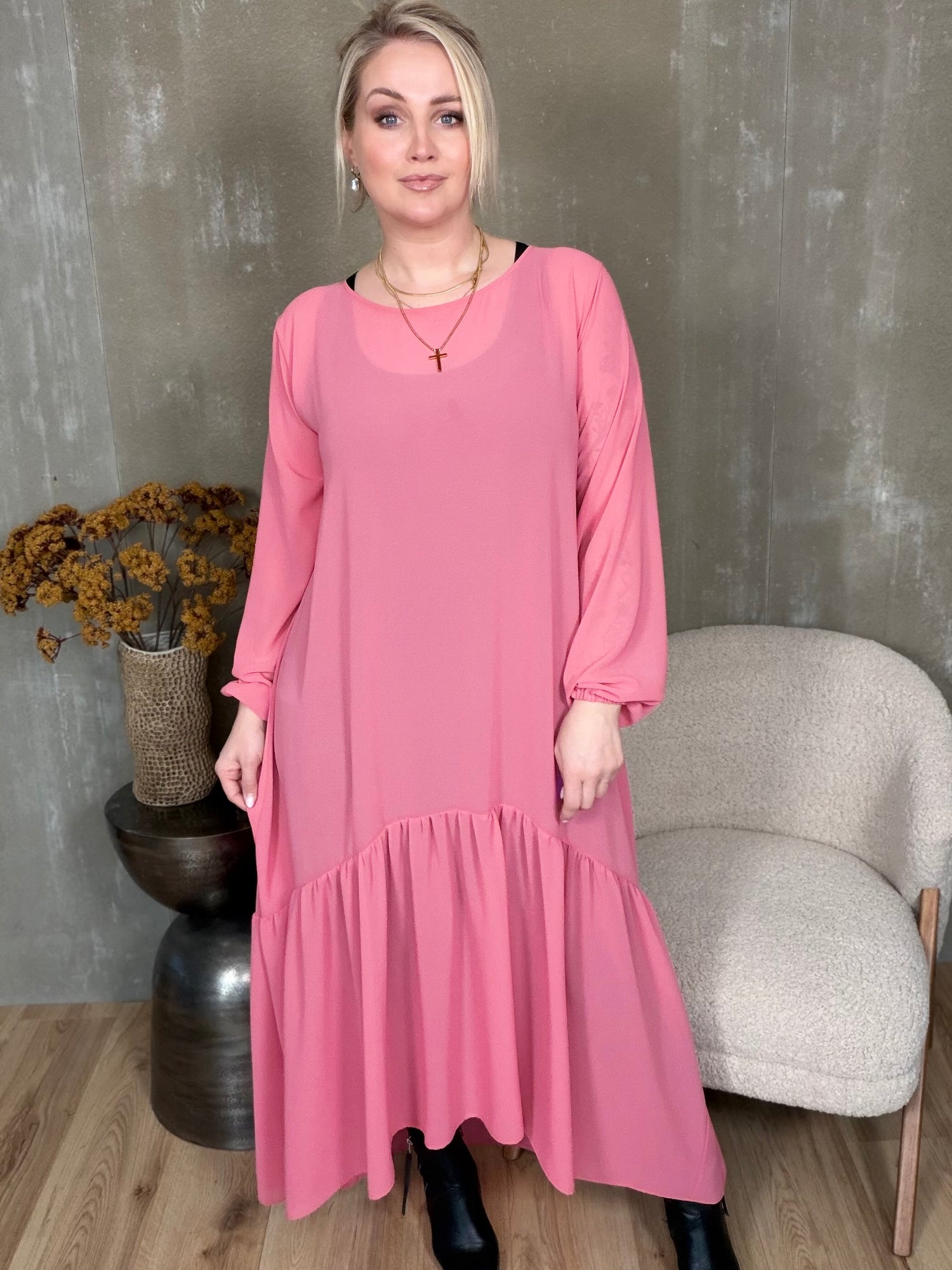 Önnu kjólarnir eru dásamlega flæðandi og svolítið “oversize” siffon kjólar með rykkingu að neðan. Þá er mjög auðvelt að klæða upp og niður en þeir eru smart bæði við þröngar gallabuxur eða sparilegir við leggings eða sokkabuxur og hæla.