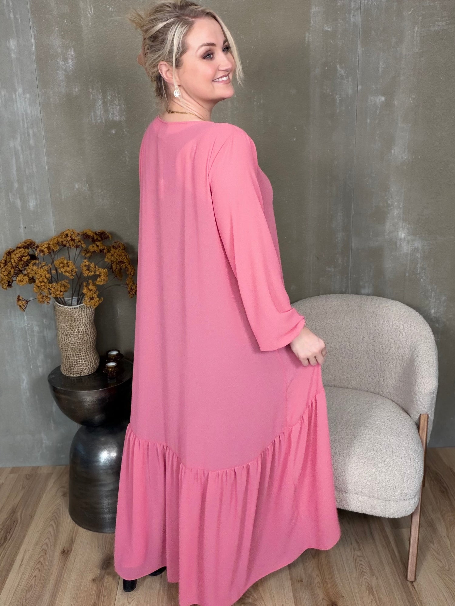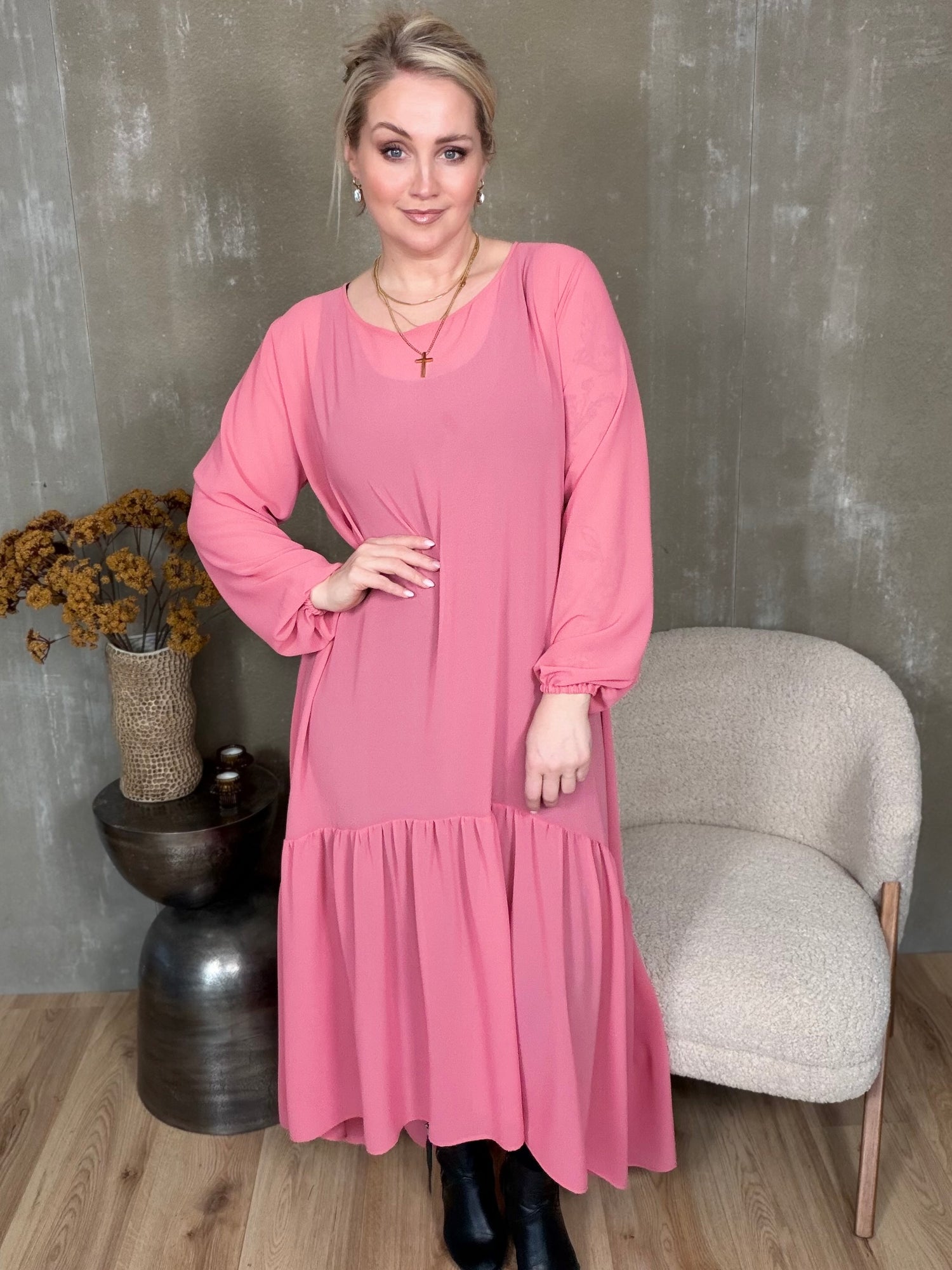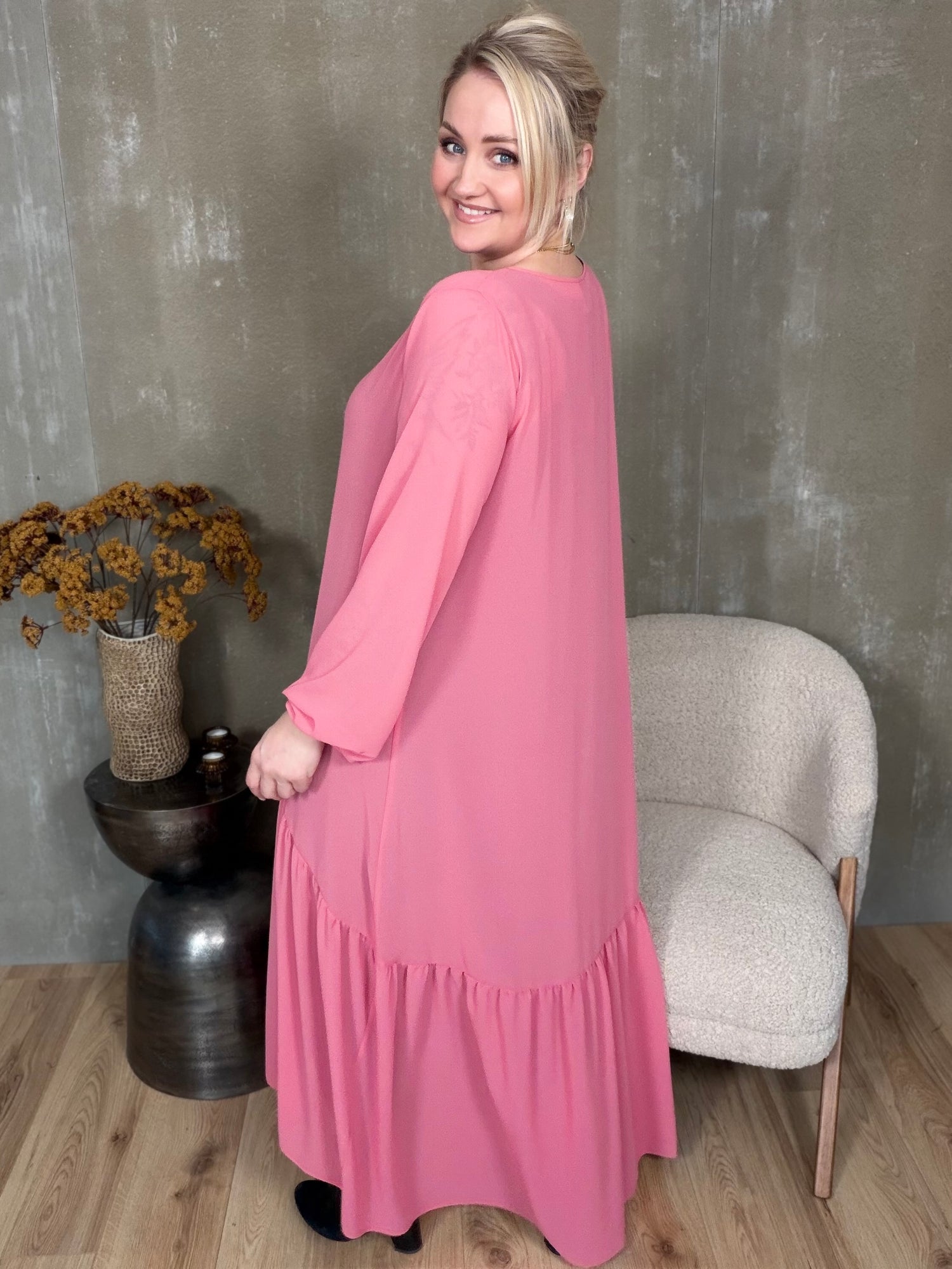 Önnu kjólarnir eru dásamlega flæðandi og svolítið “oversize” siffon kjólar með rykkingu að neðan. Þá er mjög auðvelt að klæða upp og niður en þeir eru smart bæði við þröngar gallabuxur eða sparilegir við leggings eða sokkabuxur og hæla.