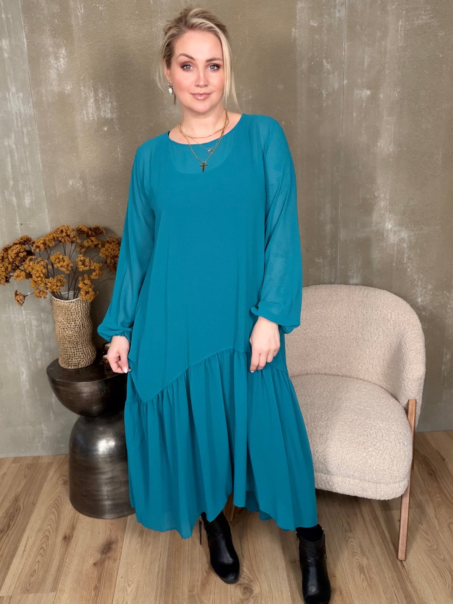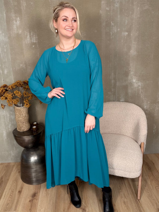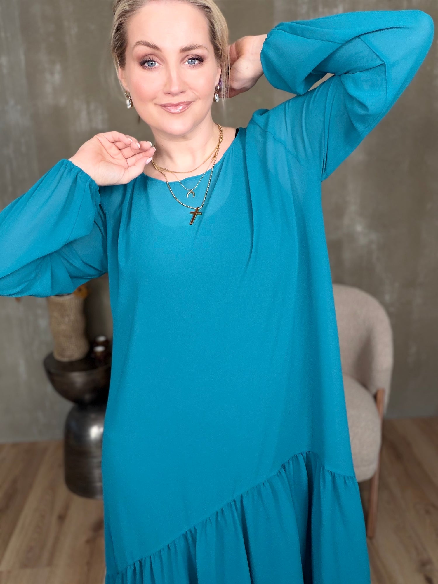 Anna siffon kjóll - Túrkis / XS er forpöntuð og verður send um leið og hún kemur aftur á lager.