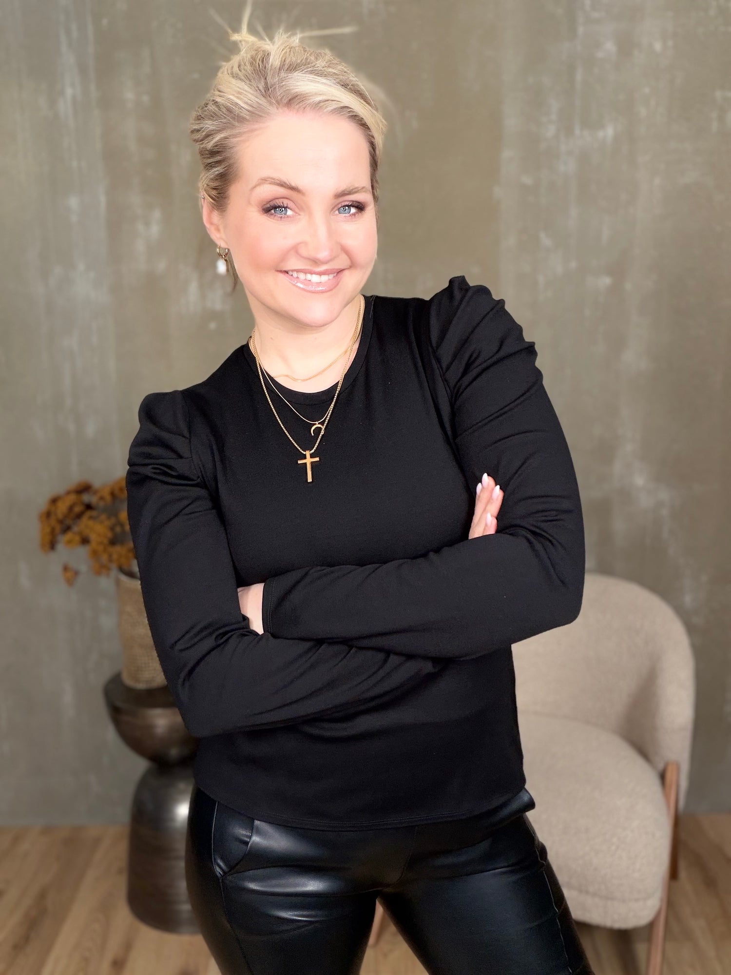 Arna er aðsniðinn síðerma toppur.