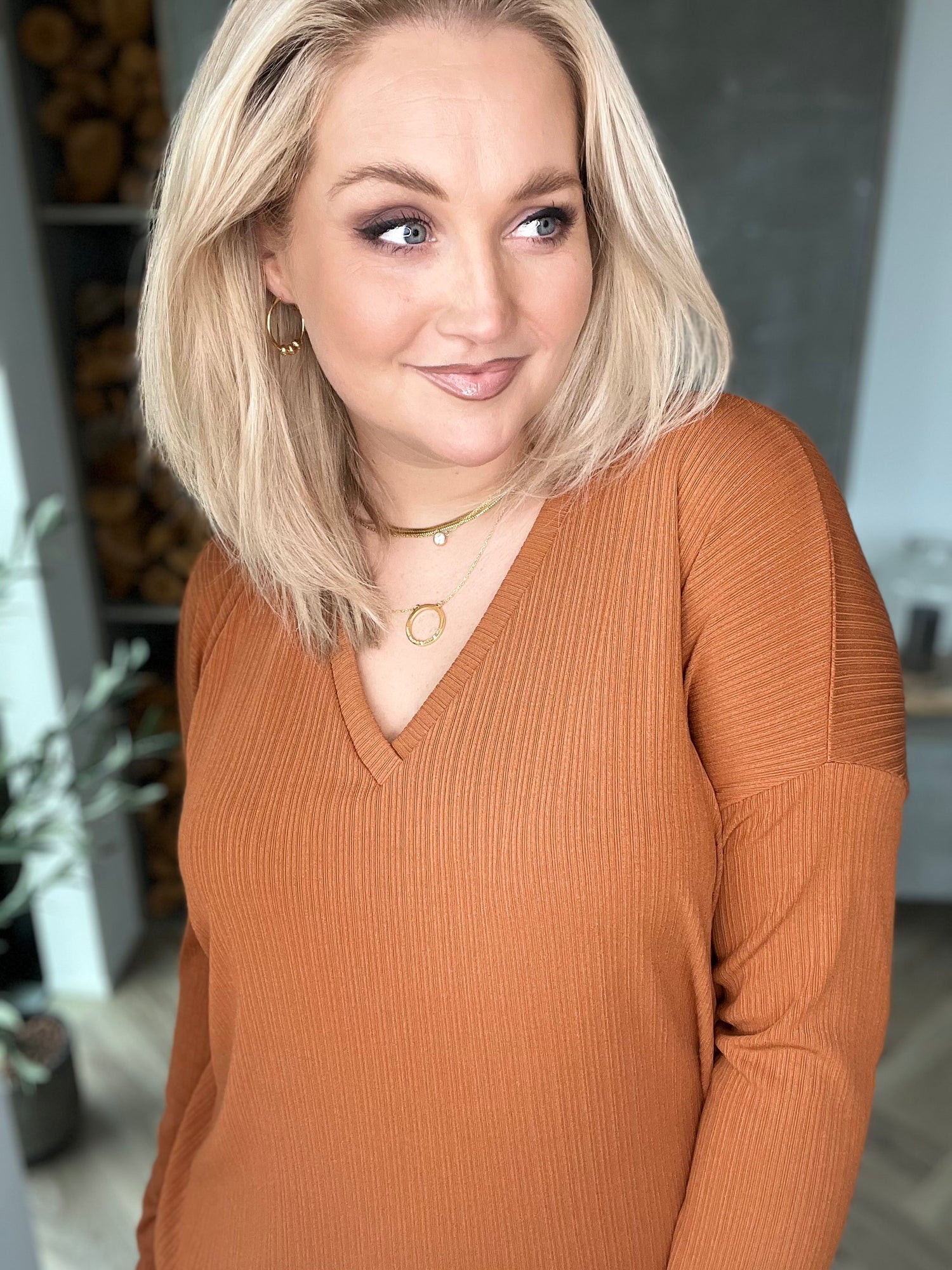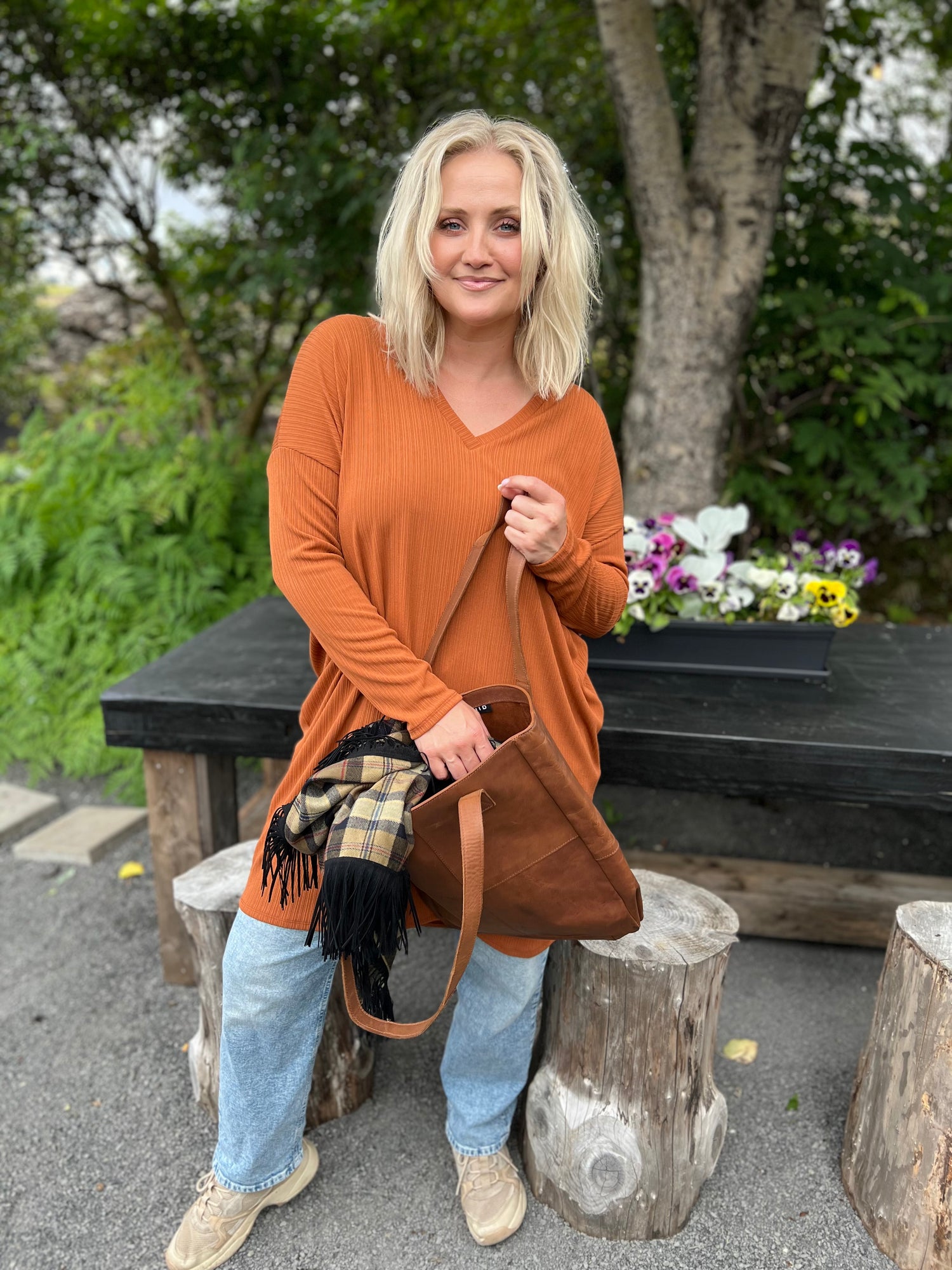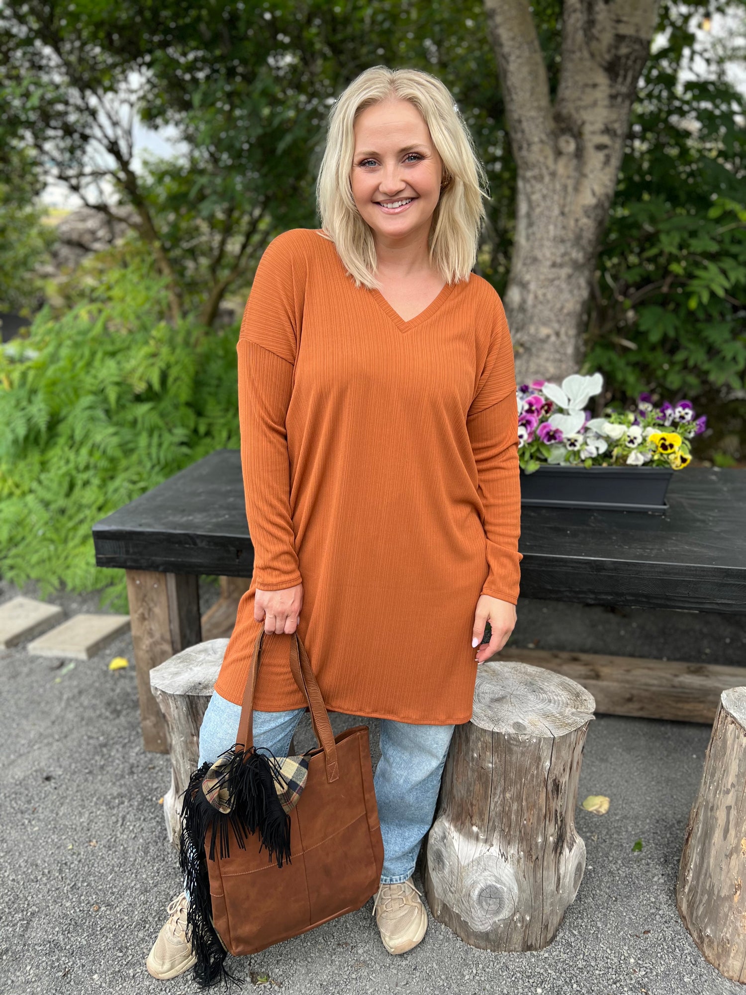 Hálsmálið er fallegt og V-ið nær ekki of neðarlega. Þennan er einstaklega auðvelt að klæða upp og niður, nota við leggings eða þröngar buxur, boots eða flata.