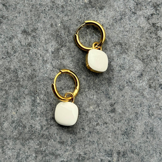 Lokkar úr ryðfríu stáli með enamel kassalaga platta ægilega krúttlegir með festingu 1 cm í  þvermál.