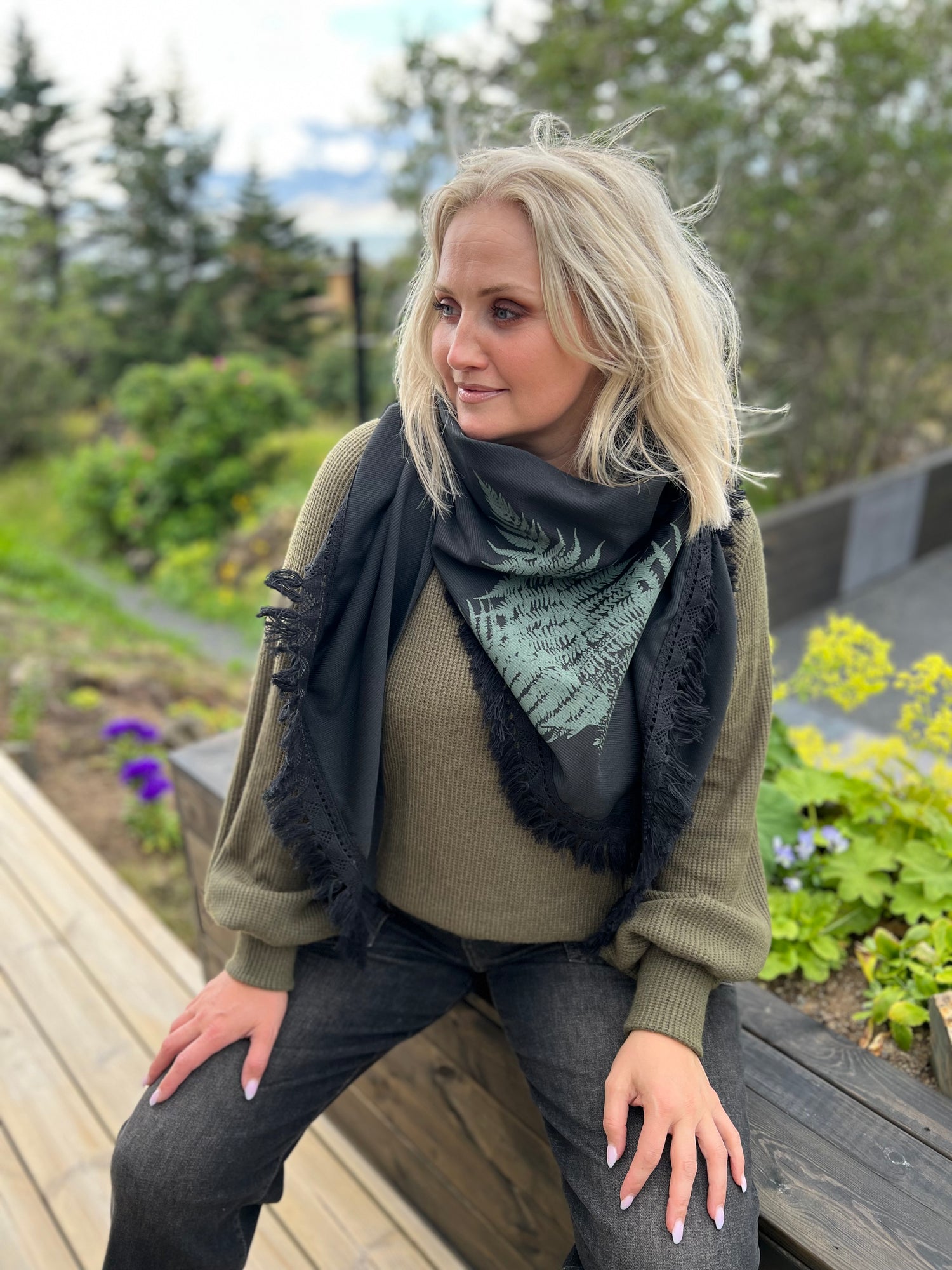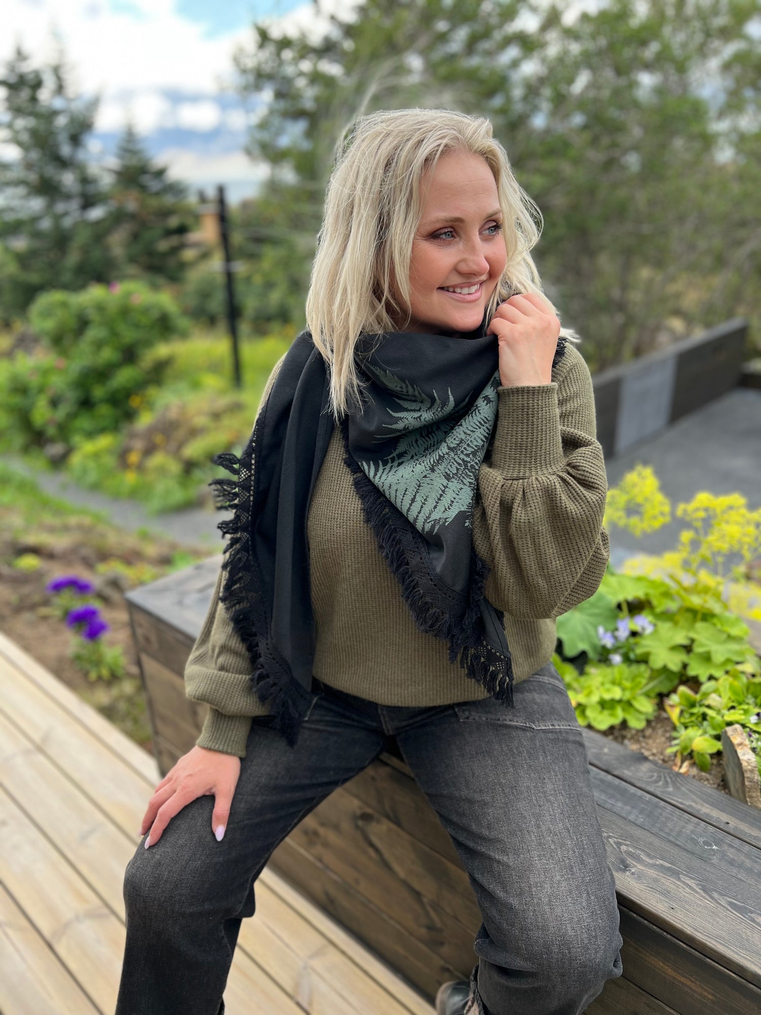 Klútur með burkna - Svartur m/grænu er forpöntuð og verður send um leið og hún kemur aftur á lager.