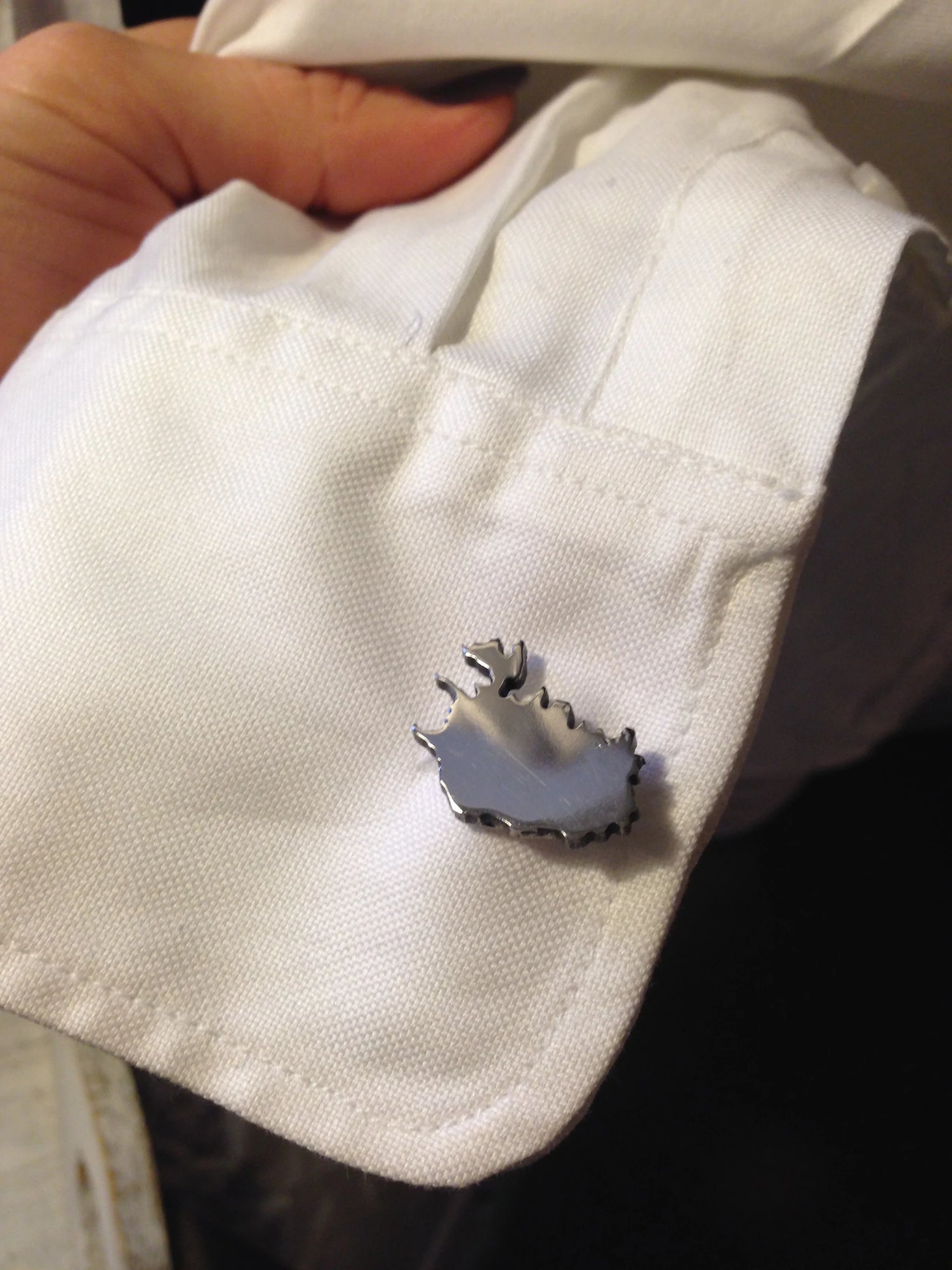 Hnapparnir eru úr ryðfríu stáli og eru um 2.5 cm í þvermál. Útlitið er okkar ylhýra Frón.