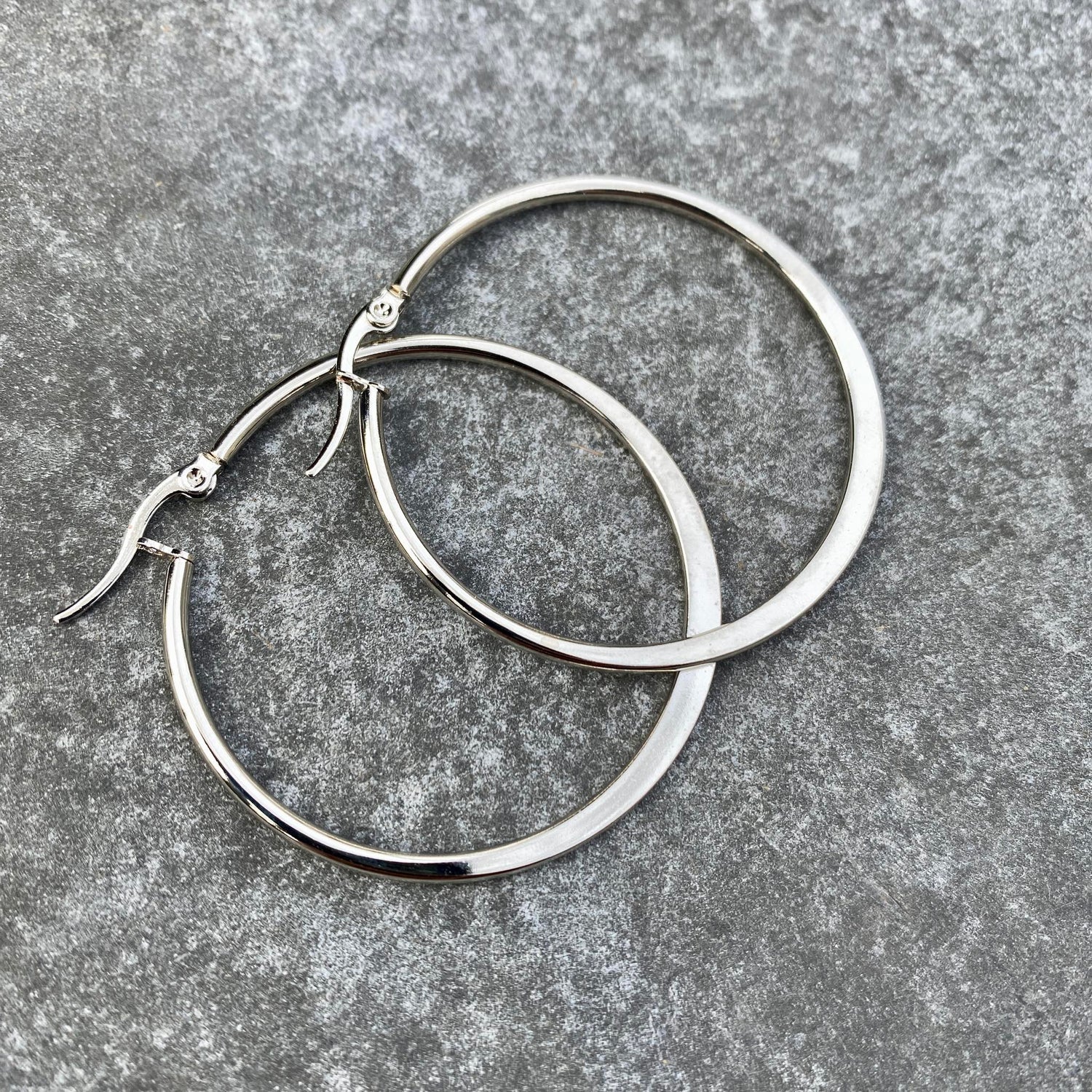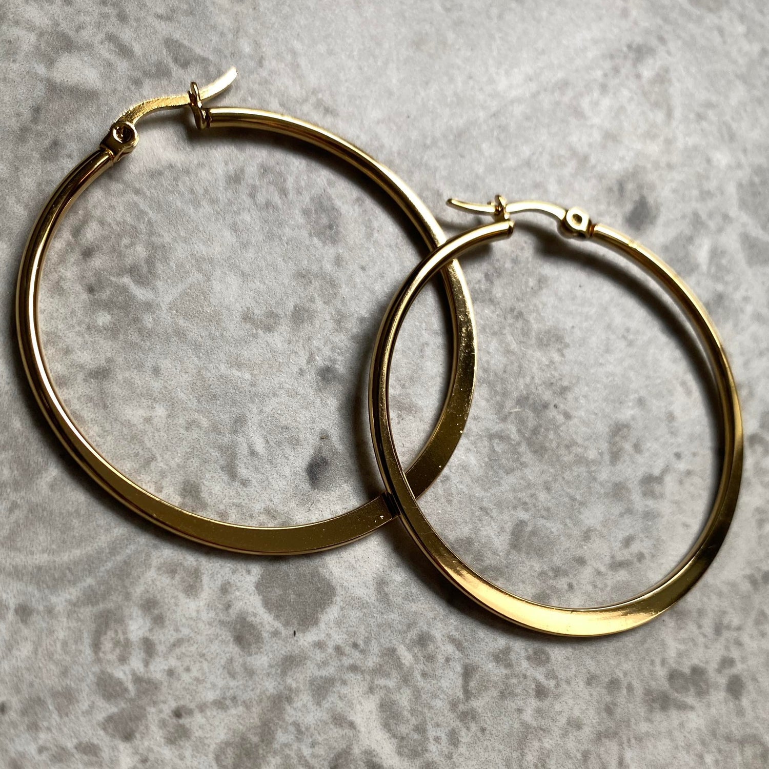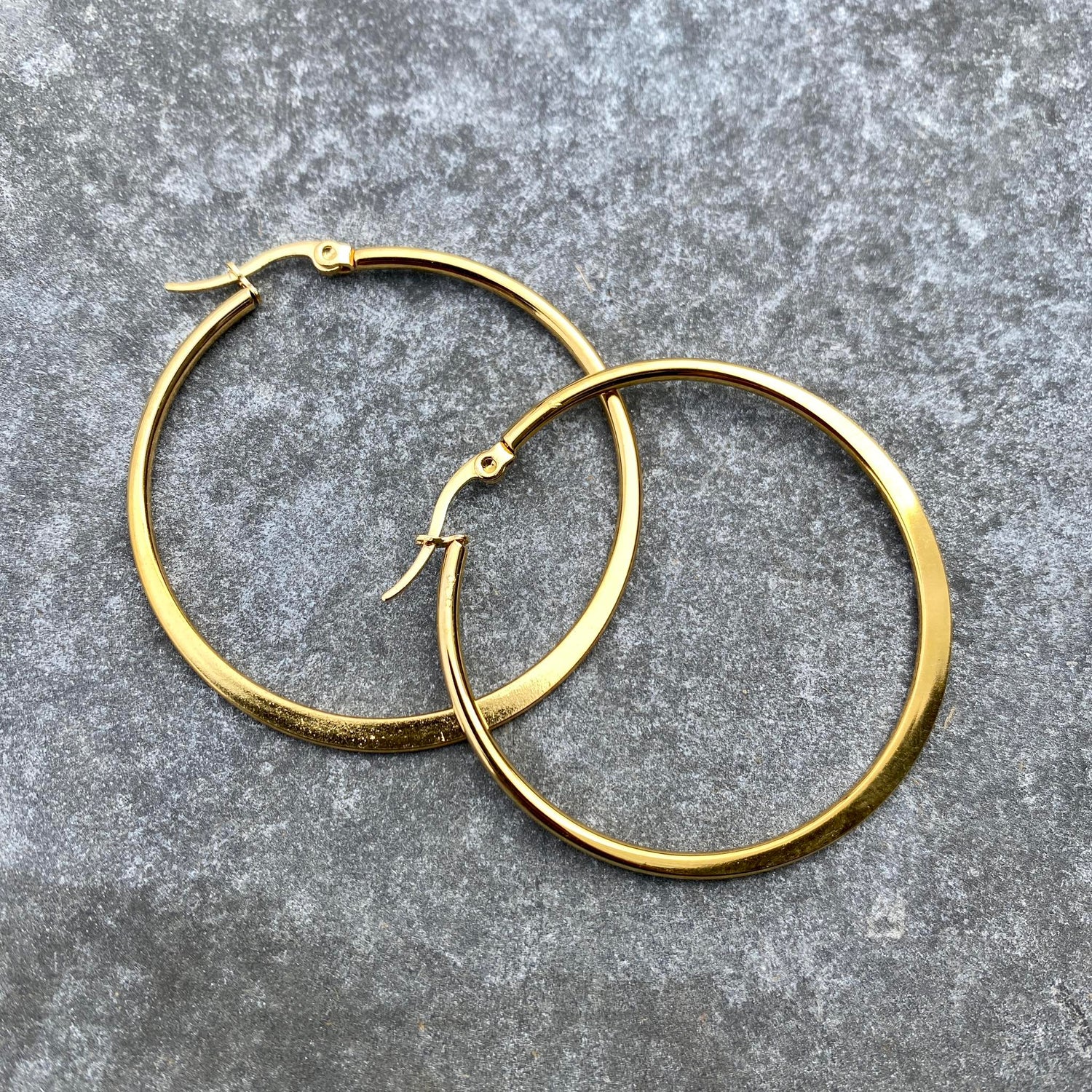 Hringlokkar úr ryðfríu stáli, fást bæði í silfur og gylltu, þvermál um 3-4 cm