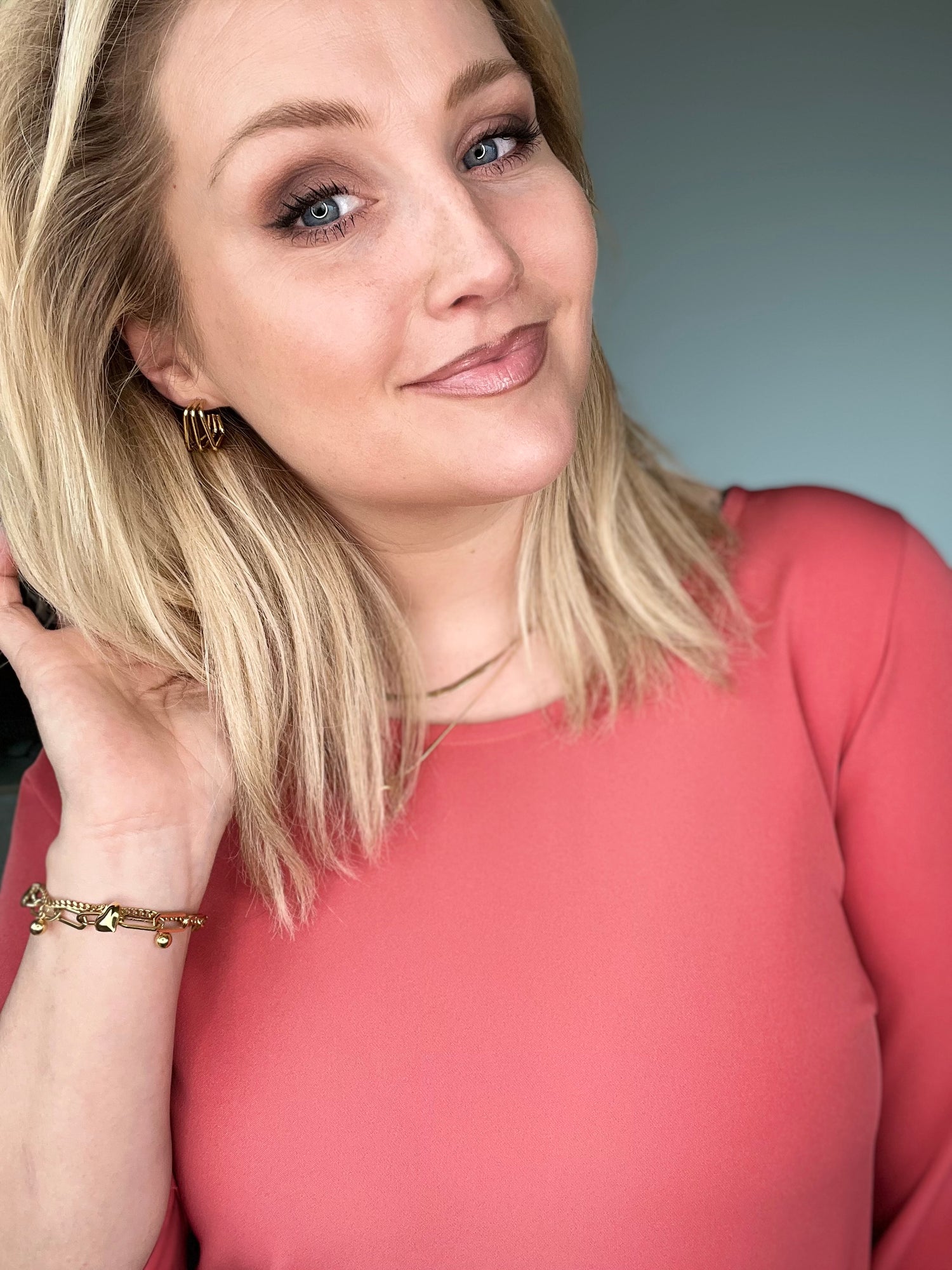 Lokkar úr ryðfríu stáli, gullhúð, 1.8 cm á kant. Töff lokkar