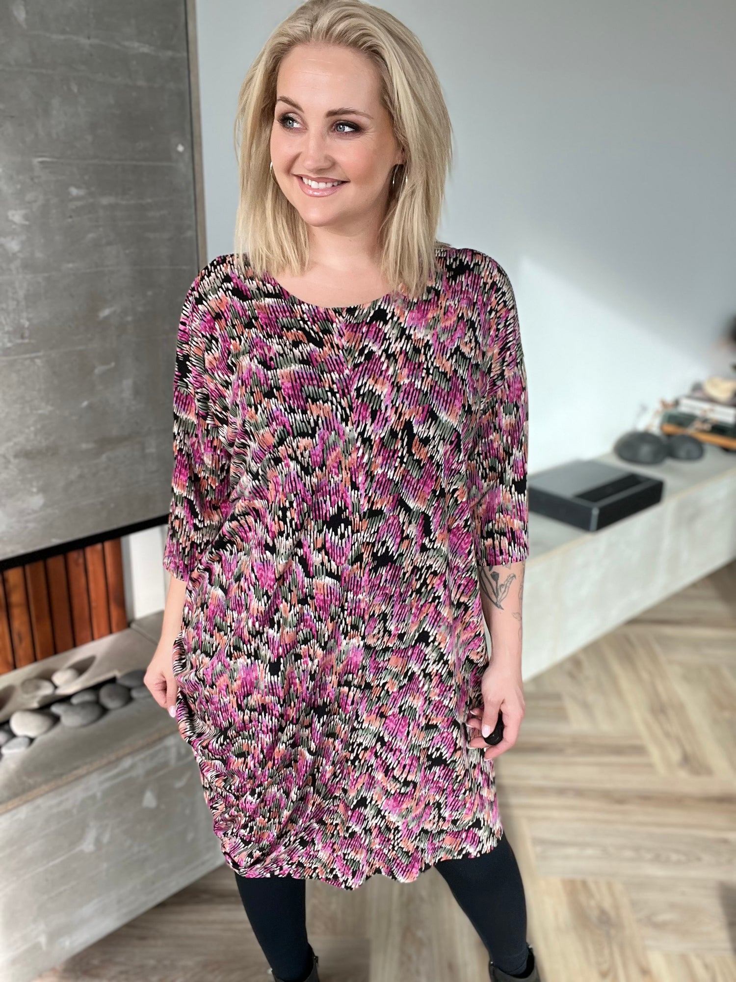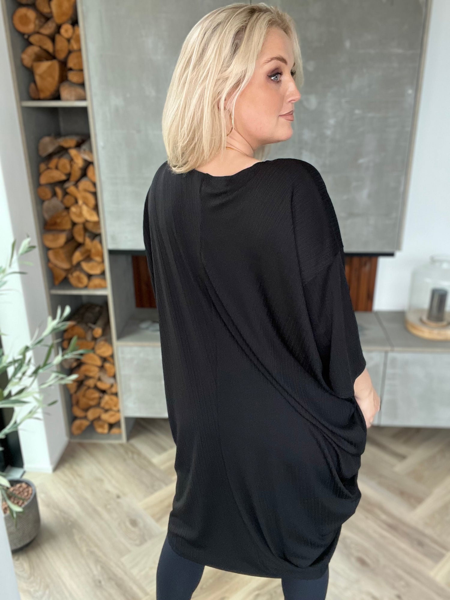 Hálsmálið er fallega rúnað og ekki of flegið. Þennan er einstaklega auðvelt að klæða upp og niður, nota við leggings eða þröngar buxur, boots eða flata.