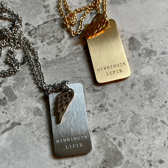 Á nistinu stendur Minningin lifir og er því ekki kynbundið né tengt tegundum því jú gæludýrin okkar spila stór hlutverk í lífi okkar og ekki síður hægt að bera minningarnisti sem heiðrar fallin fjórfættan vin.