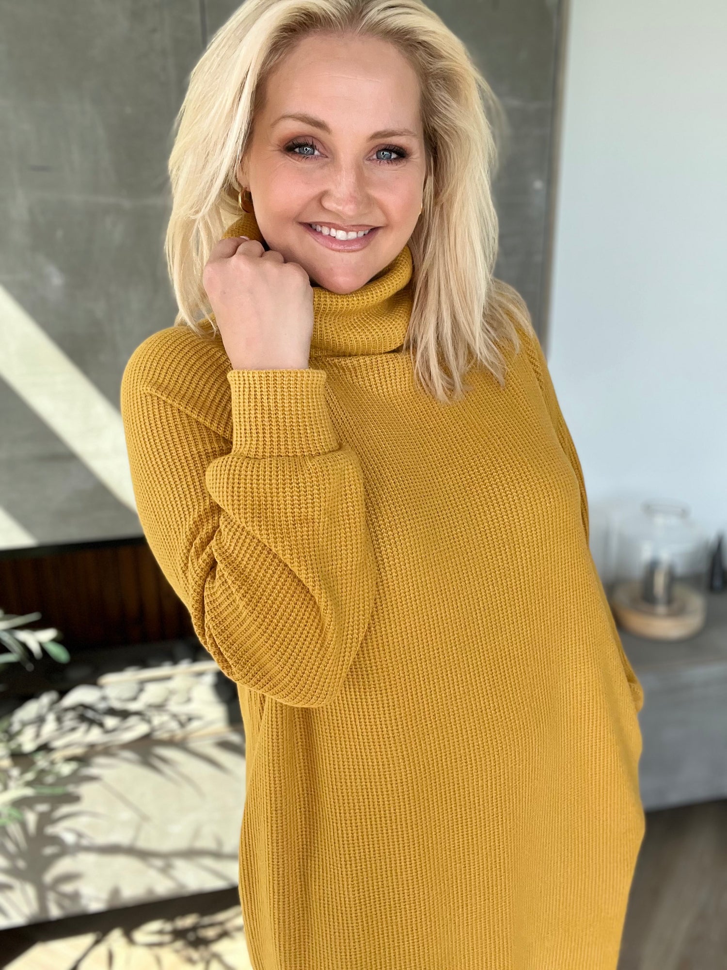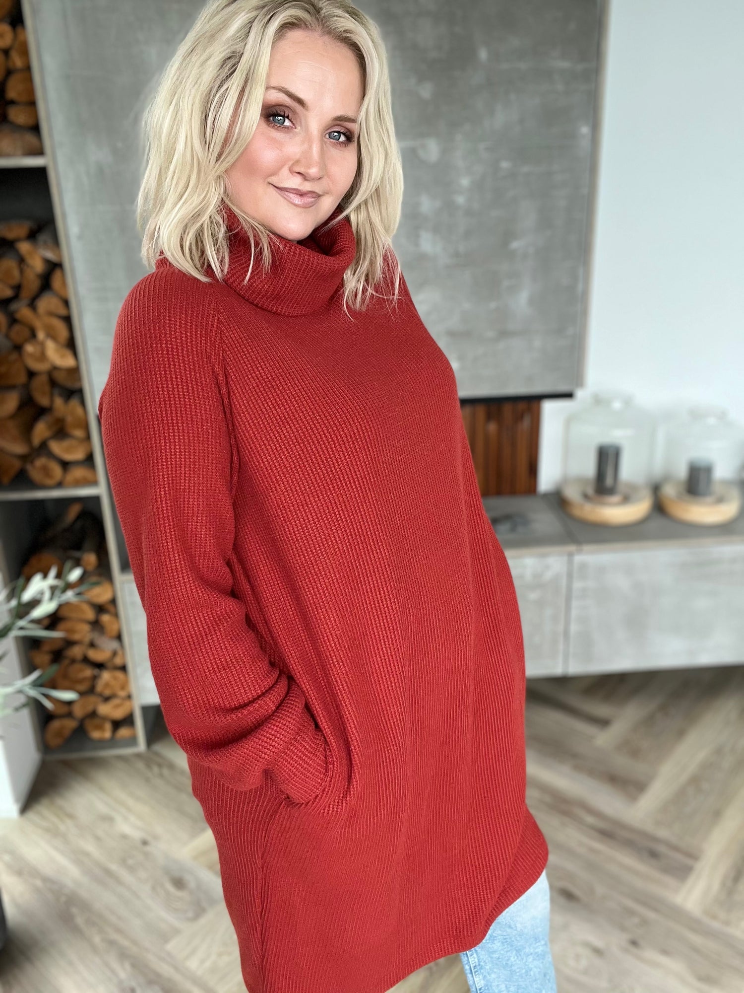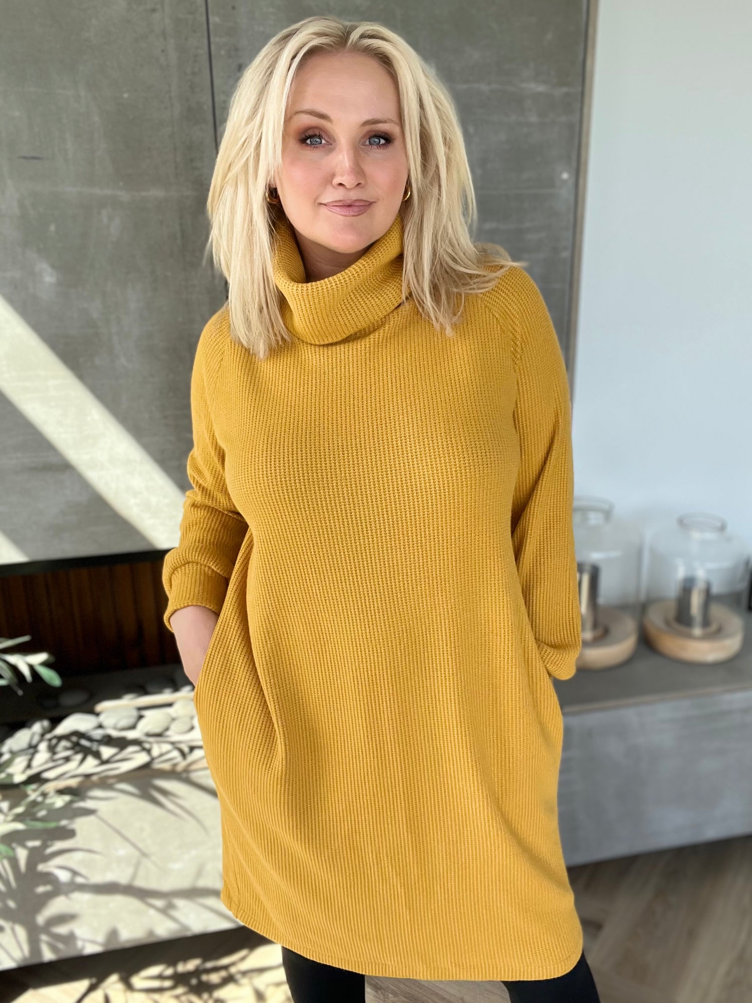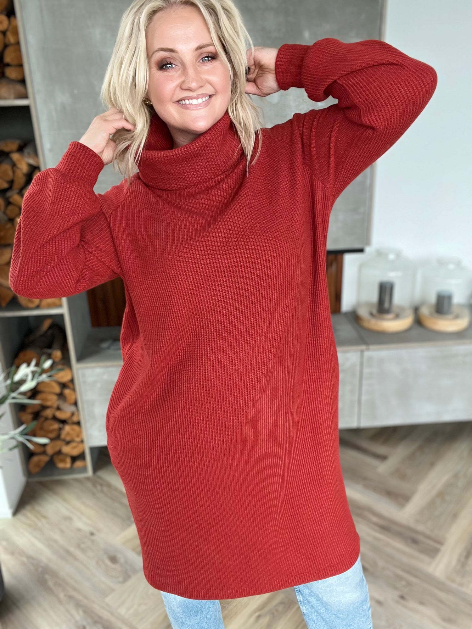 Sætur peysukjóll sem hentar til hversdagsnota við leggings eða töffaralegar galla eða leðurbuxur eða í labbitúrinn, hlýr og notalegur.