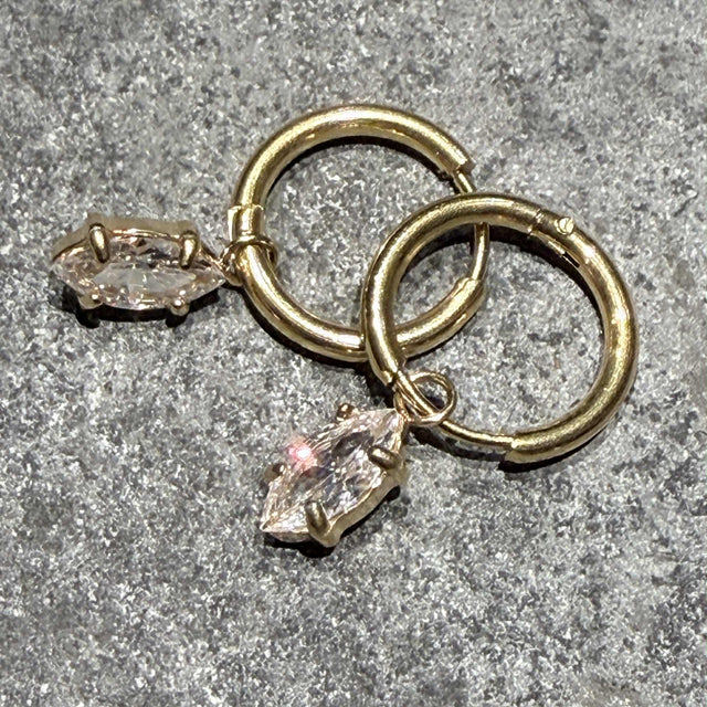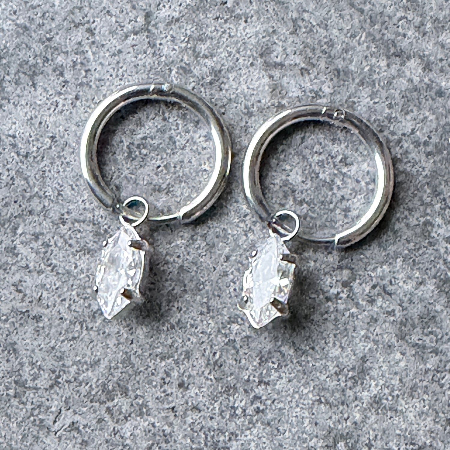 Lokkar úr ryðfríu stáli, um 1,2 cm í þvermál, fallegur dropalaga steinn hangir í hring. Mjög penir og léttir, gætu hentað fyrir yngri dömurnar líka.