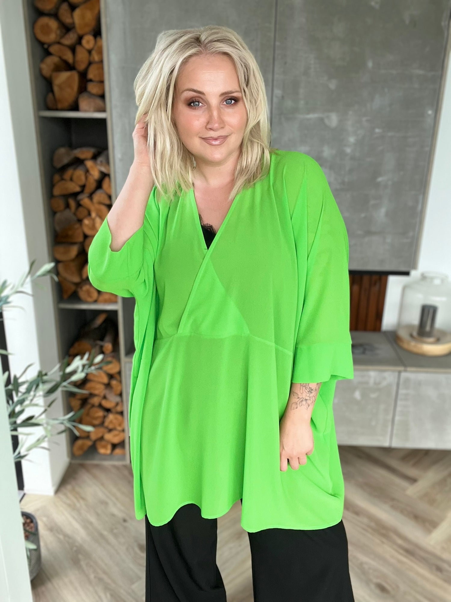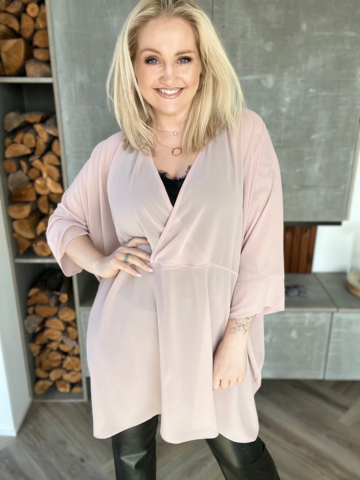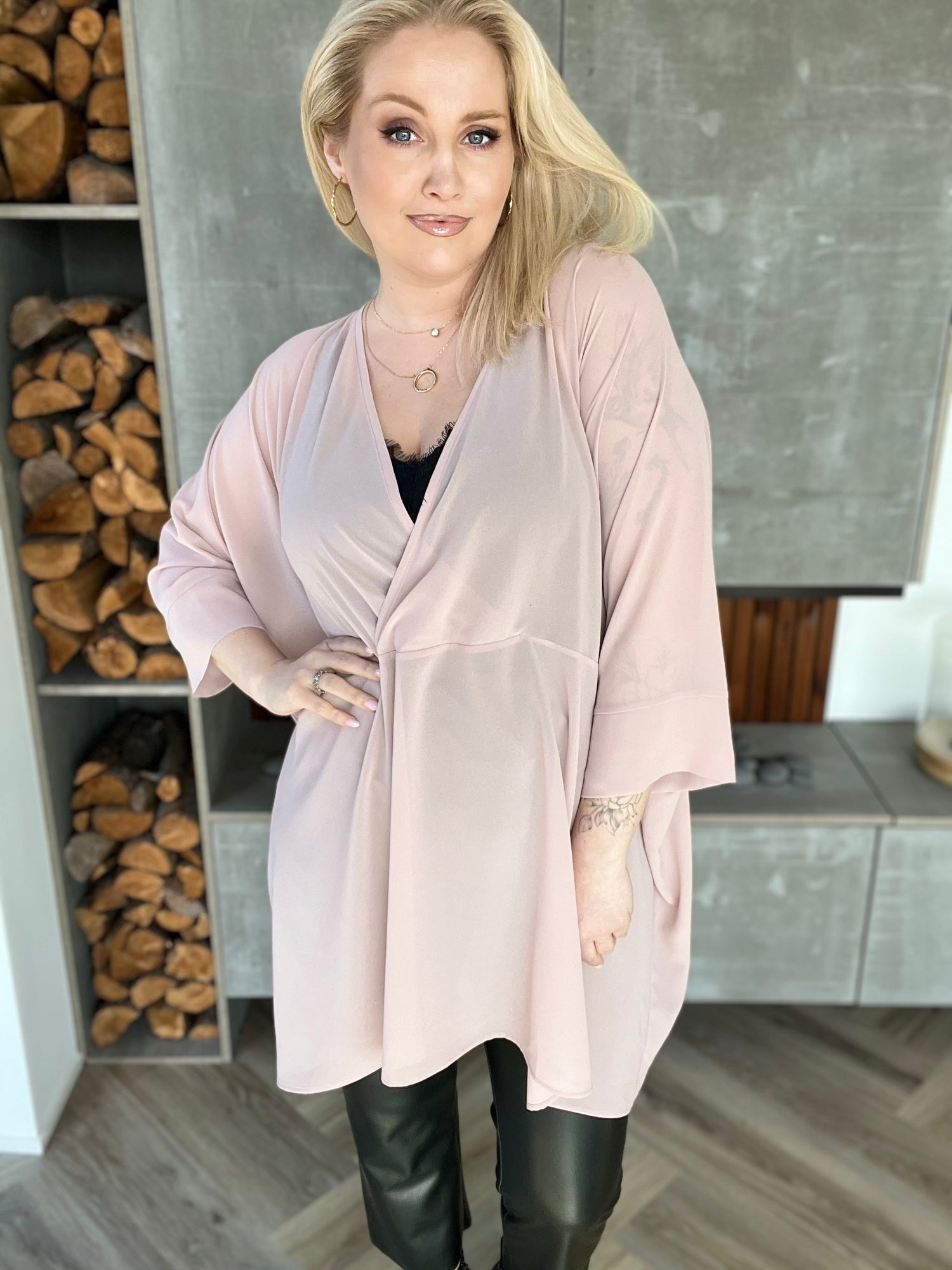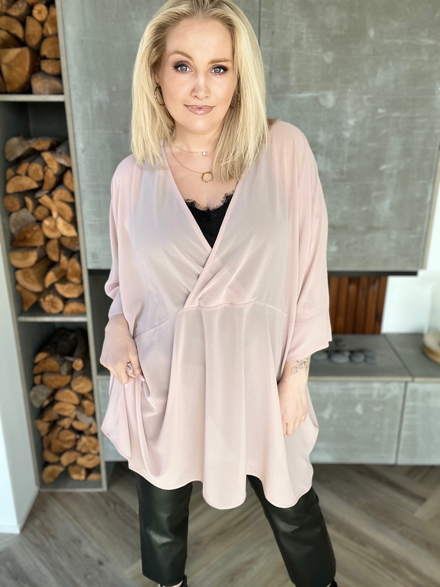 Svölu skyrturnar eru skemmtilega einfaldar og einstaklega klassískar kassaskyrtur með fallegu V hálsmáli sem víxlast að framan. Þær eru með breiðum kanti á ermunum og síddin er falleg bæði við síðan hlýrabol og leggings eða buxur.