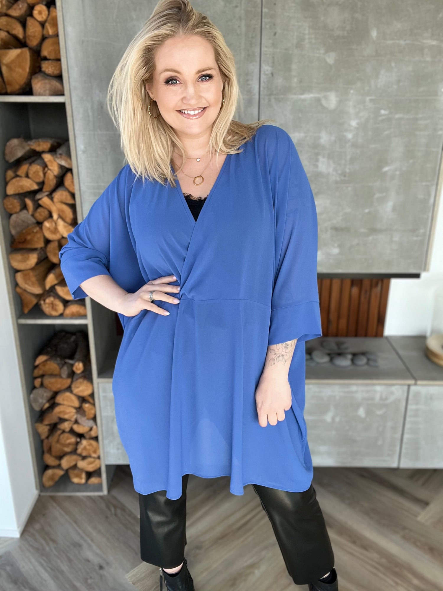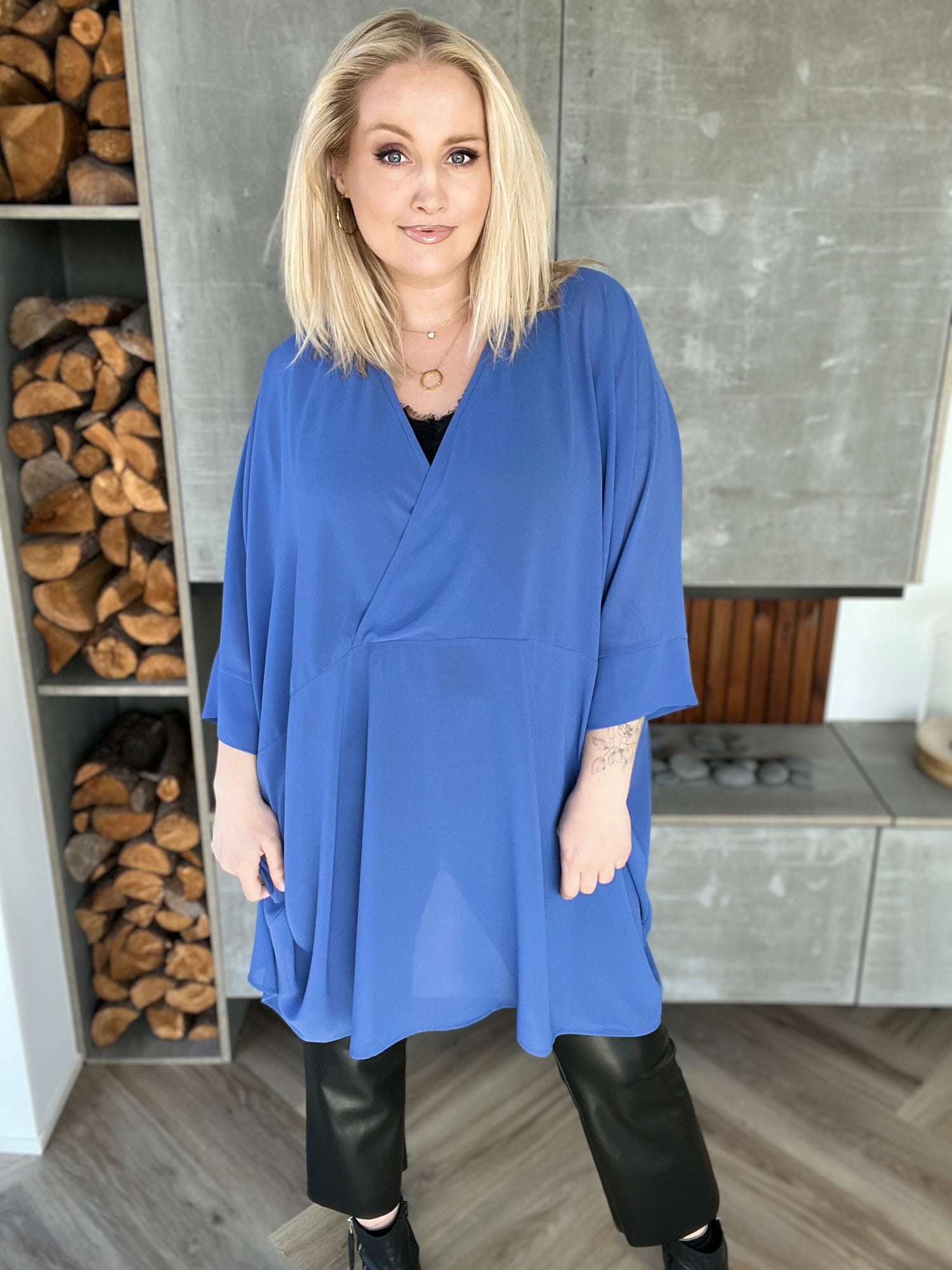 Svala skyrta siffon - Blár / Ein stærð er forpöntuð og verður send um leið og hún kemur aftur á lager.