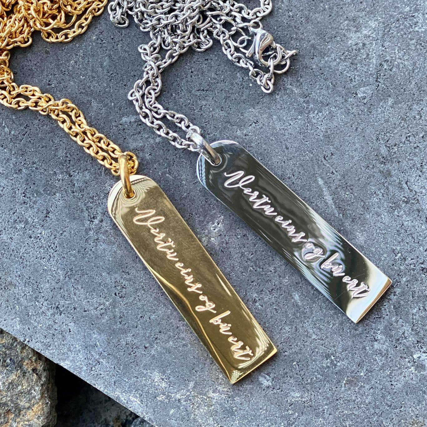 Þessi hálsmen eru ný af nálinni en þau bera áletrunina Vertu eins og þú ert á annarri hliðinni og Lífið er núna á hinni. Ég hef mikla trú á þessari visku og nota hana óspart í lífinu. Ég er með tattúveraða setningu á úlnið sem stendur Vertu þú sjálf, mér fannst sú setning aðeins og bindandi fyrir öll kyn og valdi því að nota setninguna "Vertu eins og þú ert " Lífið er núna á svo alltaf við ekki satt.