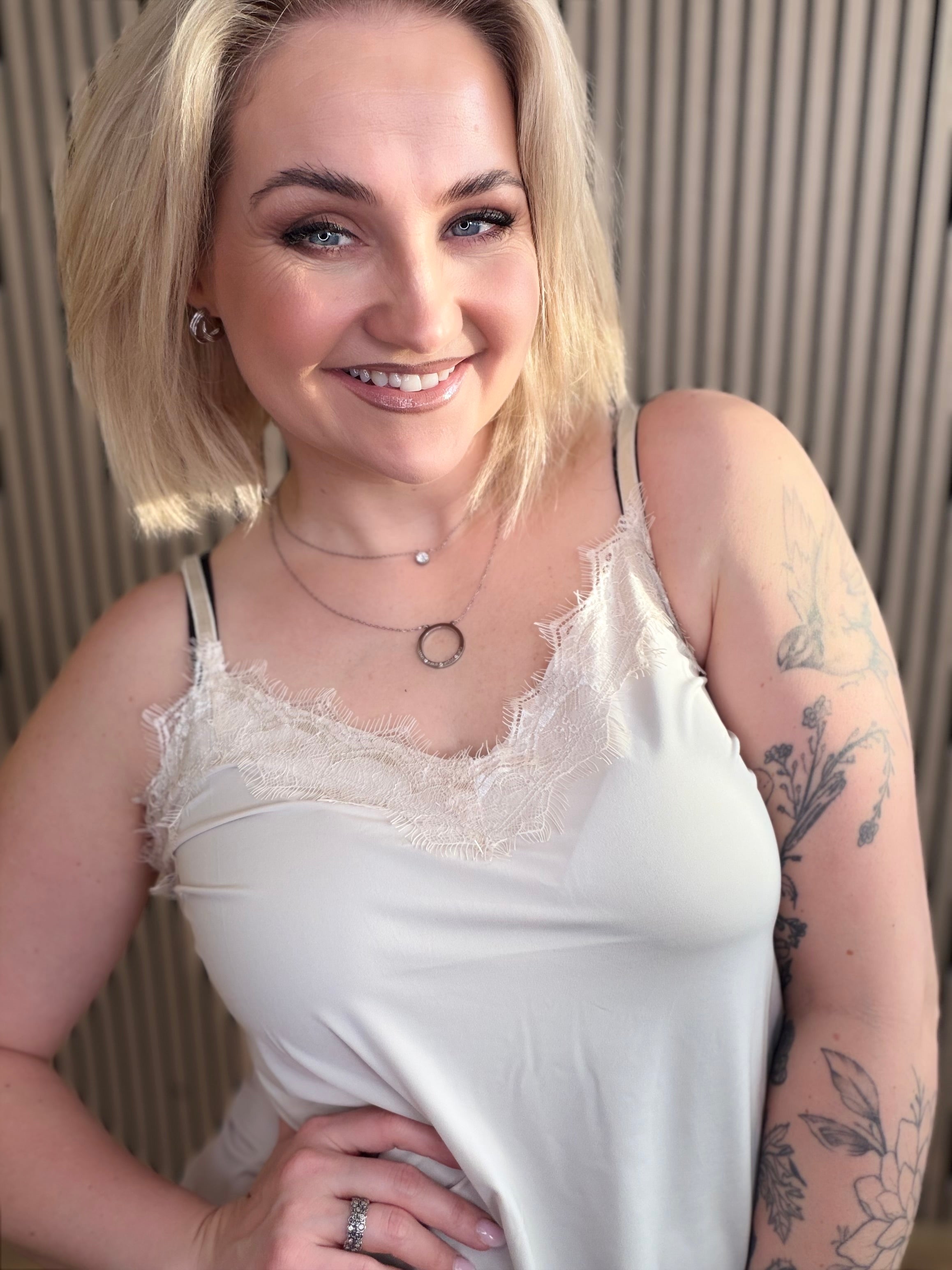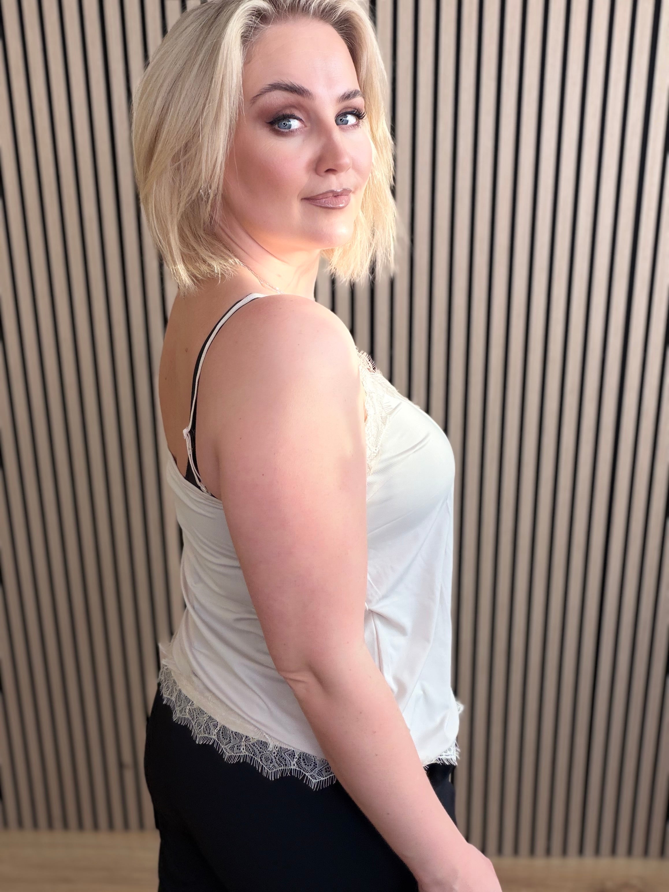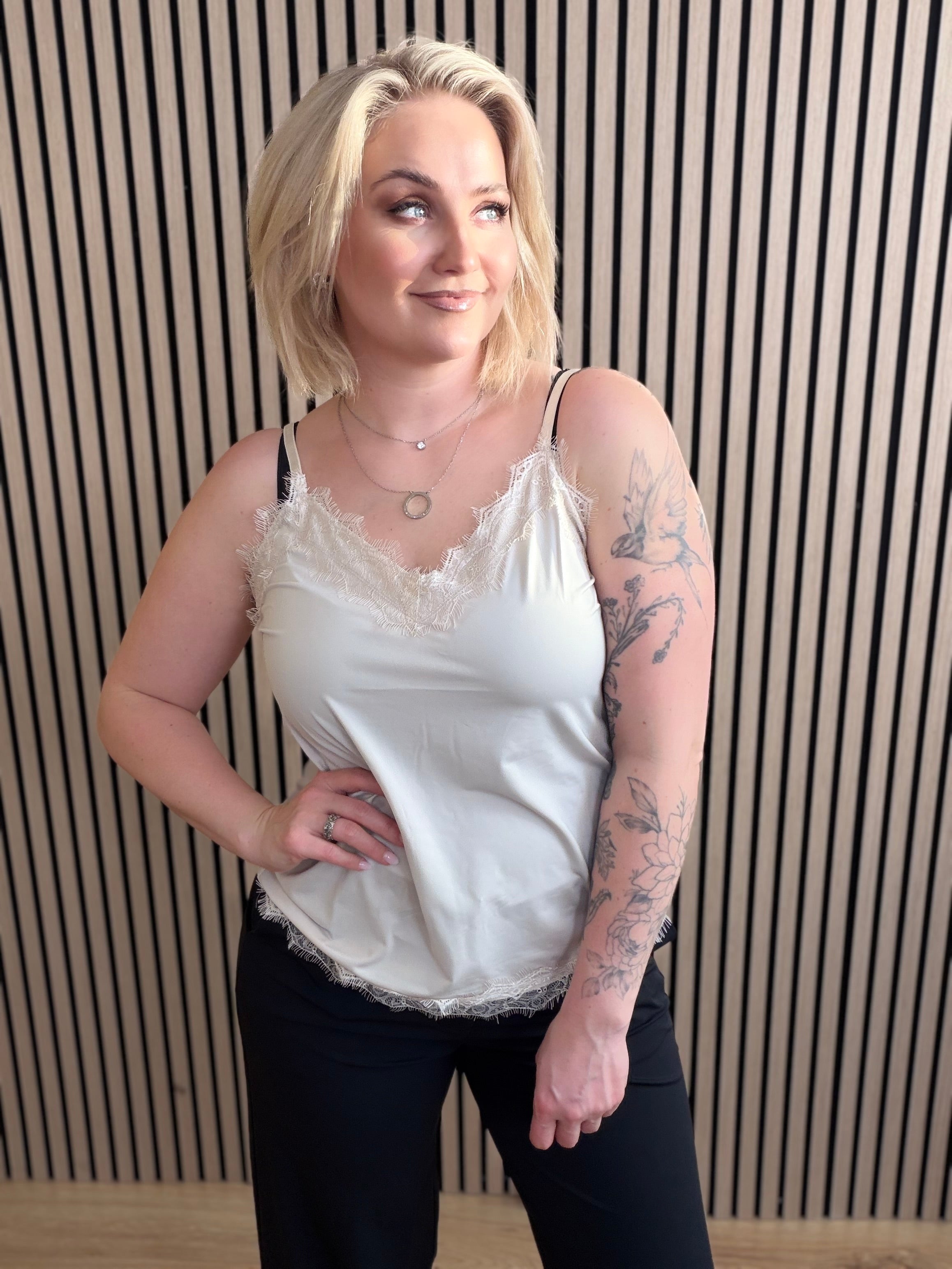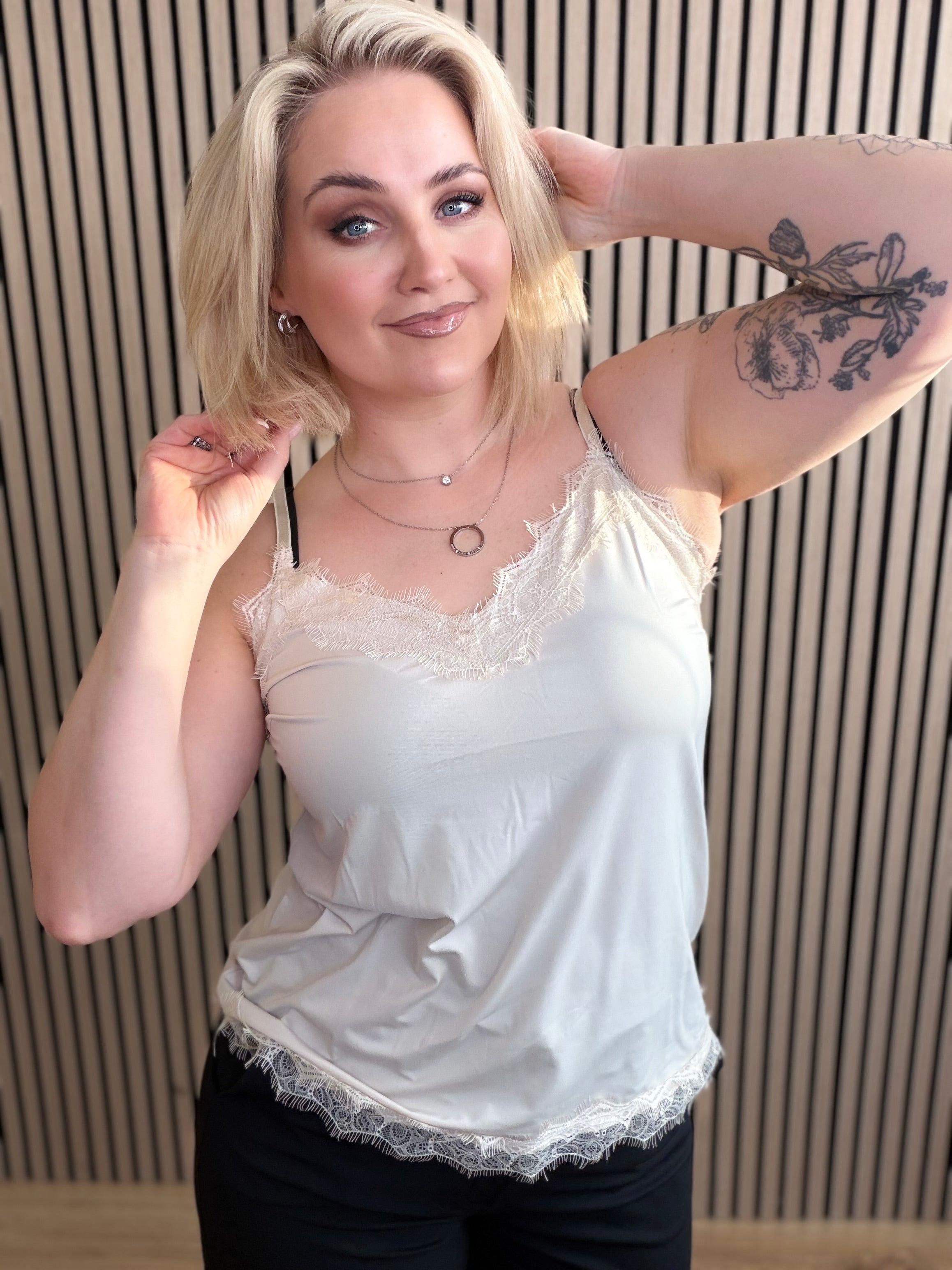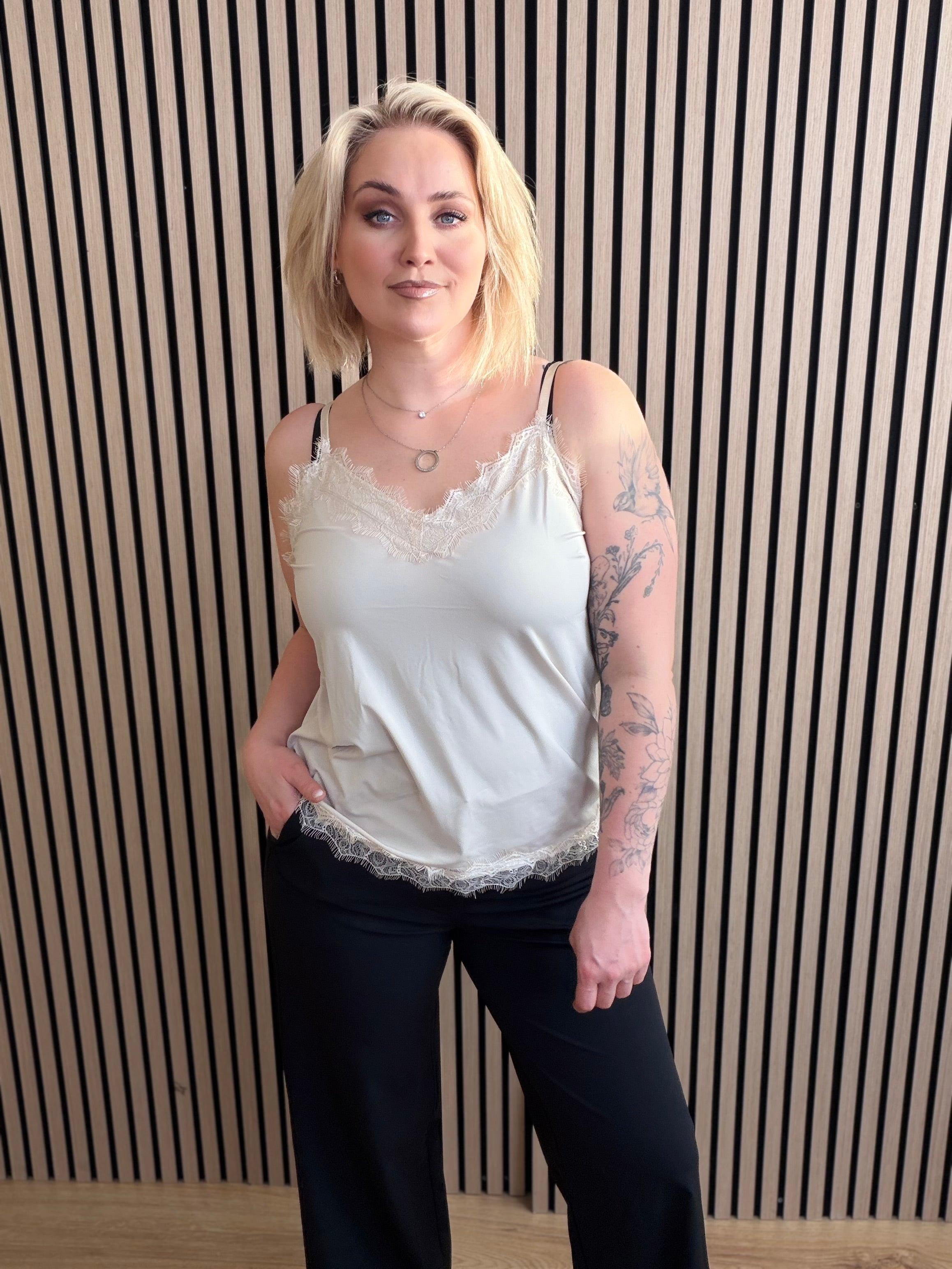 Fallegur hlýrabolur með blúndu frá Freequent.