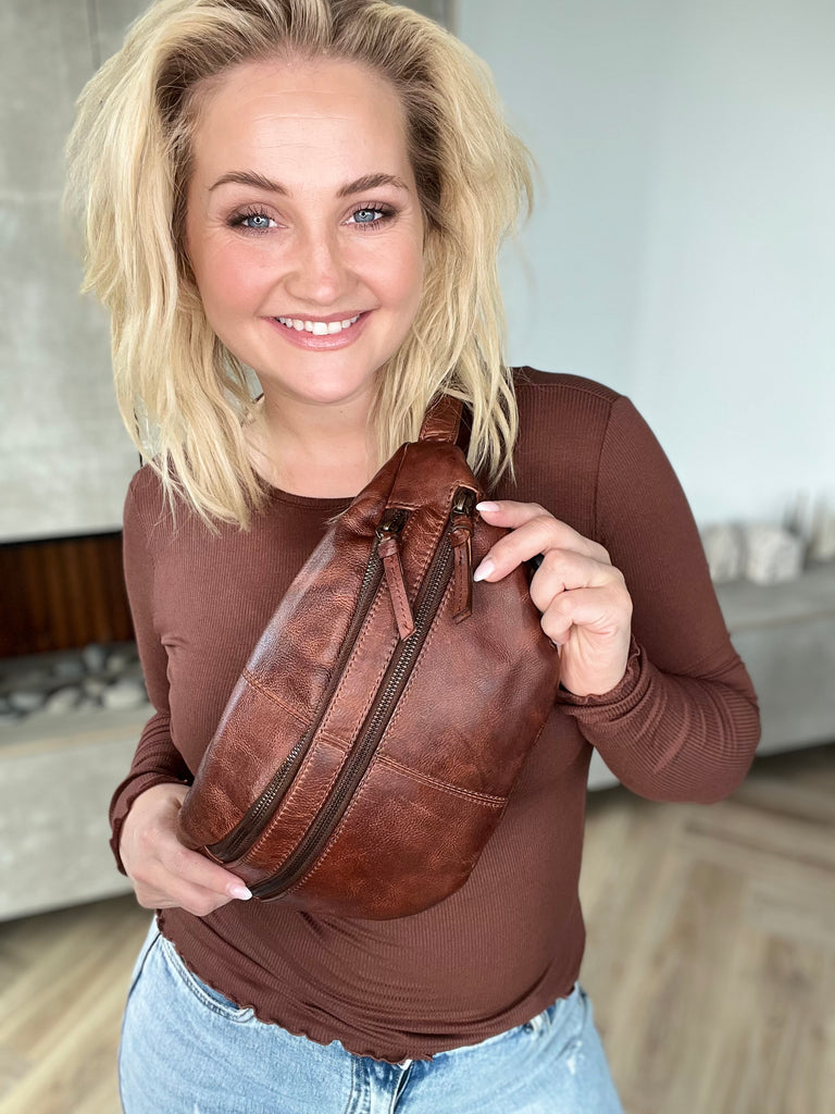 Bumbag Dark Cognac m 2 rennilásum Gróf