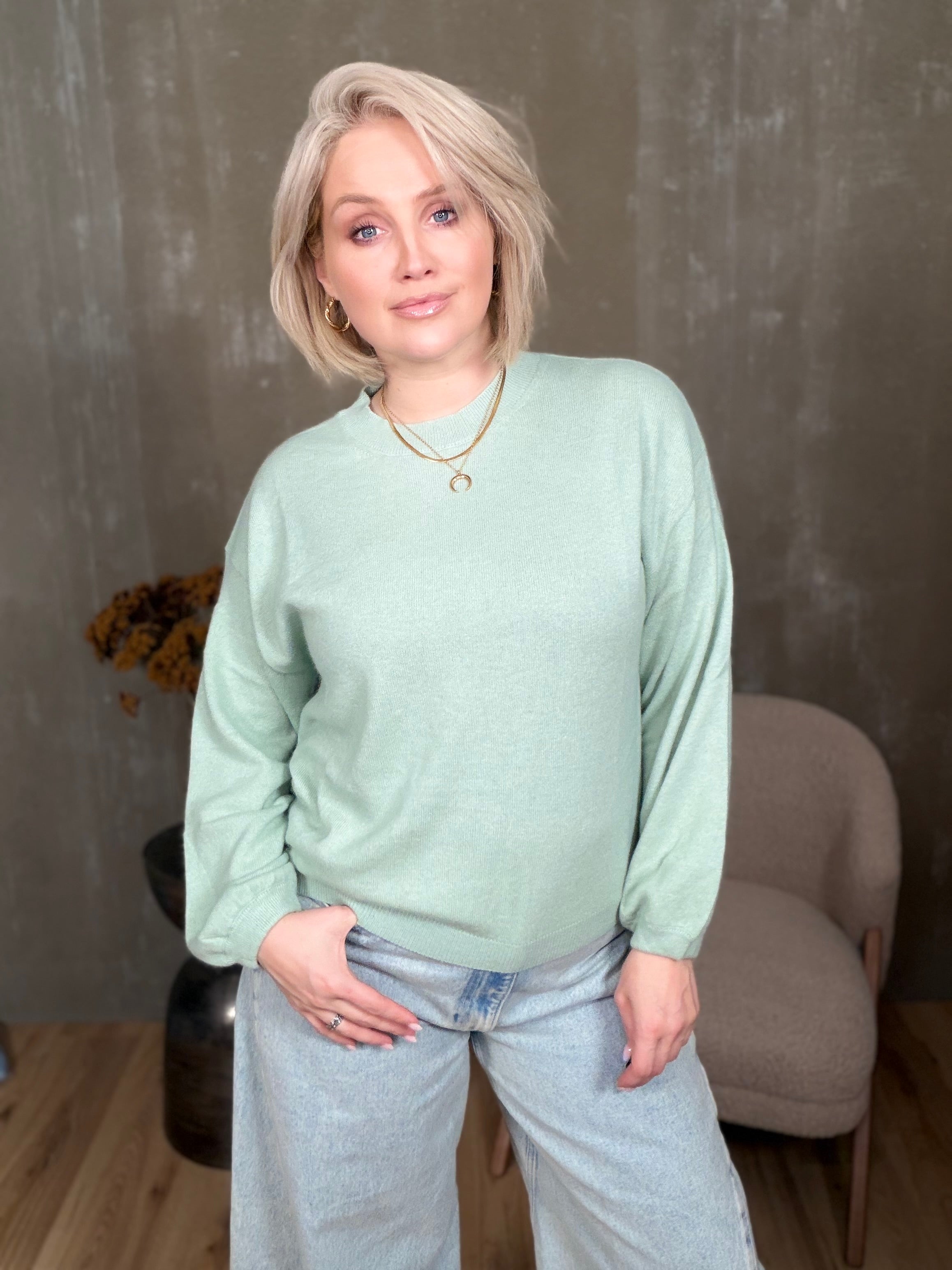 Colorado peysan kemur í 4 stærðum. Hún er með rúnuðu hálsmáli og stroffi að neðan. Ermarnar eru með balloon sniði, þeas það er góð vídd við framhandleggi og tekin saman með teygju stroffi.