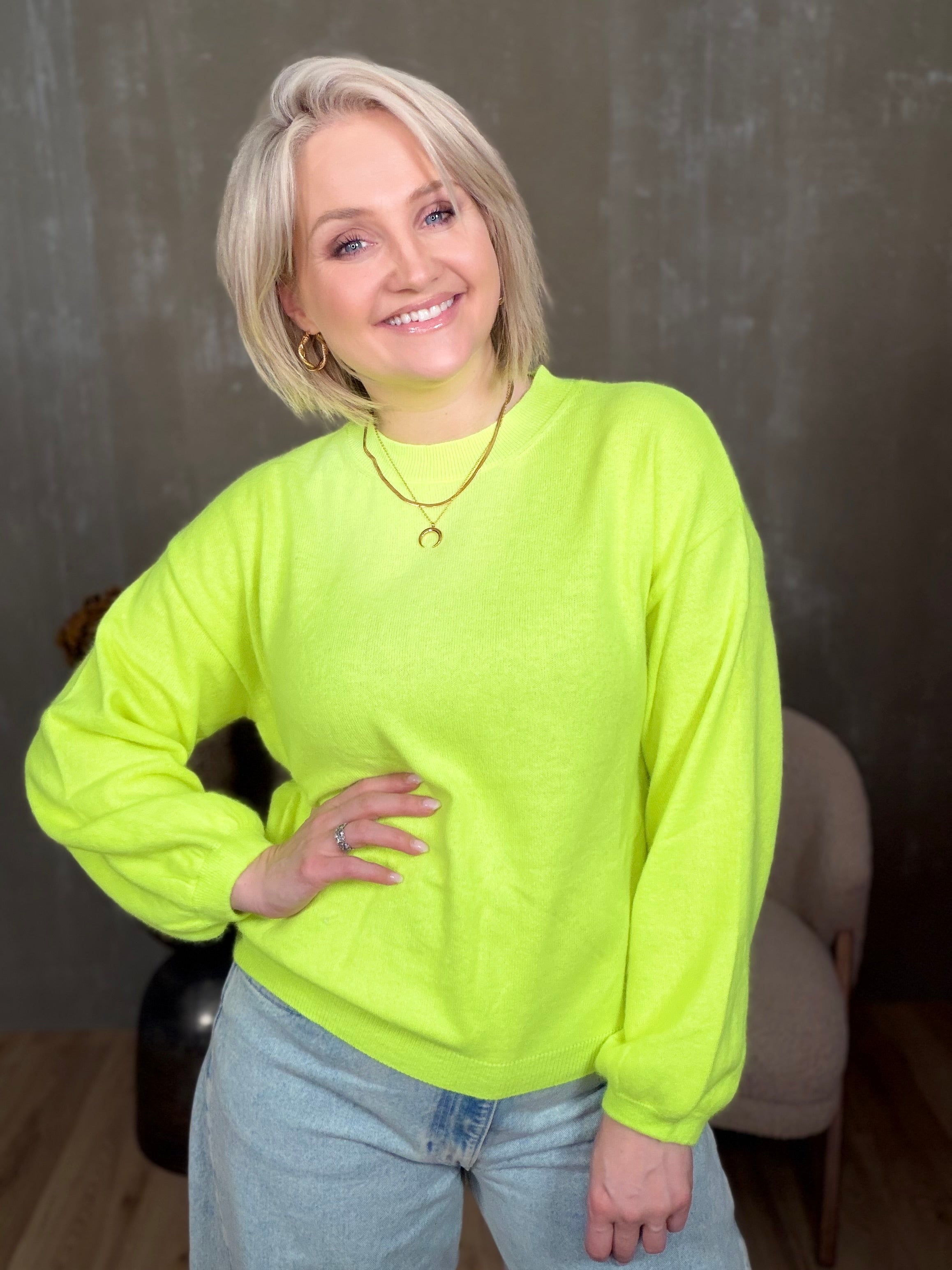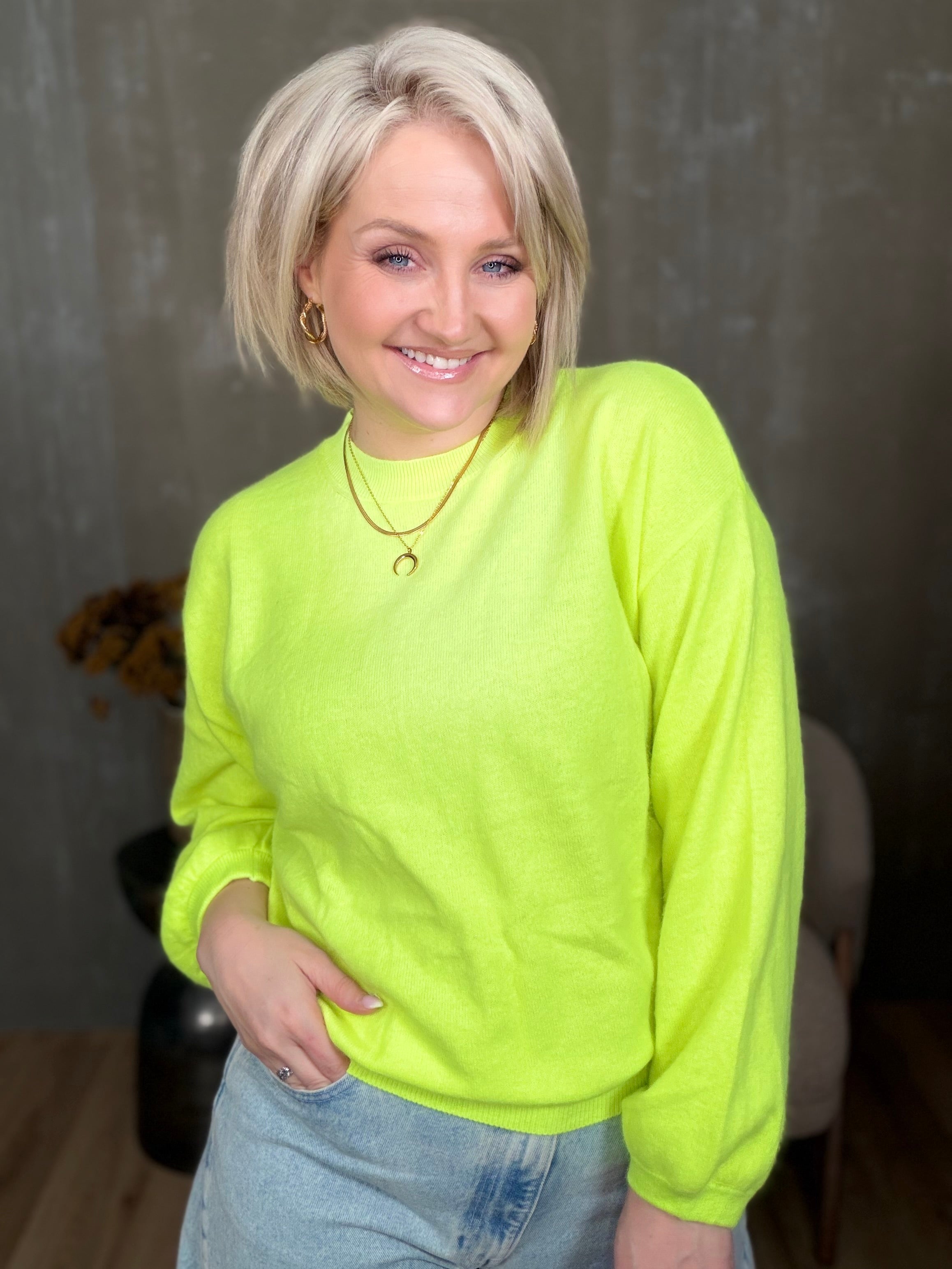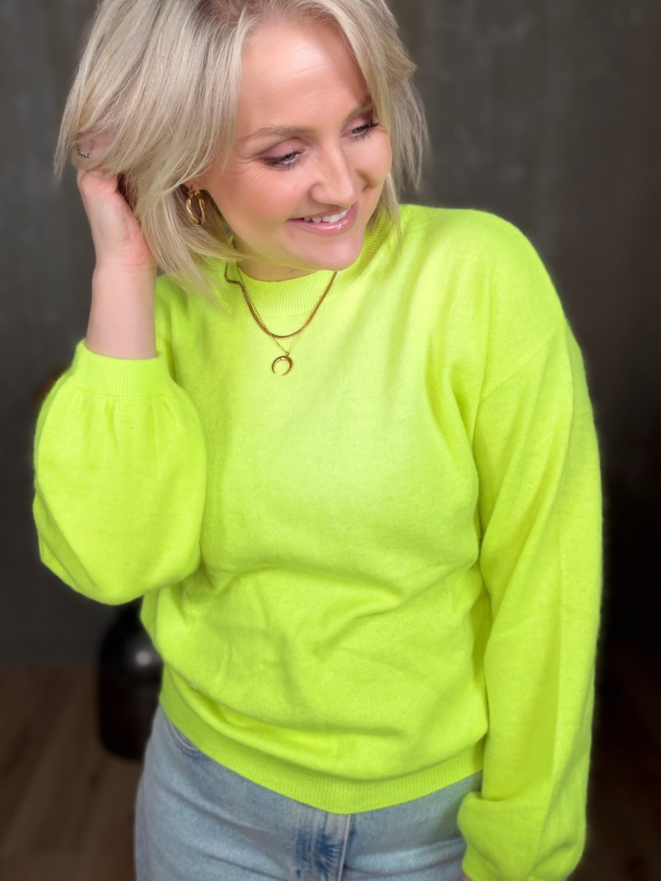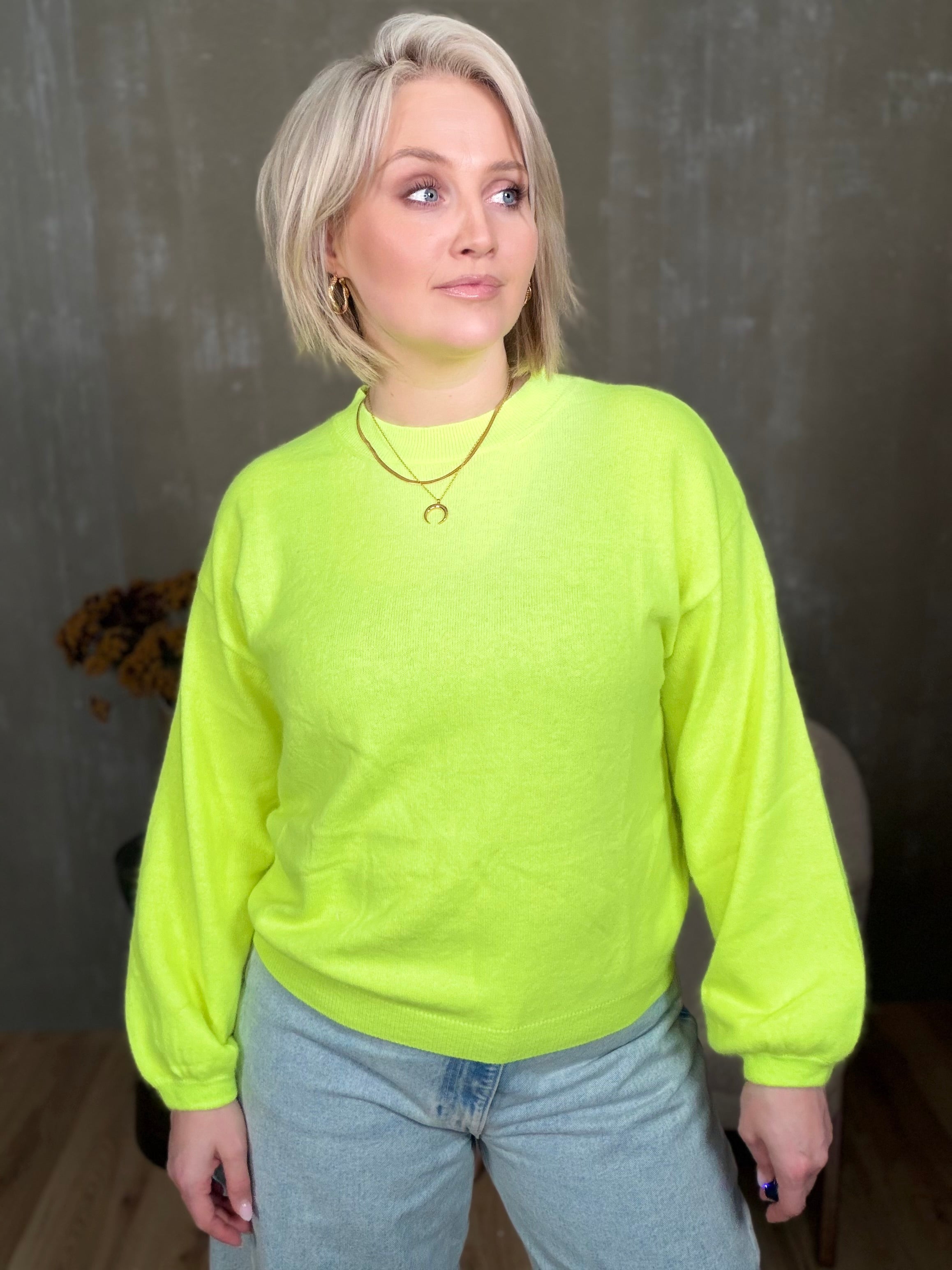 Colorado peysan kemur í 4 stærðum. Hún er með rúnuðu hálsmáli og stroffi að neðan. Ermarnar eru með balloon sniði, þeas það er góð vídd við framhandleggi og tekin saman með teygju stroffi.
