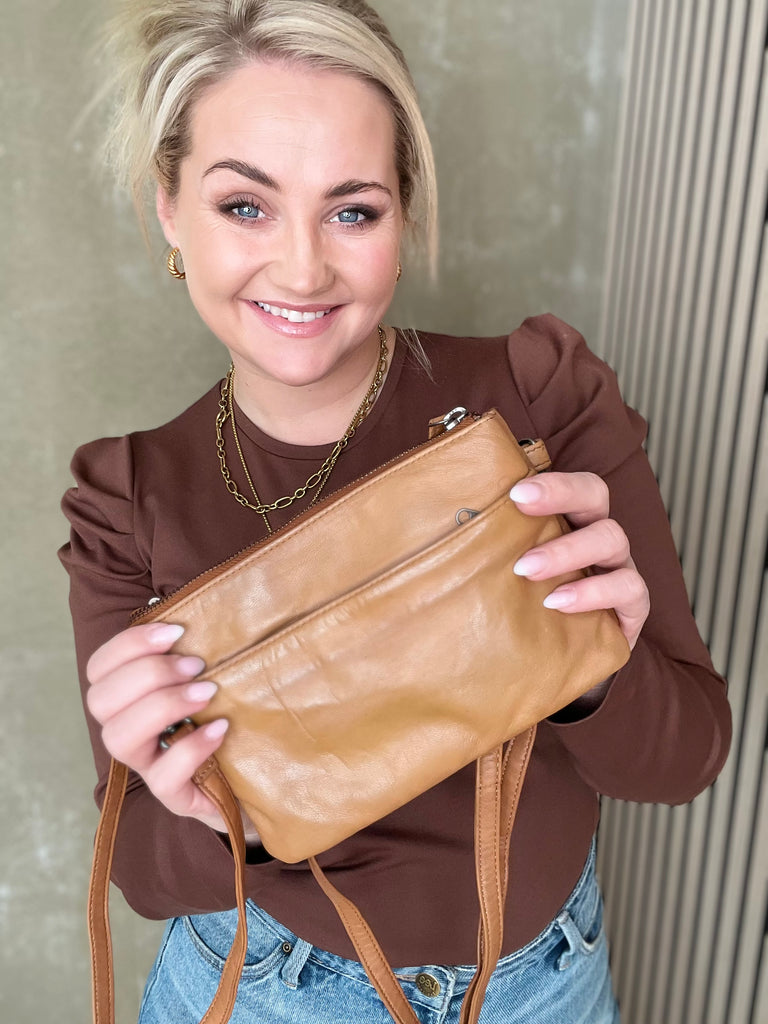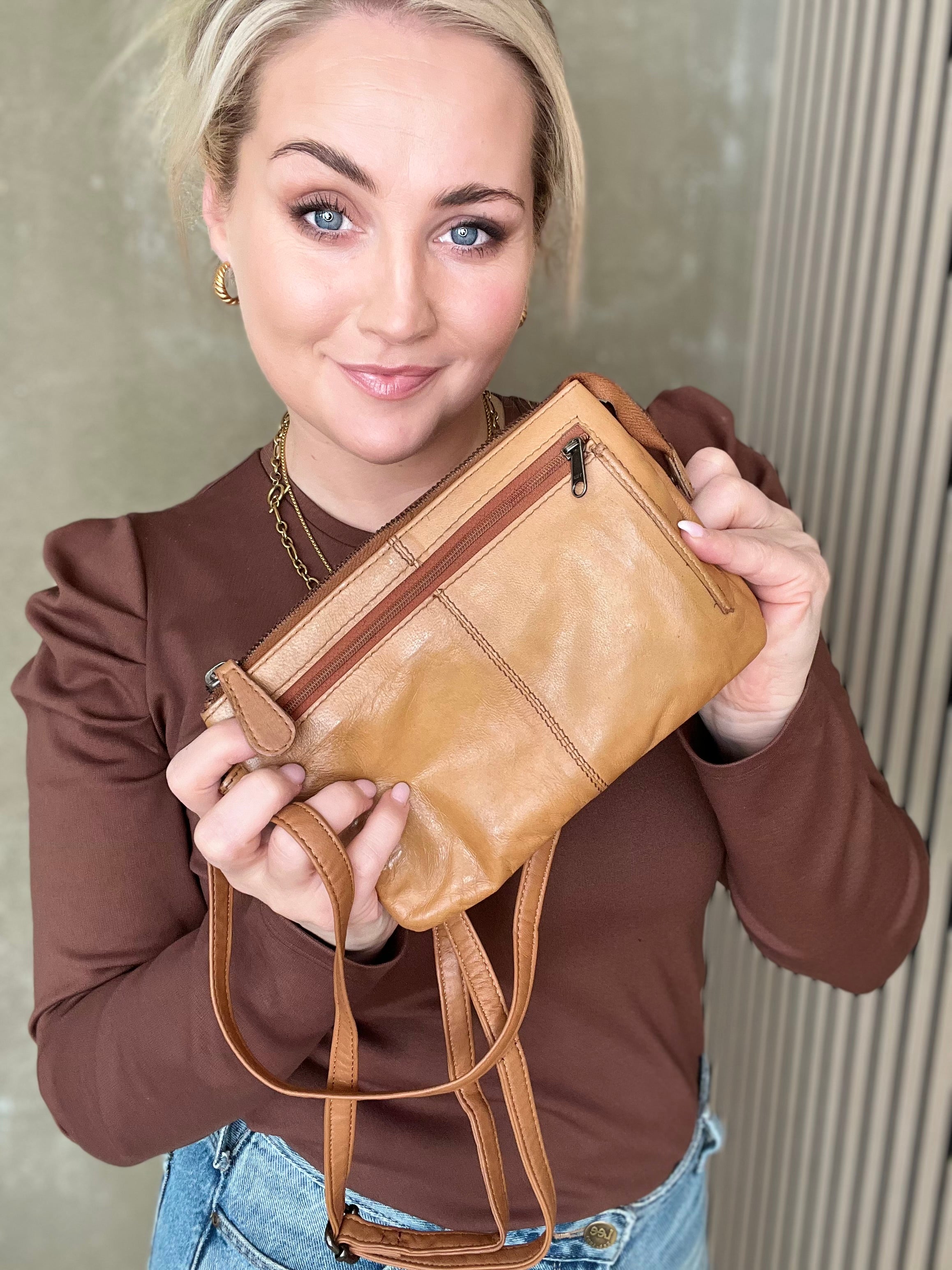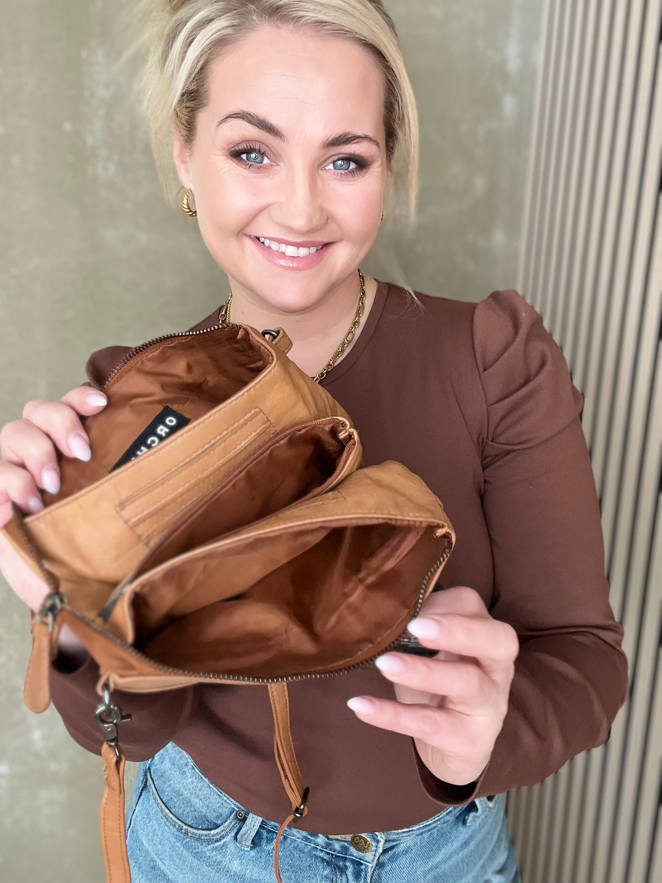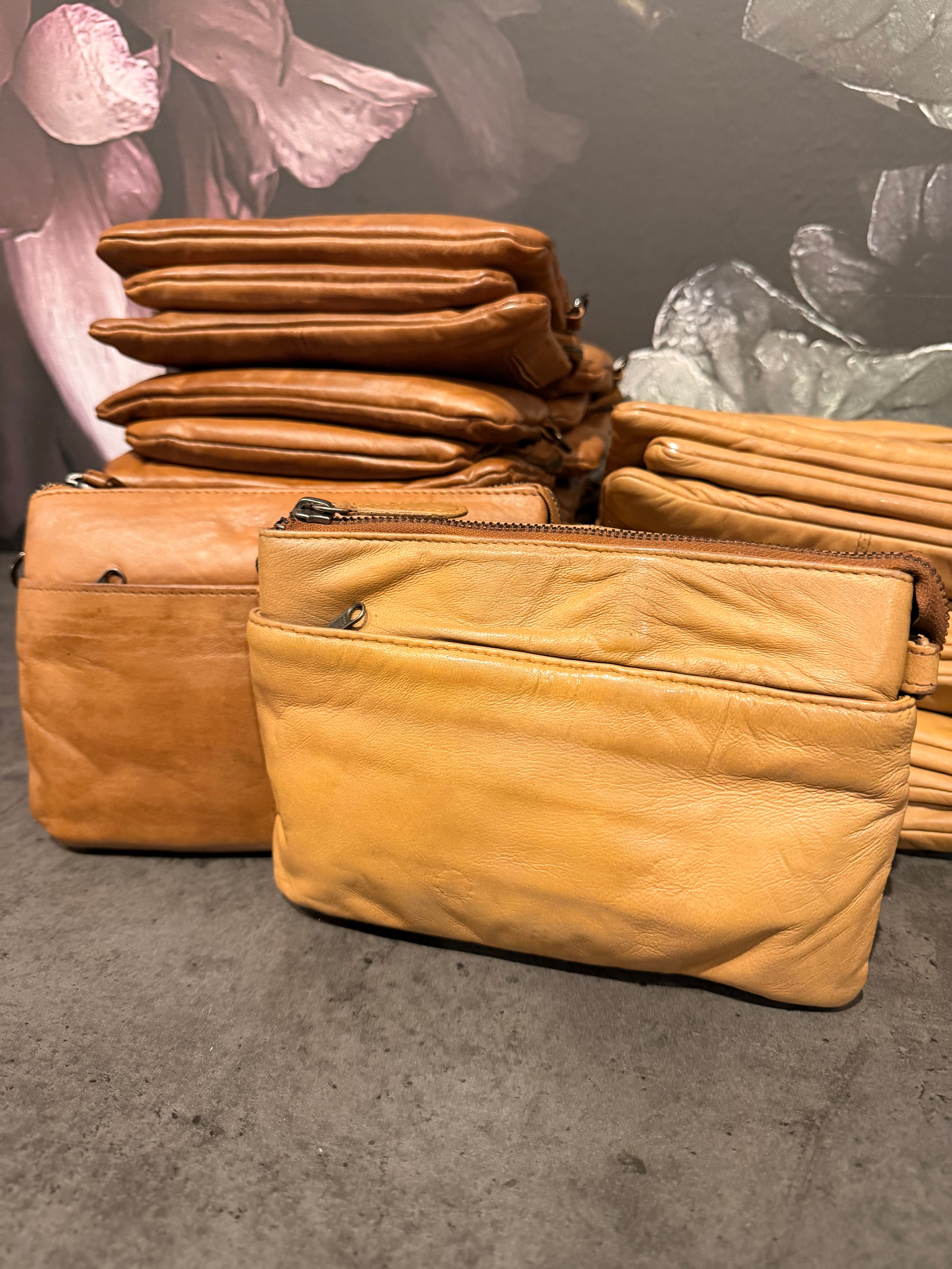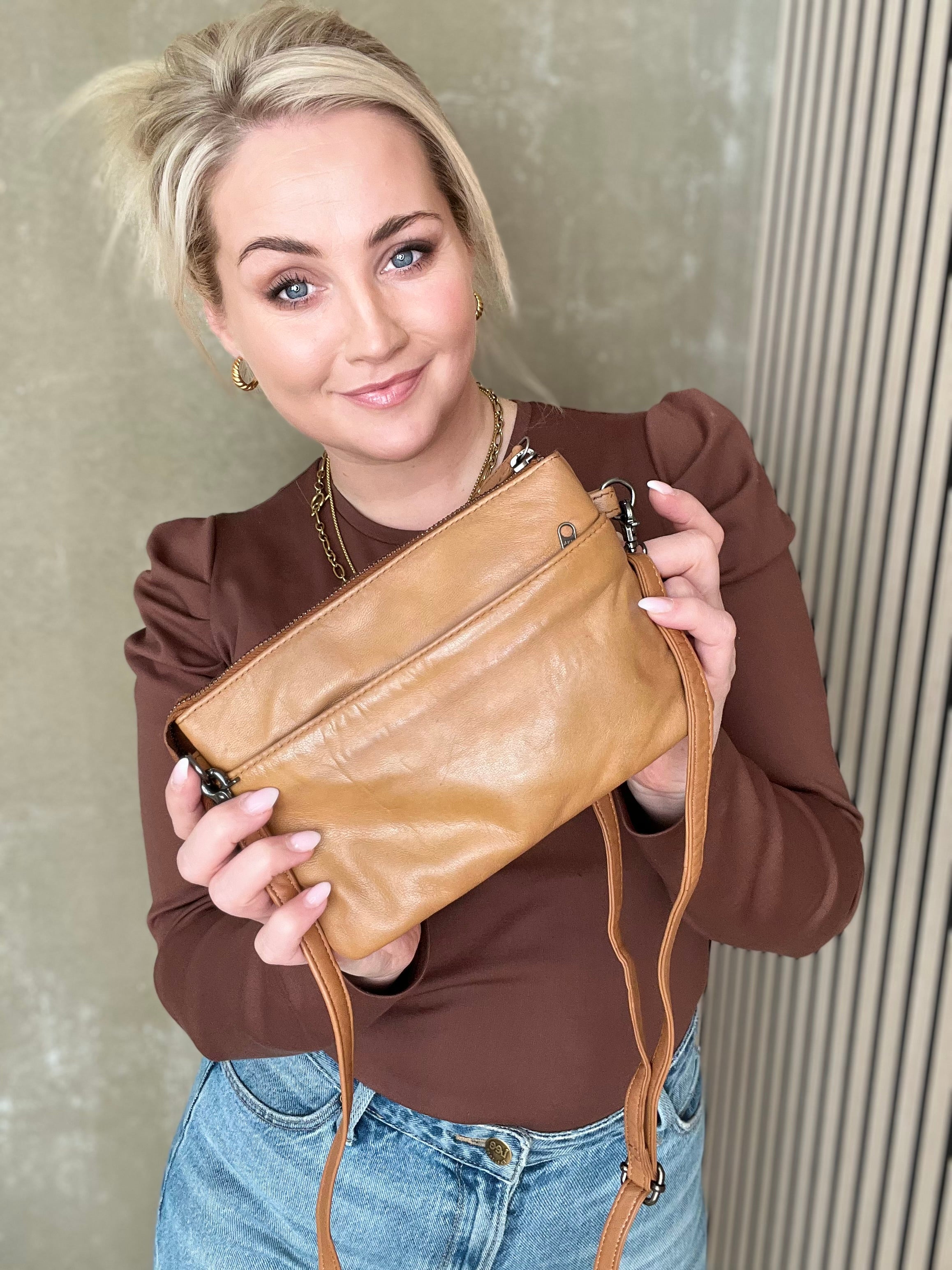 Pen selskapstaska úr 100% lambaskinni. Leðrið er einstaklega mjúkt og þægilegt og ólina er hægt að lengja frá 80-146cm