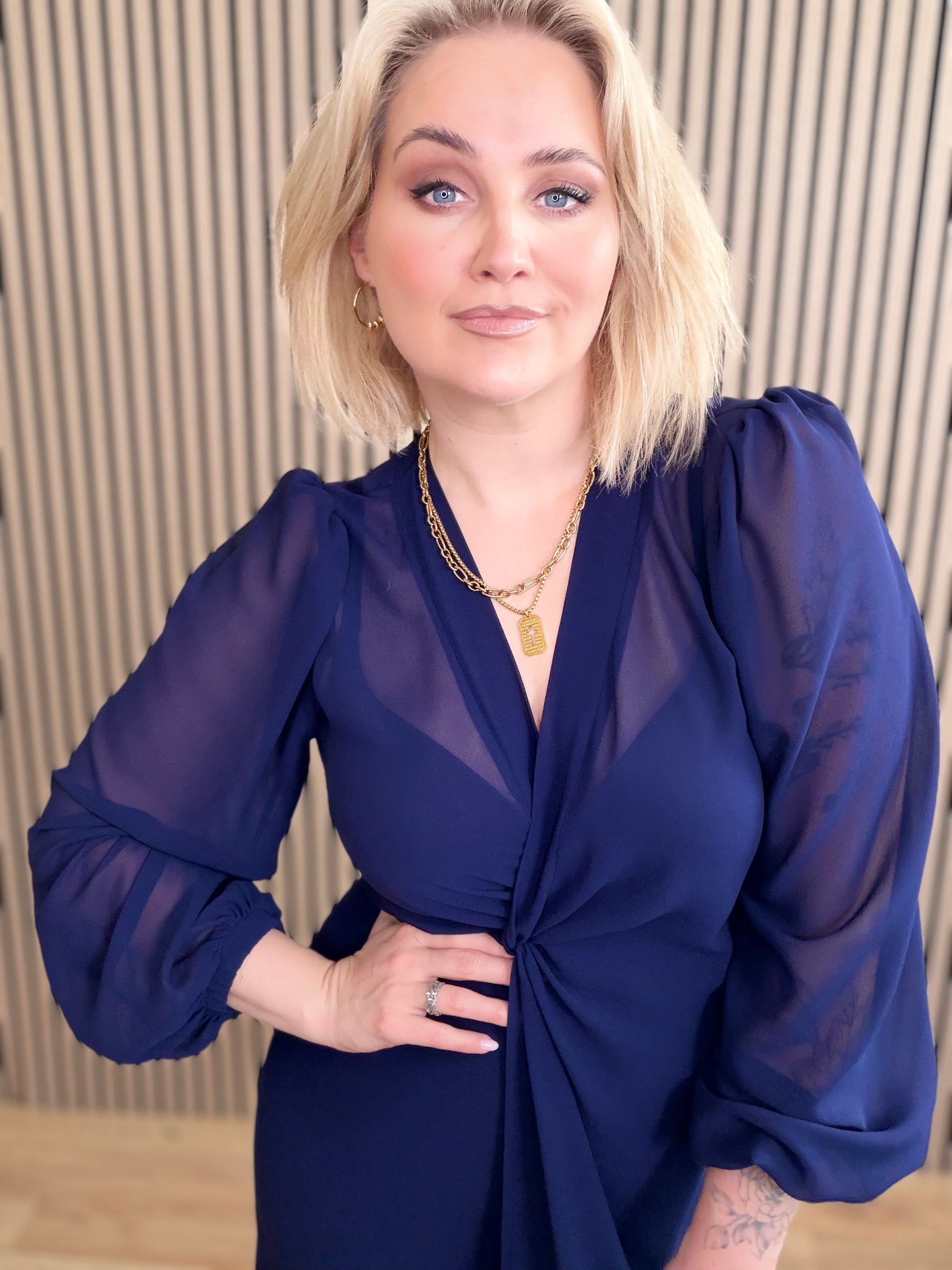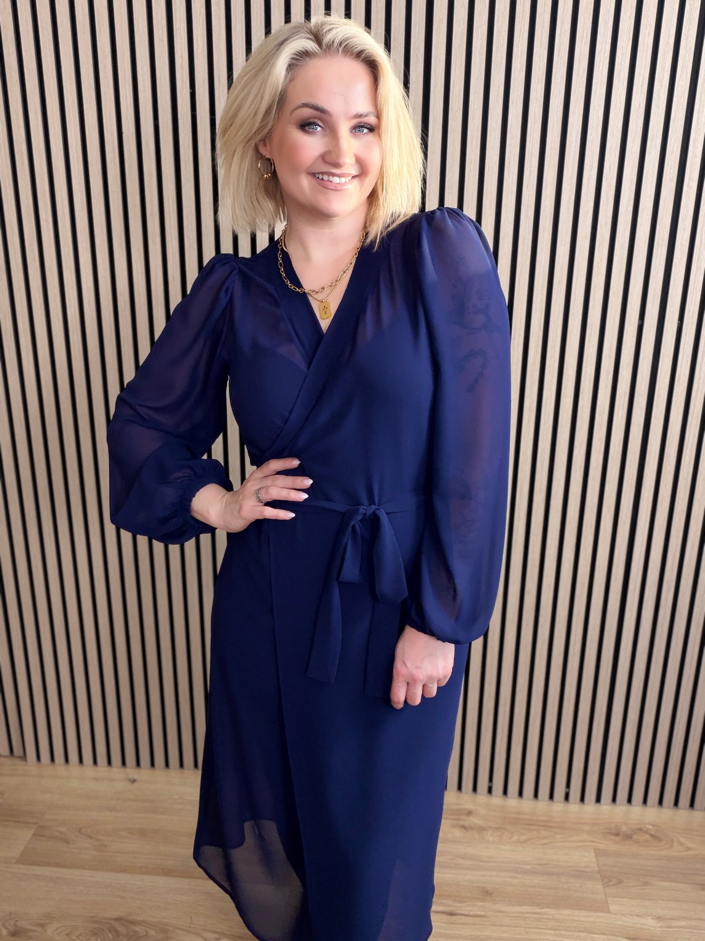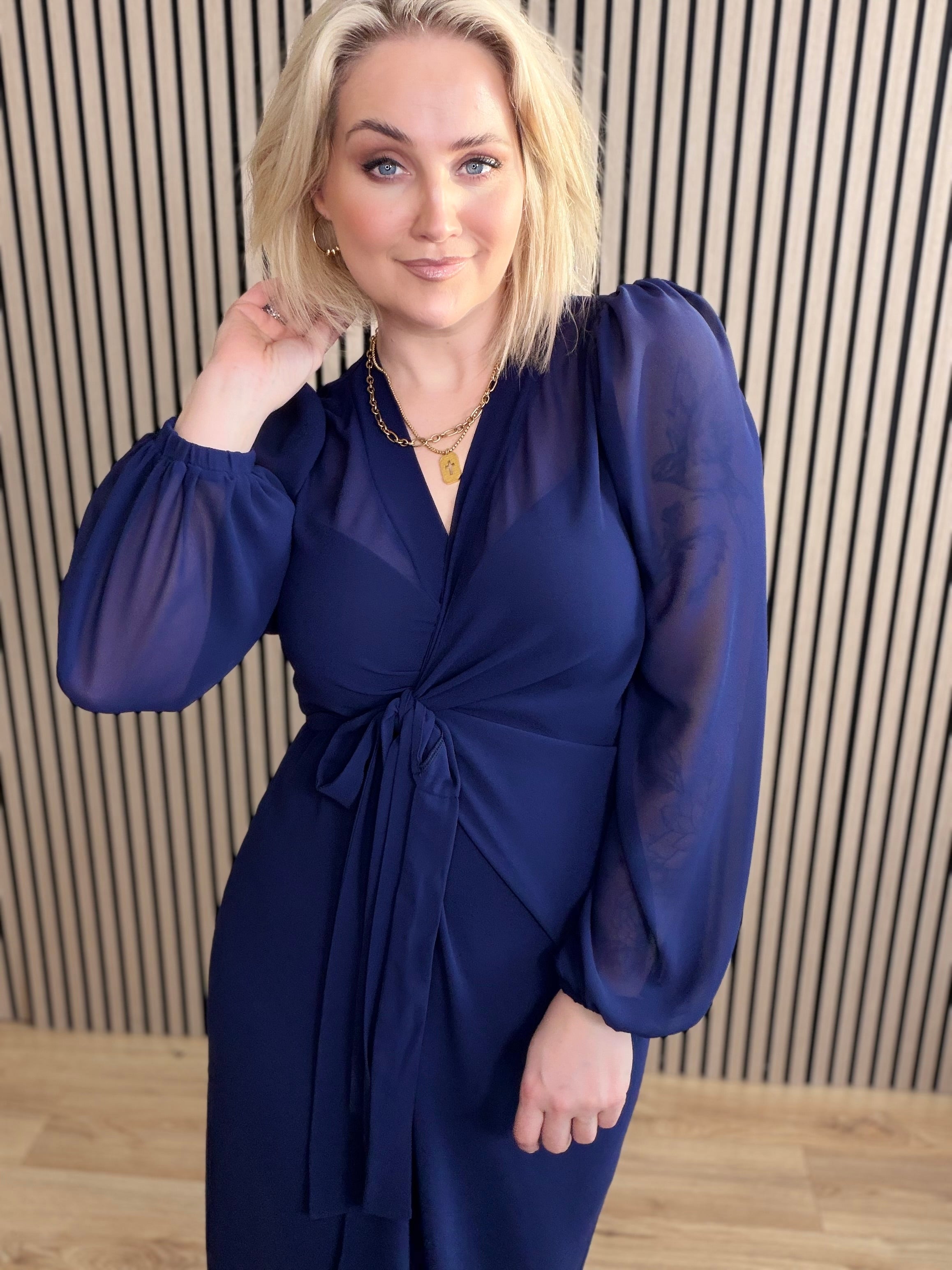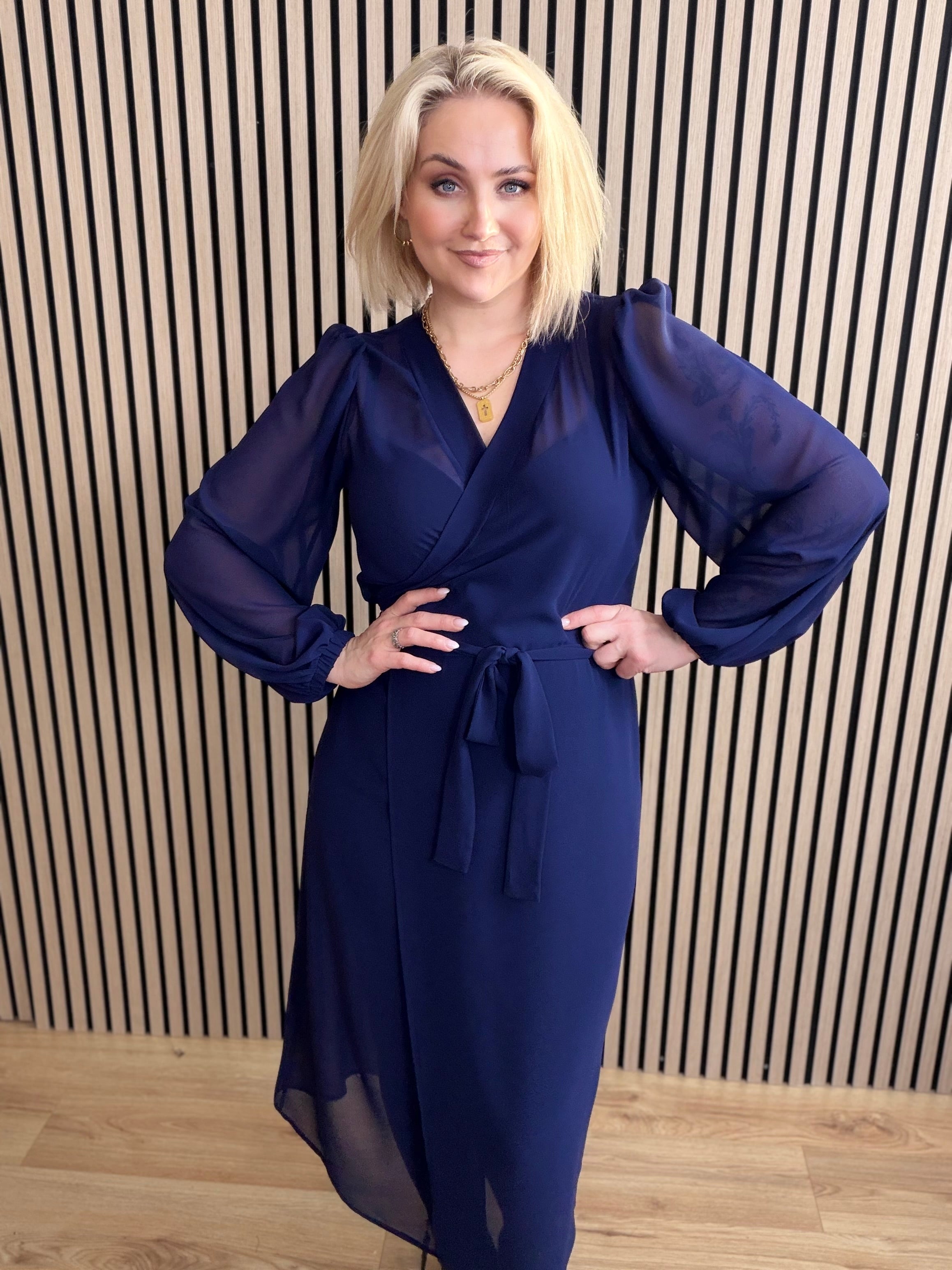 Gresi er dásamlega léttur og flæðandi wrap siffon kjóll sem hægt er að binda á nokkra vegu. Hann er með púff öxlum og aukinni vídd um handleggi en tekinn saman um úlnliði með teygju.