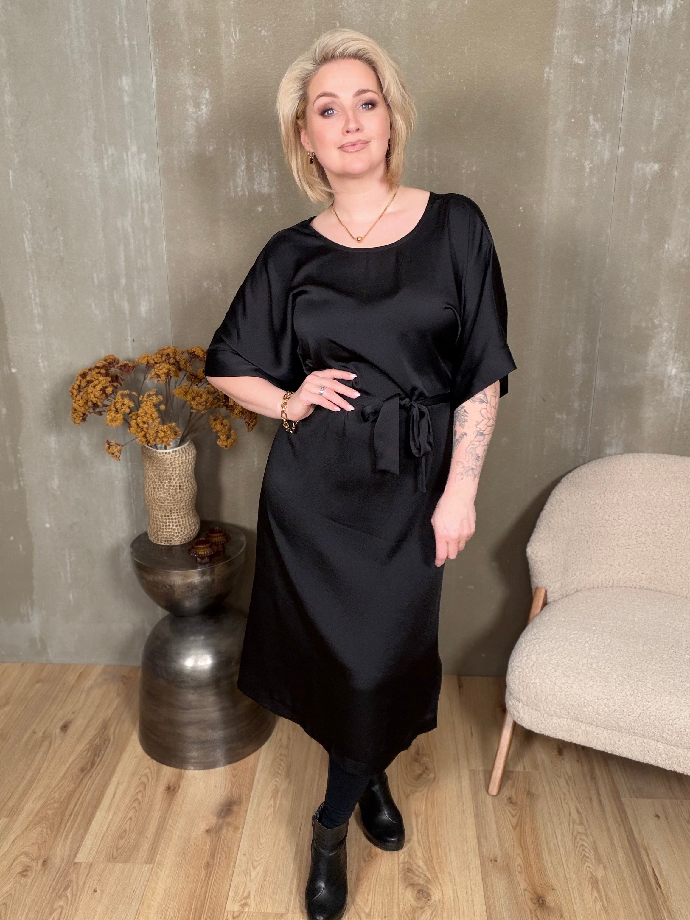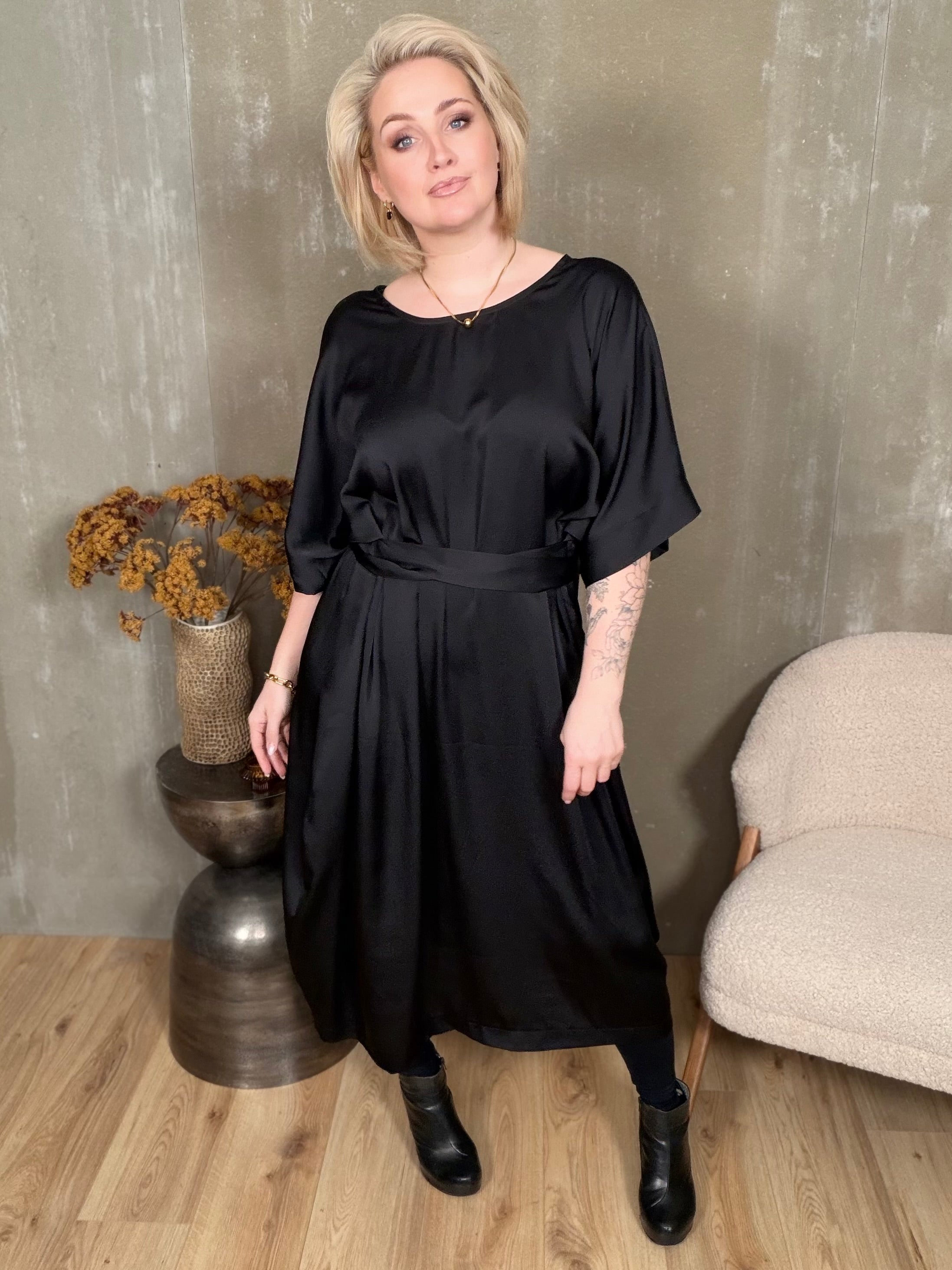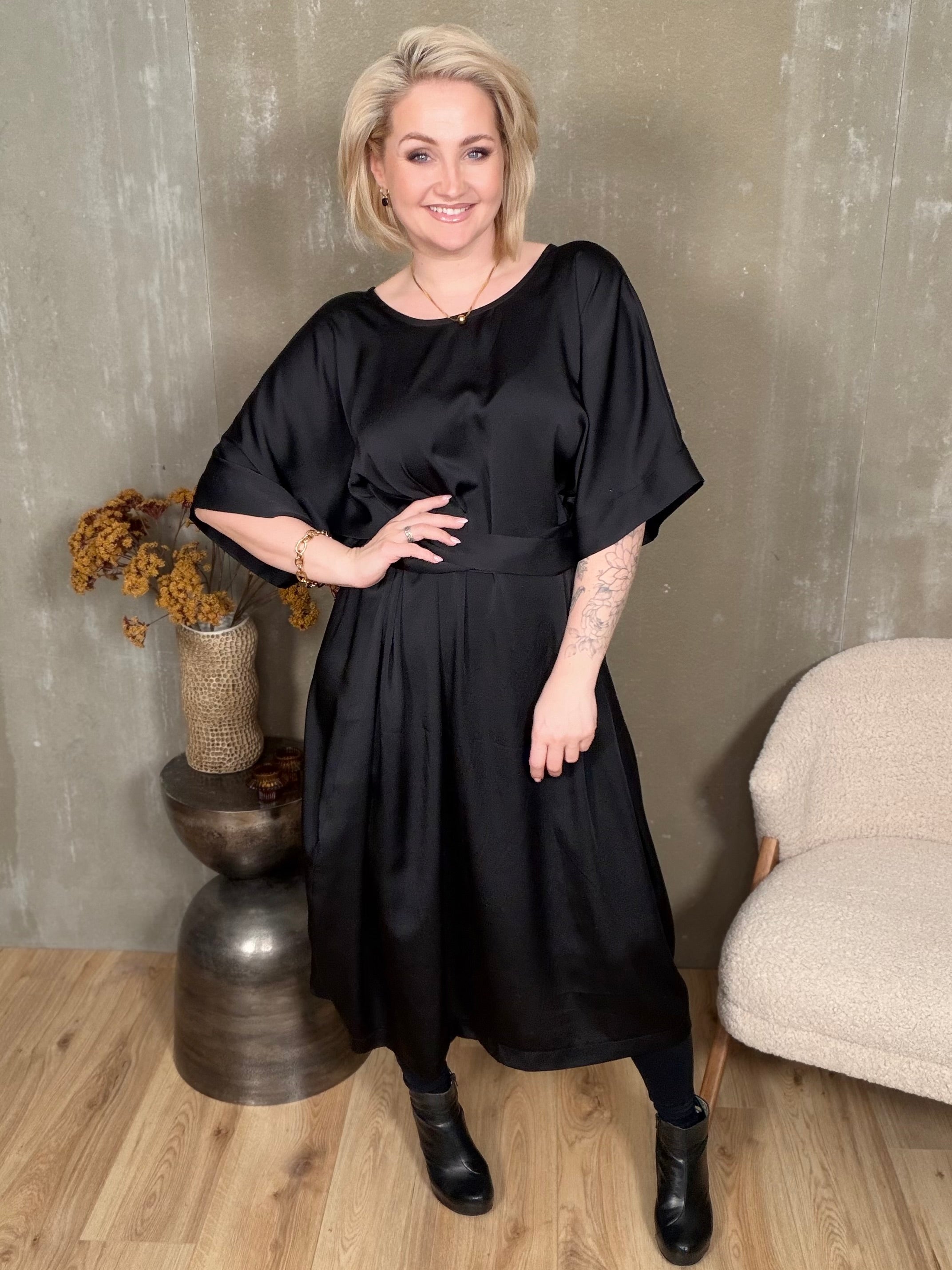 Smart og virkilega klæðilegur kjóll með kvartermum og fallegri sídd sem lítið mál er að dressa bæði upp og niður en hann er frekar síður með svolítilli auka vídd í hliðunum neðst. Hægt að para við hæla eða boots og nota hversdags eða virkilega spari!