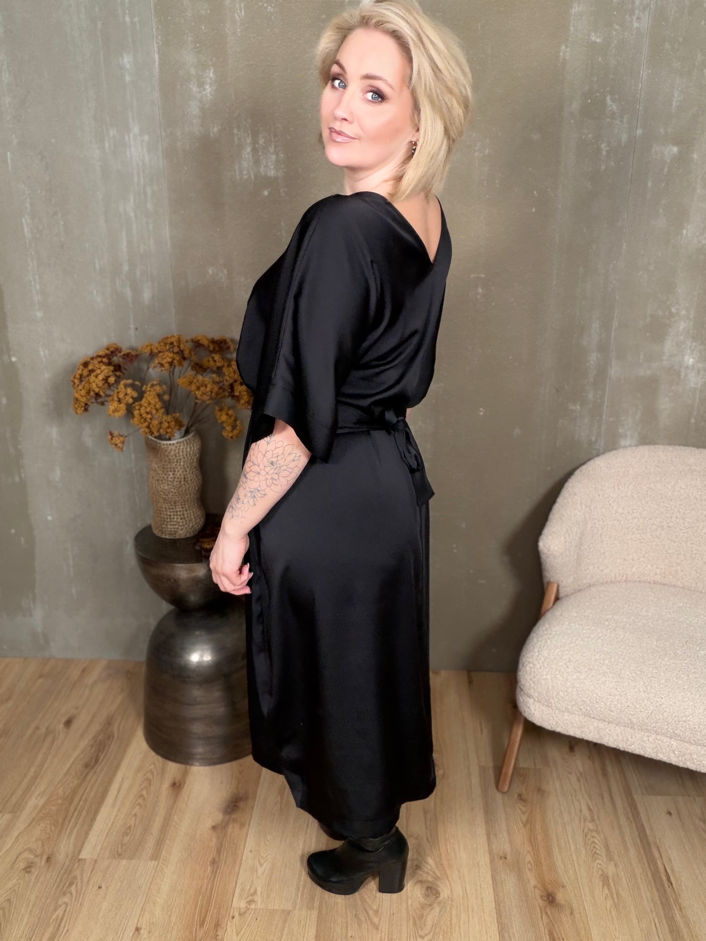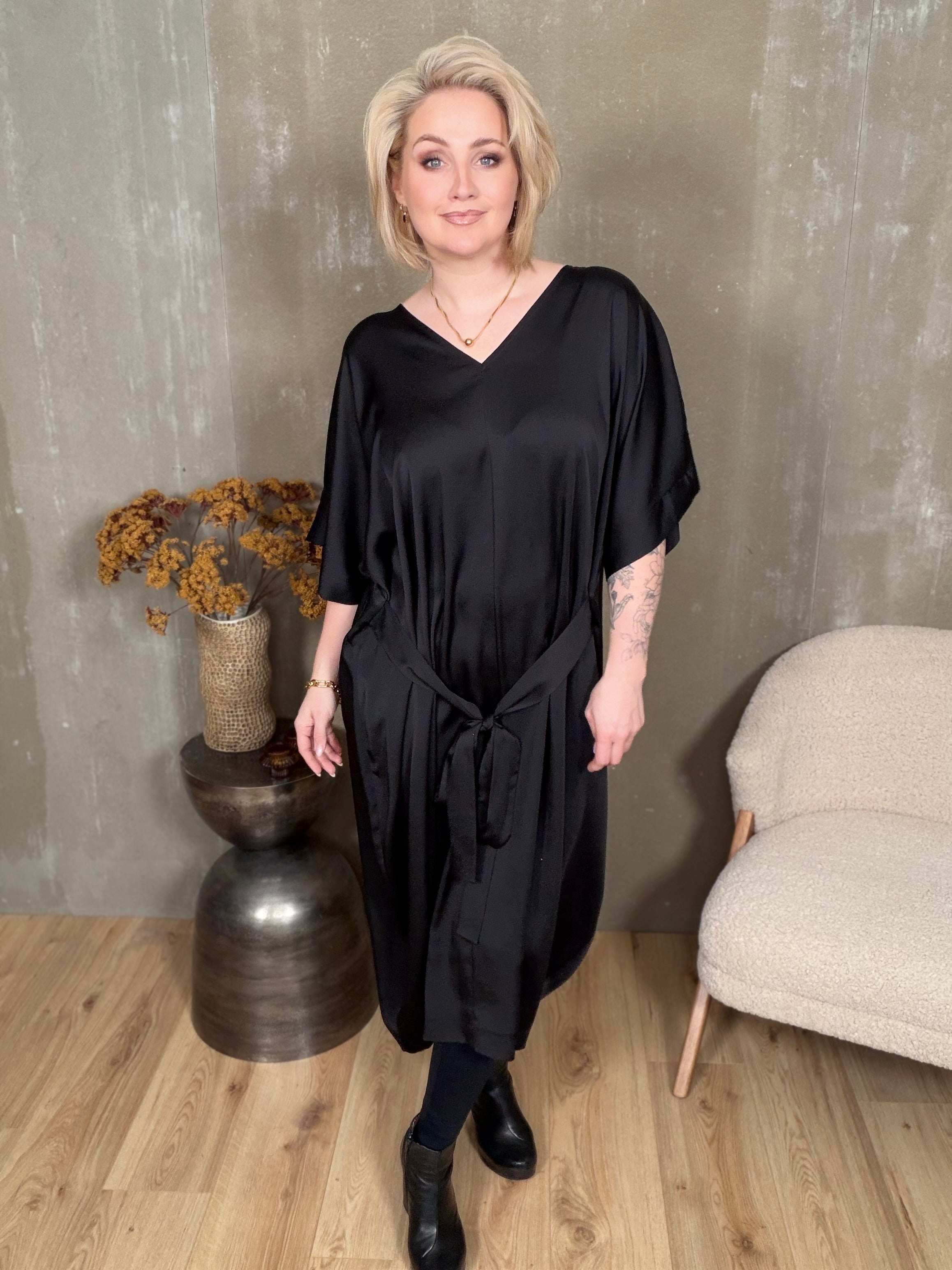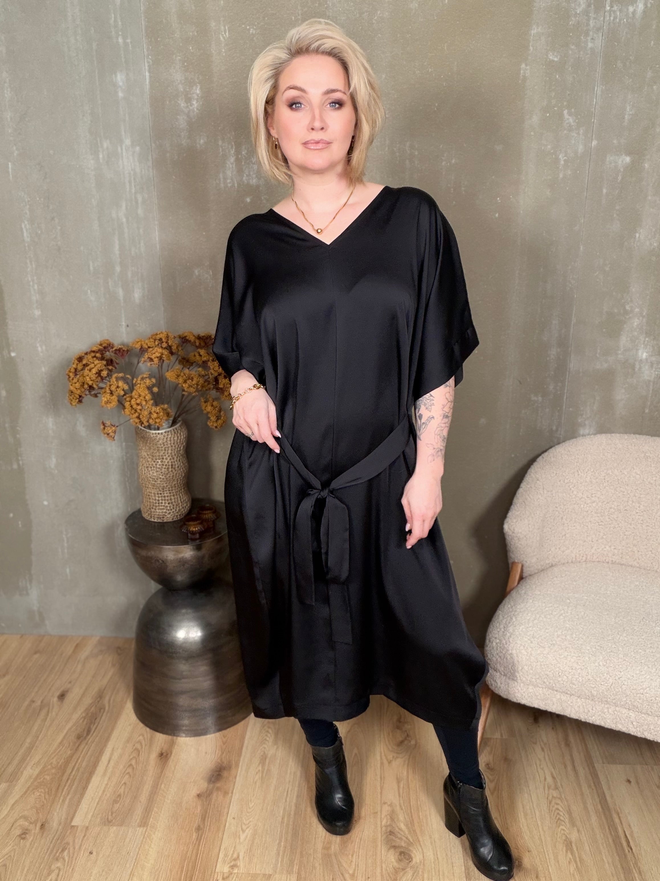 Smart og virkilega klæðilegur kjóll með kvartermum og fallegri sídd sem lítið mál er að dressa bæði upp og niður en hann er frekar síður með svolítilli auka vídd í hliðunum neðst. Hægt að para við hæla eða boots og nota hversdags eða virkilega spari!