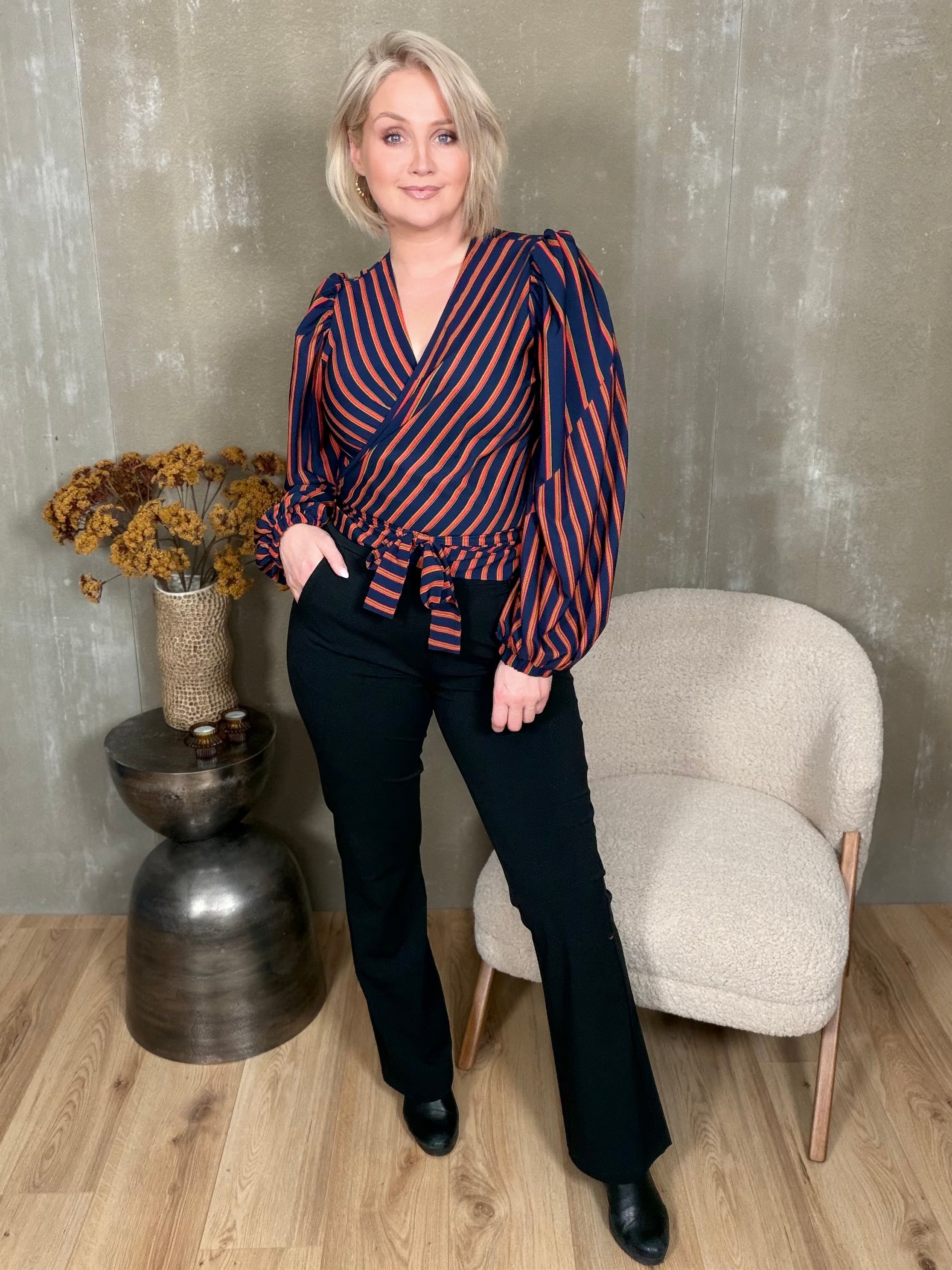 Ilmur er falleg wrap skyrta sem hægt er að binda á nokkra vegu. Hún er með púff öxlum og einstaklega sparileg og flatterandi og skemmtilegt að klæða upp og niður.
