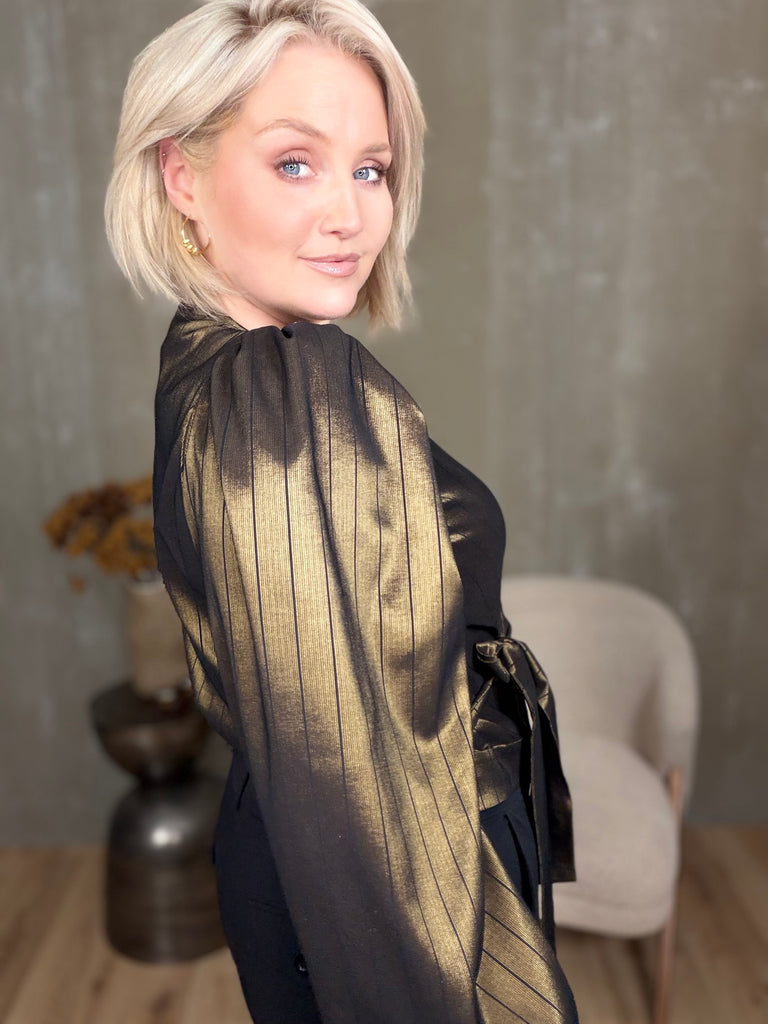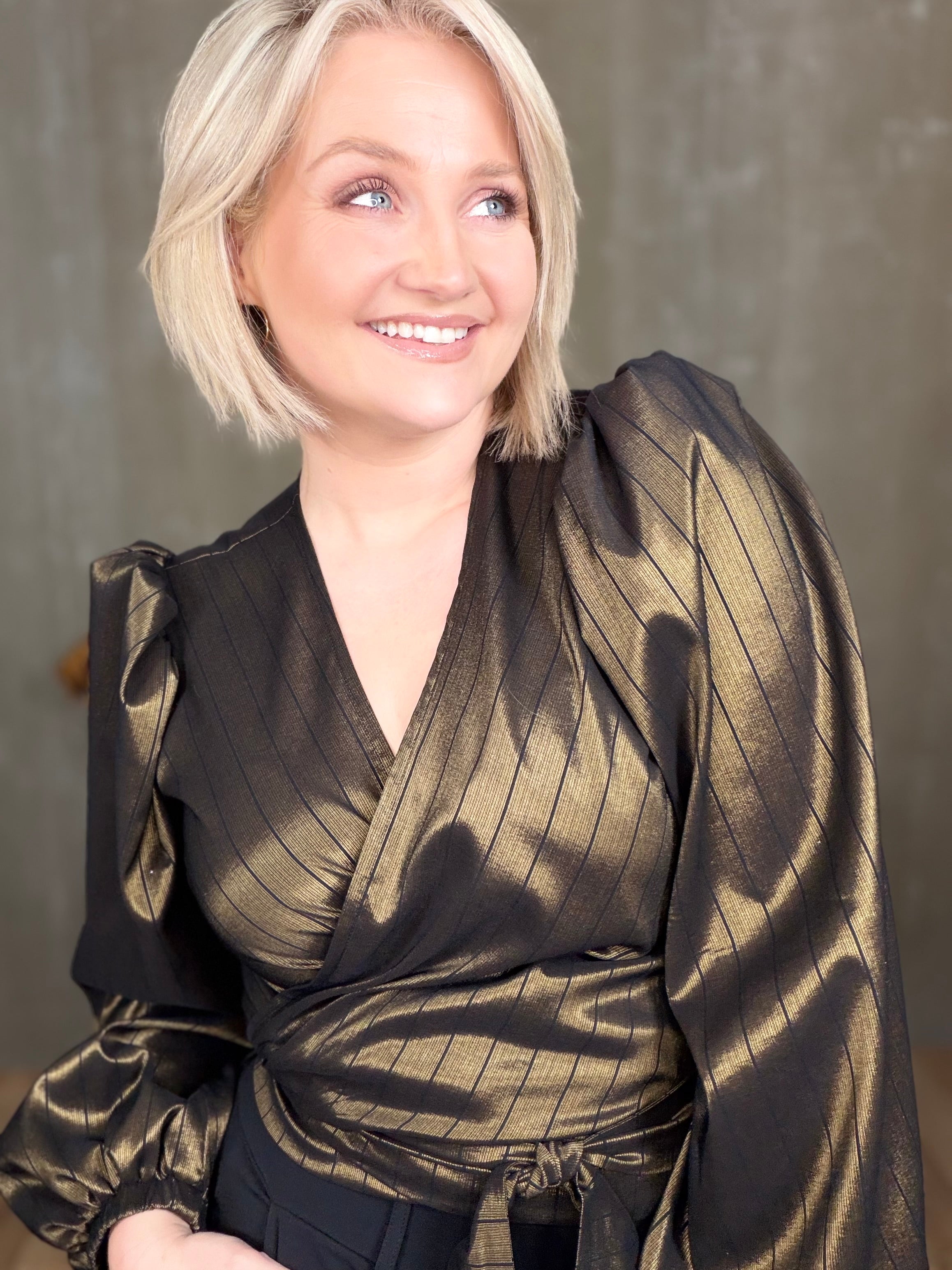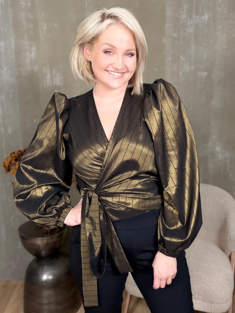 Ilmur er falleg wrap skyrta sem hægt er að binda á nokkra vegu. Hún er með púff öxlum og einstaklega sparileg og flatterandi og skemmtilegt að klæða upp og niður.