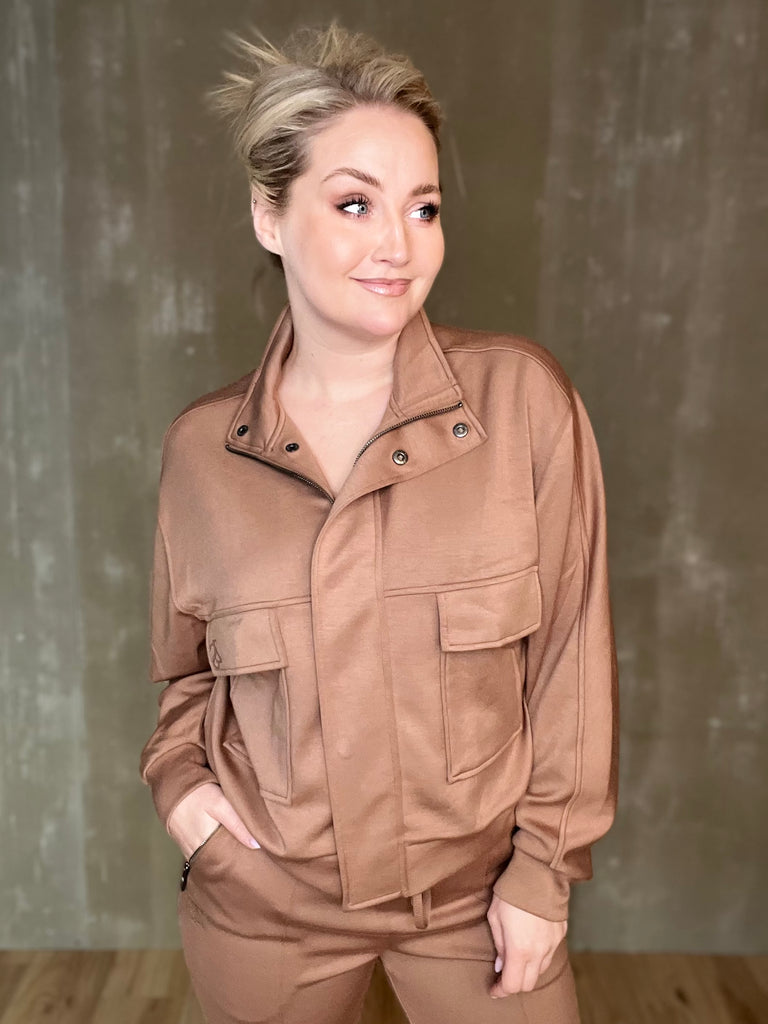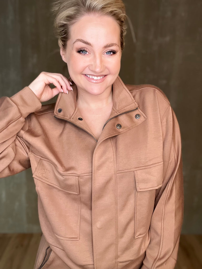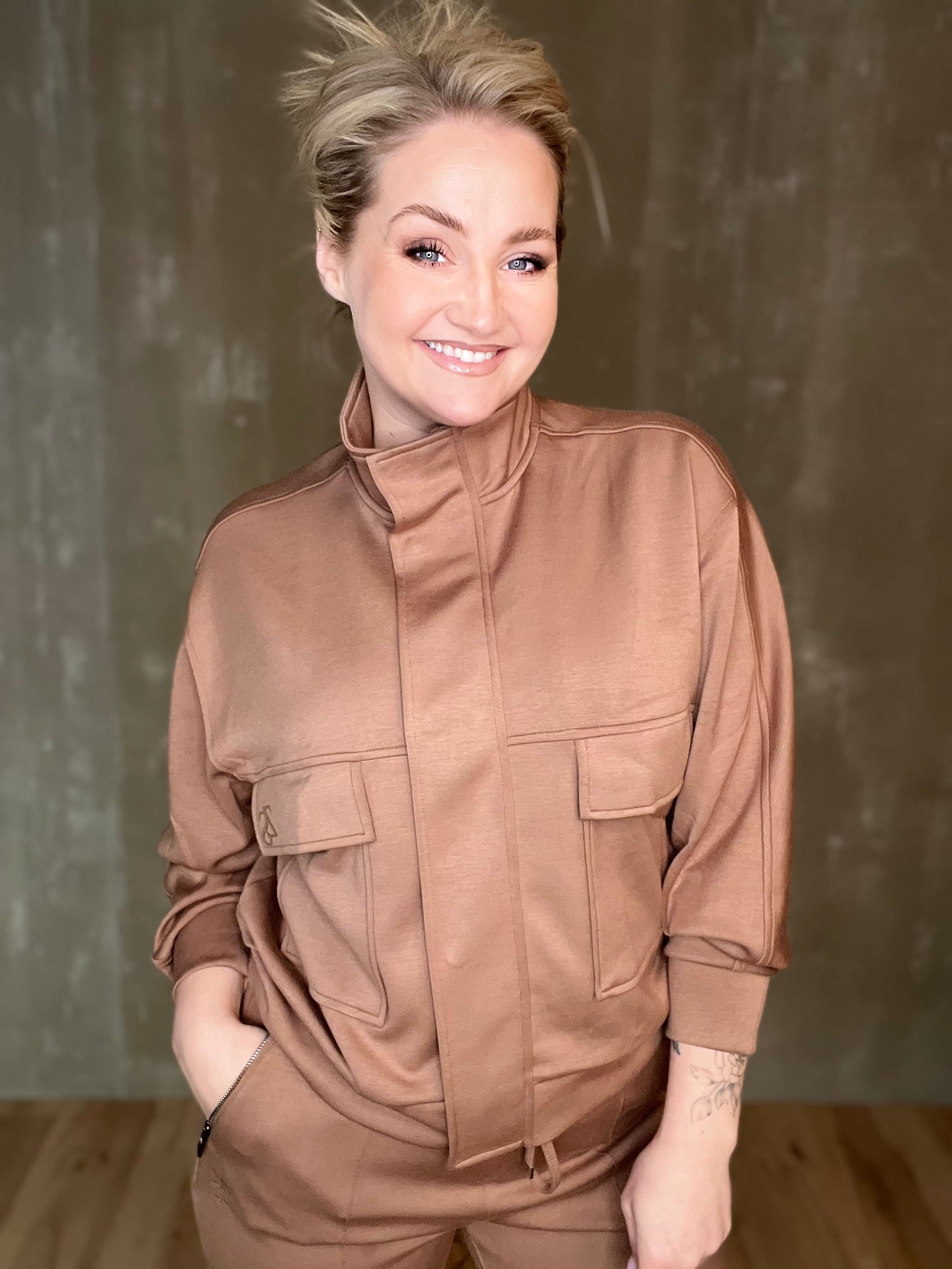 Jacky jakkinn frá Zoso er sportlegur peysujakki með standkraga, falinni renniláslokun og smellum sem og vösum með flipa og lógói. Efnið er himneskt og passar þessi bæði við buxur í stíl eða td gallabuxur.