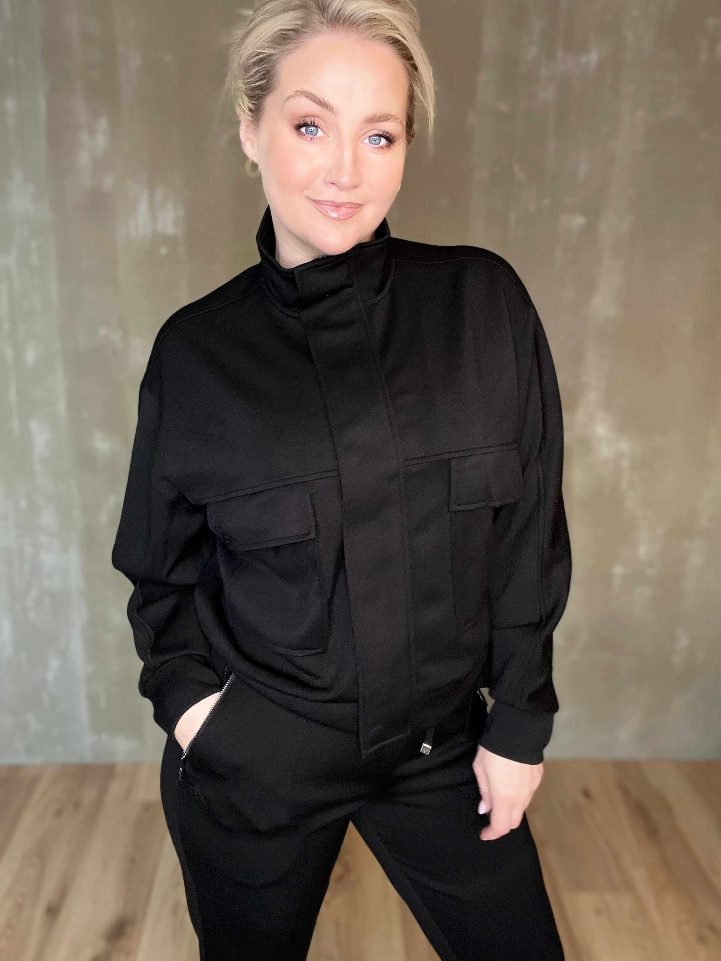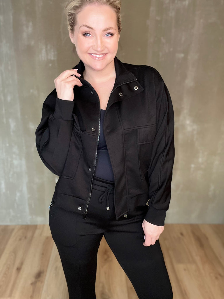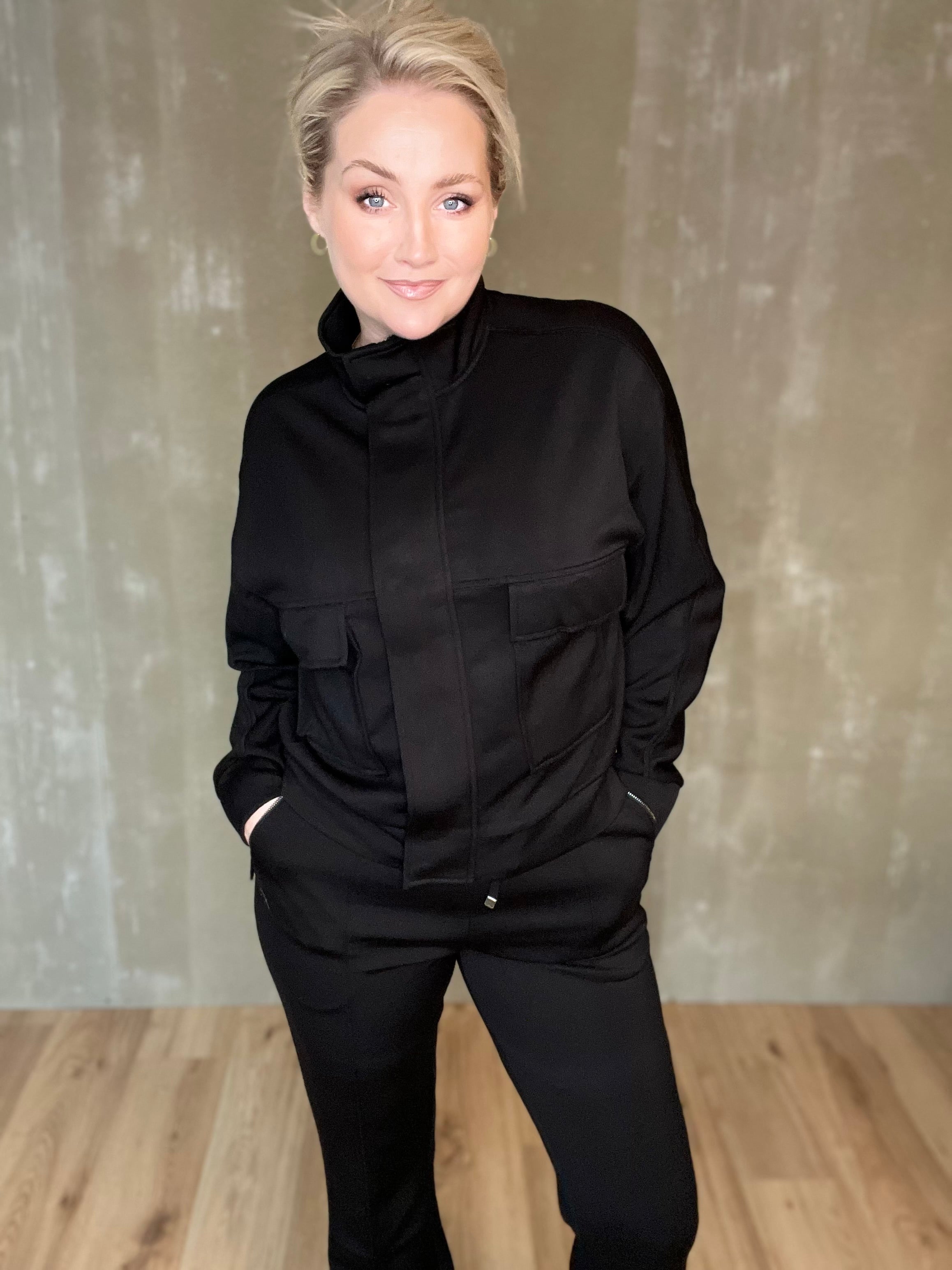 Jacky jakkinn frá Zoso er sportlegur peysujakki með standkraga, falinni renniláslokun og smellum sem og vösum með flipa og lógói. Efnið er himneskt og passar þessi bæði við buxur í stíl eða td gallabuxur.