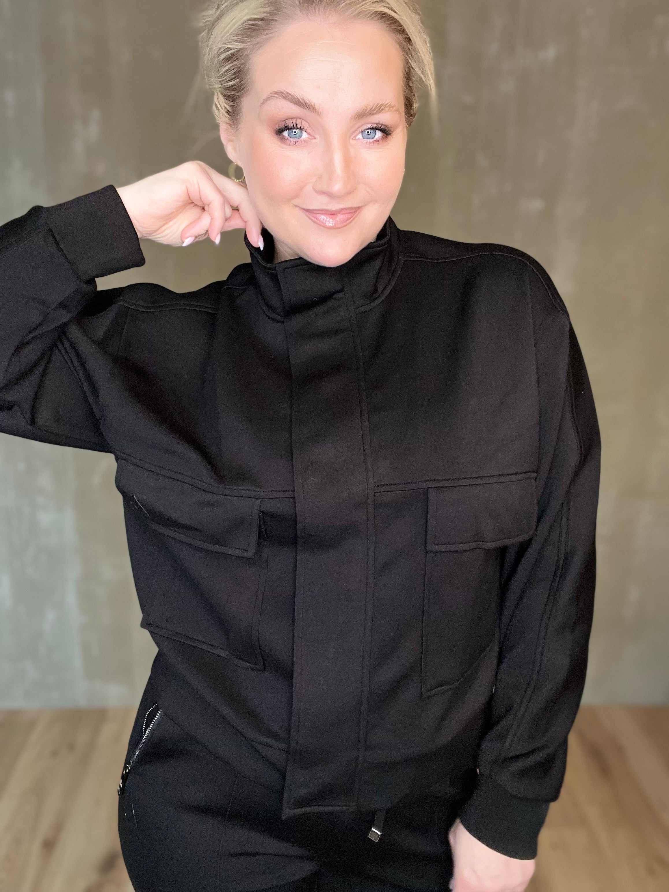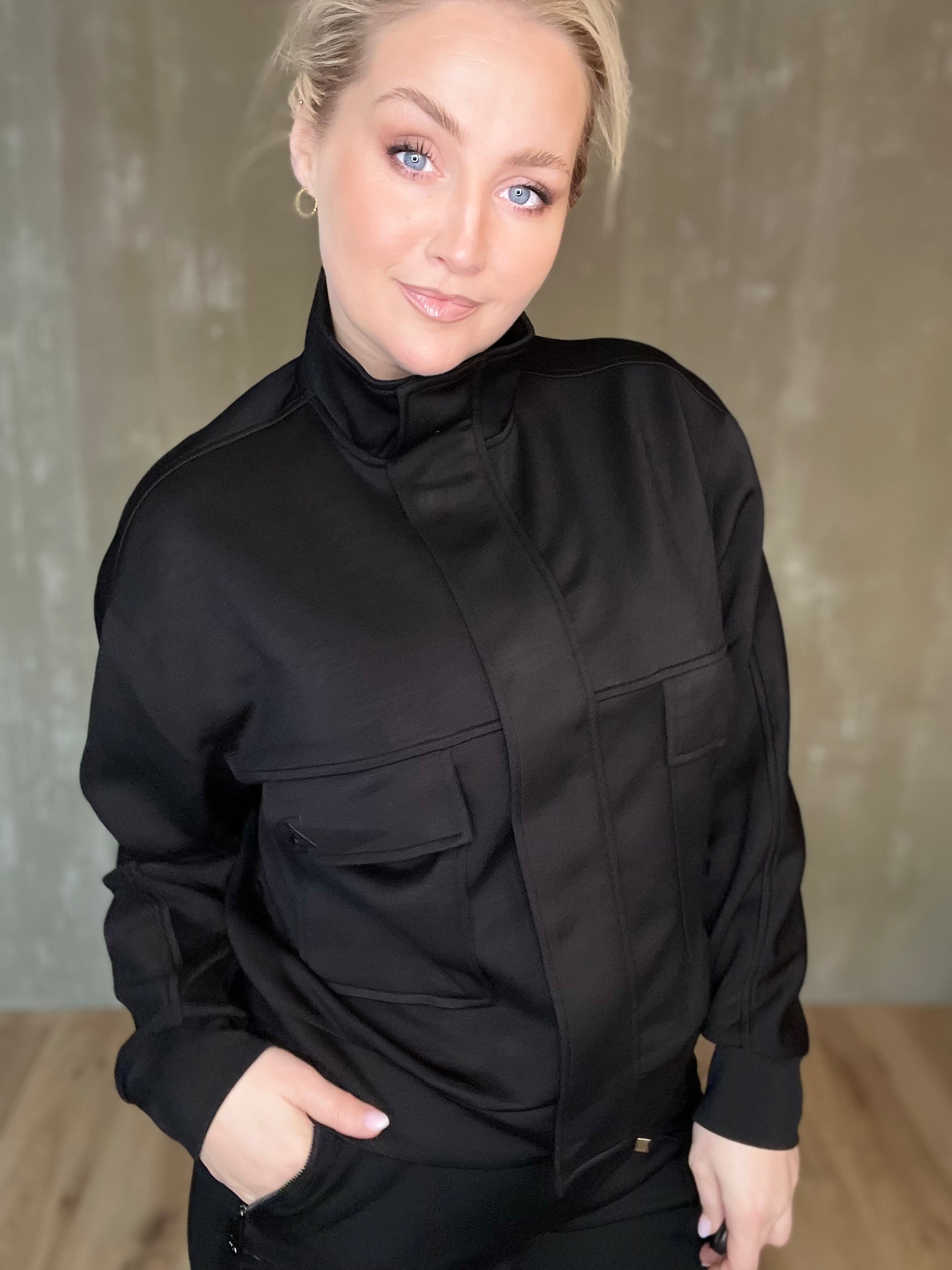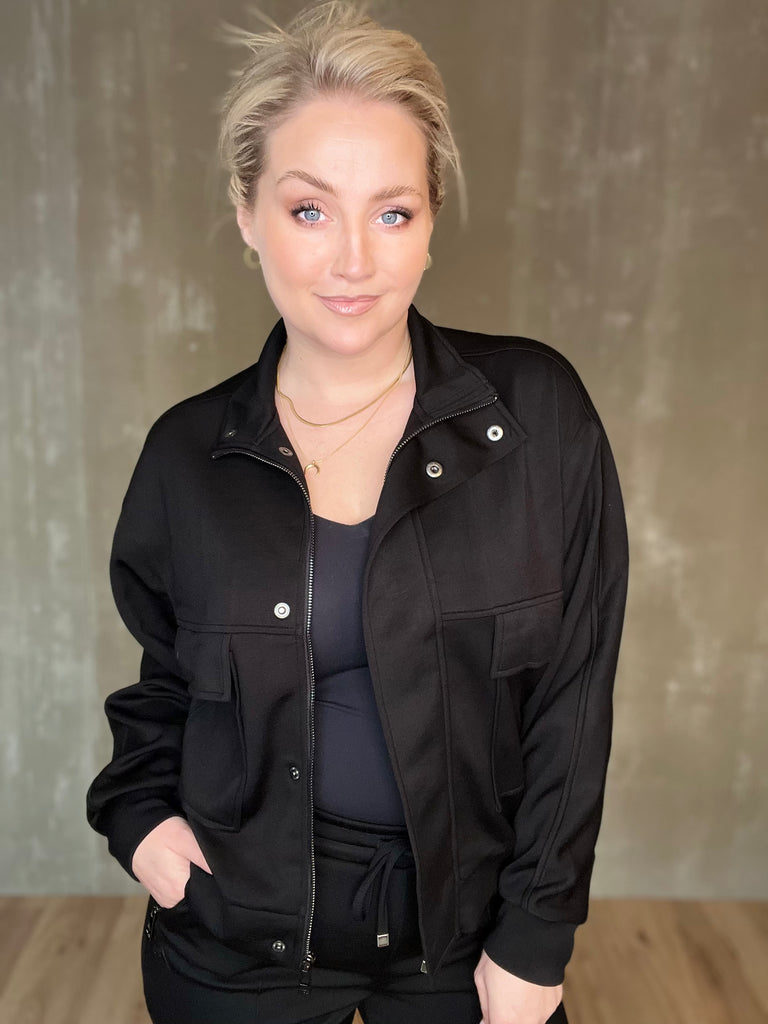 Jacky jakkinn frá Zoso er sportlegur peysujakki með standkraga, falinni renniláslokun og smellum sem og vösum með flipa og lógói. Efnið er himneskt og passar þessi bæði við buxur í stíl eða td gallabuxur.