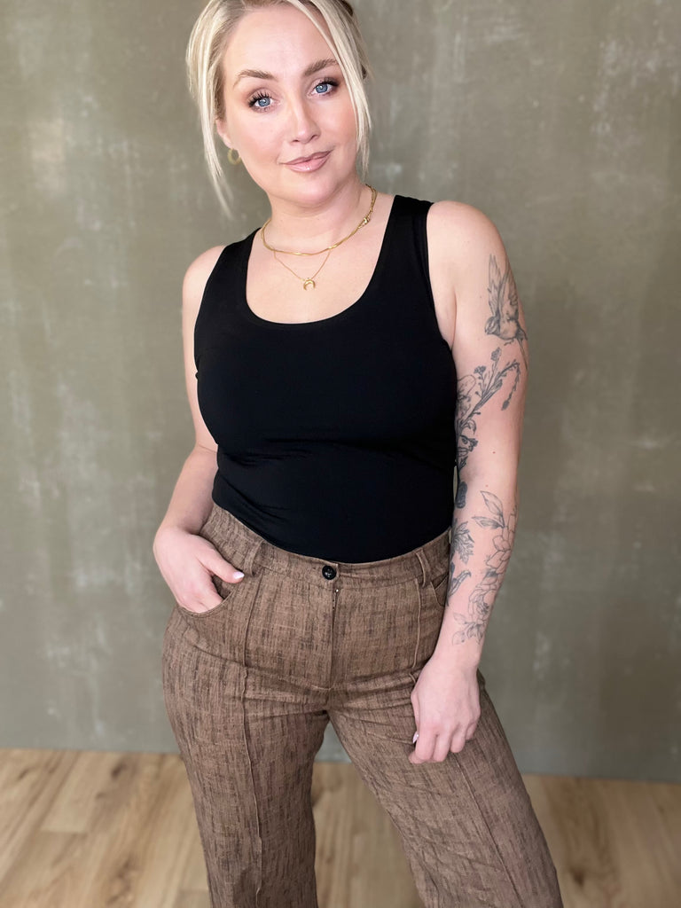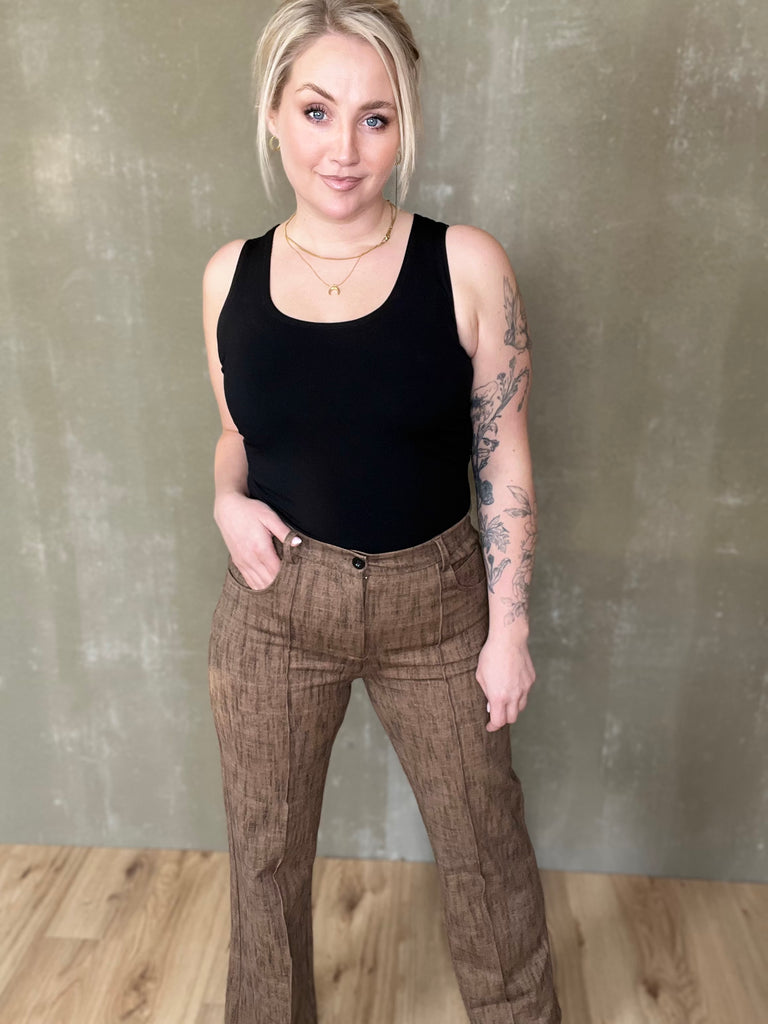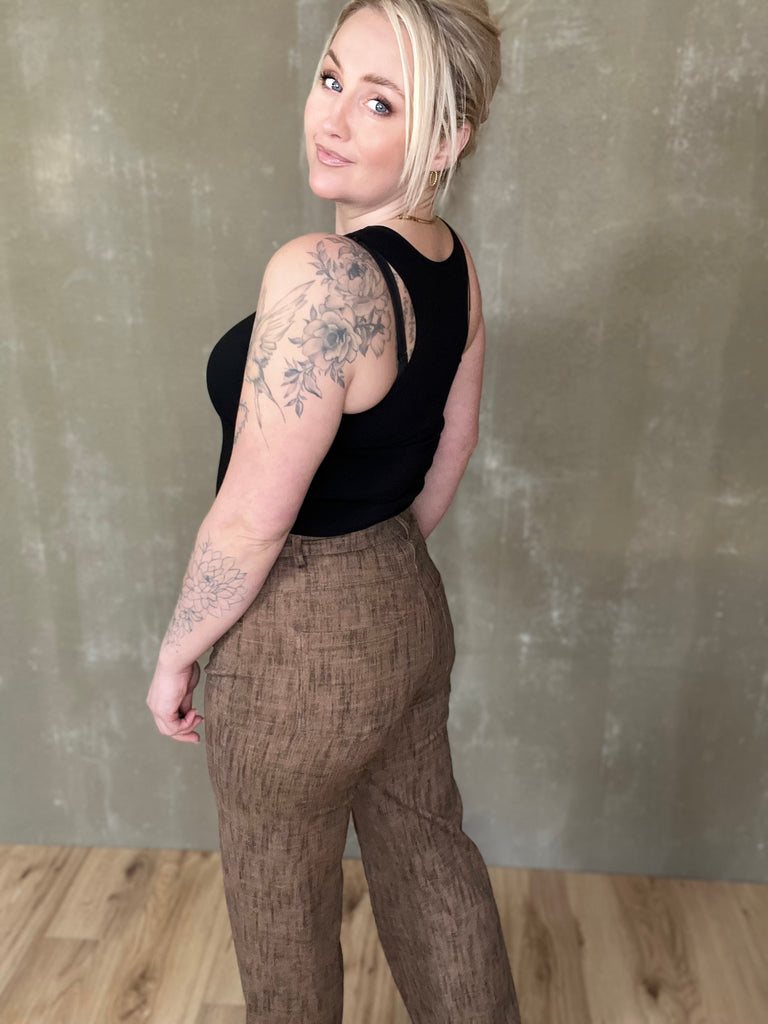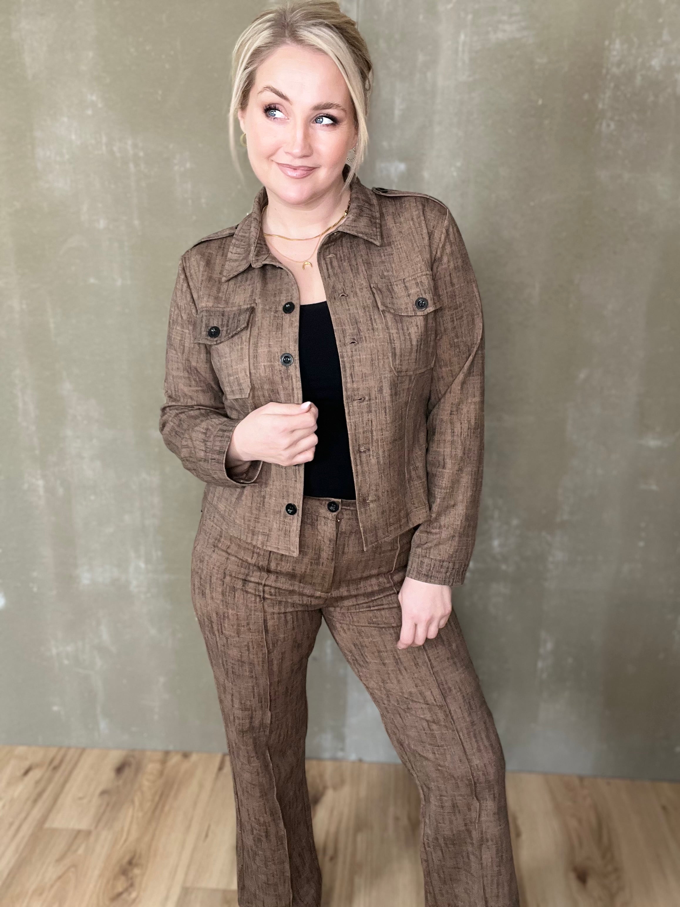 Megan buxurnar eru hluti af setti en standa svo sannarlega líka einar og sér. Fallegar, vandaðar buxur frá Zoso! Megan buxurnar eru úr sterku efni, með víðum skálmum og „denim“ áferð. Þær parast einstaklega vel við Milou skyrtujakkann sem er úr sama efni.