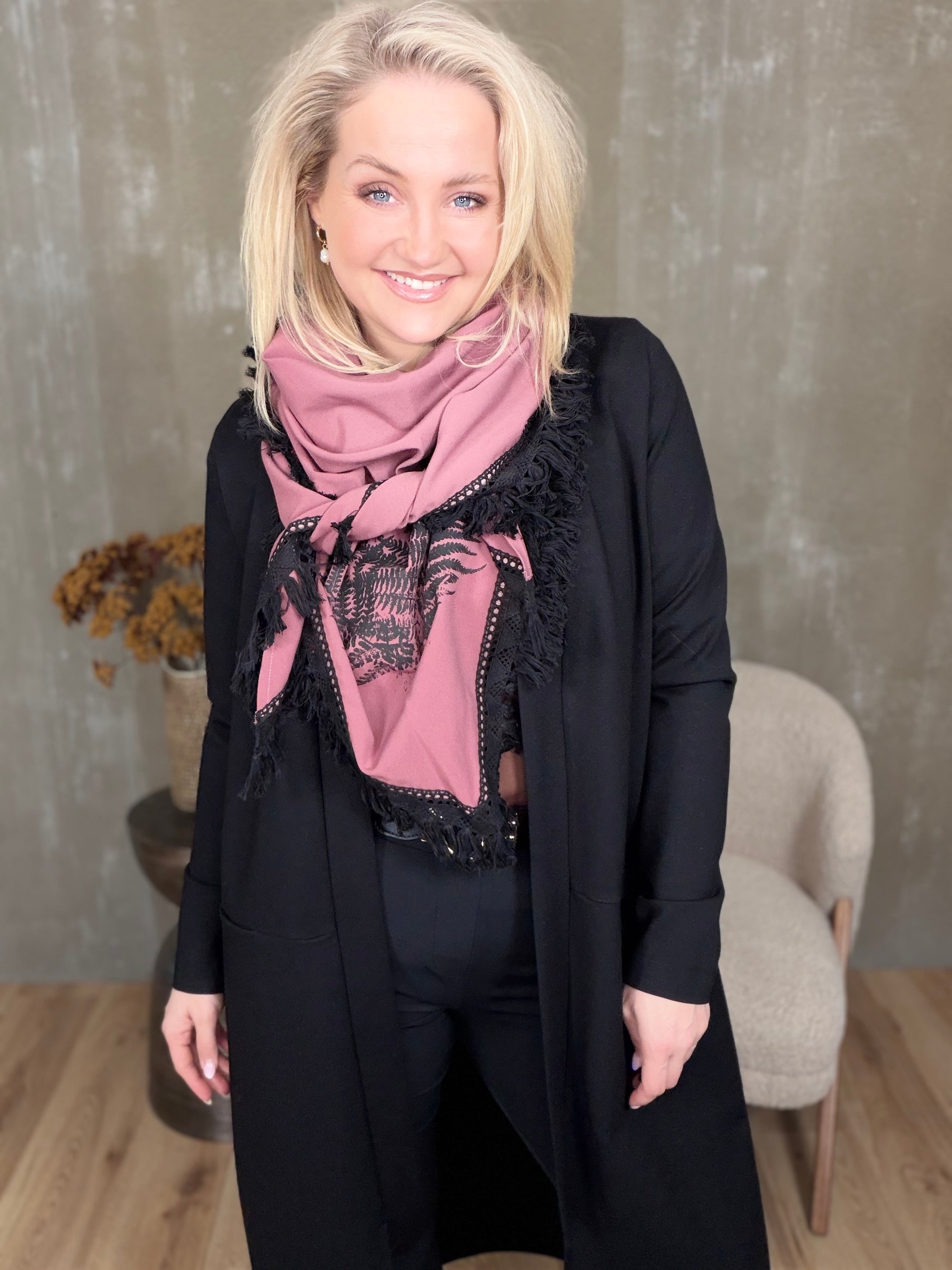 Klútarnir eru tímalausir og poppa upp hvaða dress sem er, þeir eru einnig oft notaðir sem sjöl enda stórir og notalegir með kögri sem gerir þá enn áhugaverðari og gefur þeim örlitla hreyfingu.
