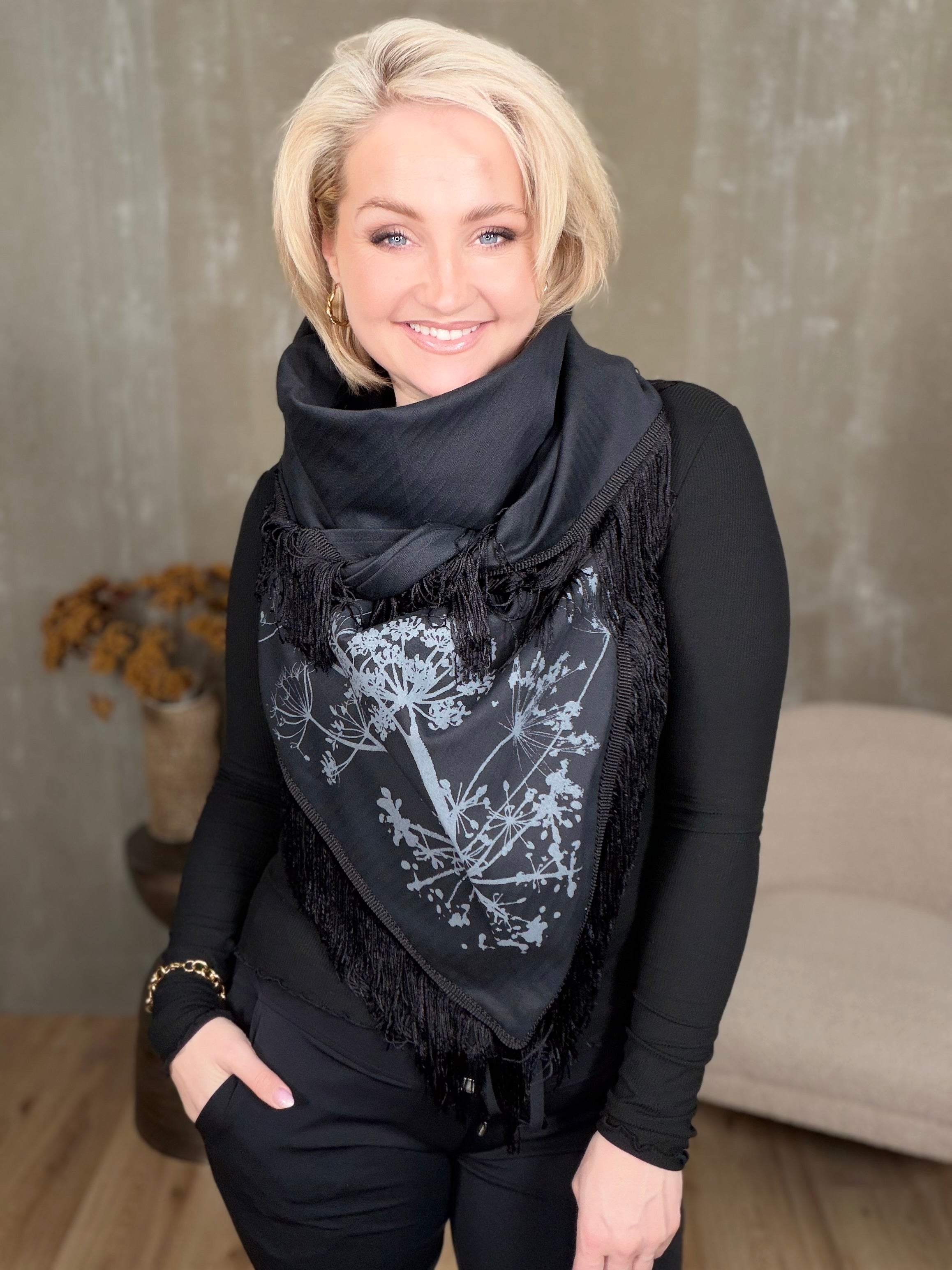 Klútarnir eru tímalausir og poppa upp hvaða dress sem er, þeir eru einnig oft notaðir sem sjöl enda stórir og notalegir með kögri sem gerir þá enn áhugaverðari og gefur þeim örlitla hreyfingu.