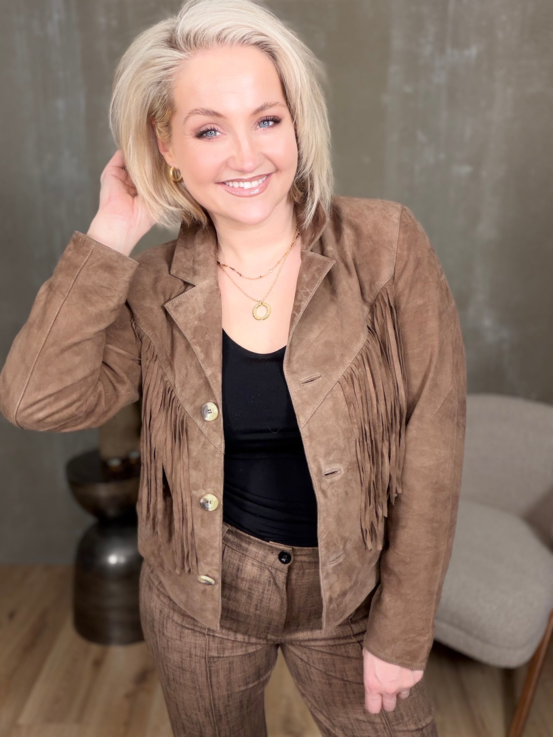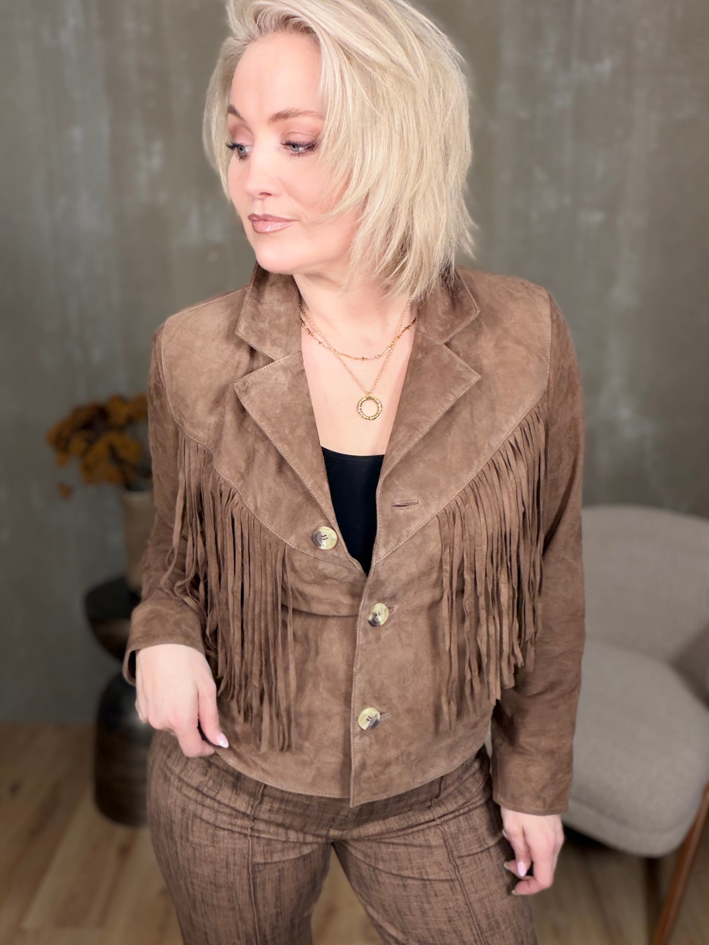 Kögurjakki rúskinn- brúnn