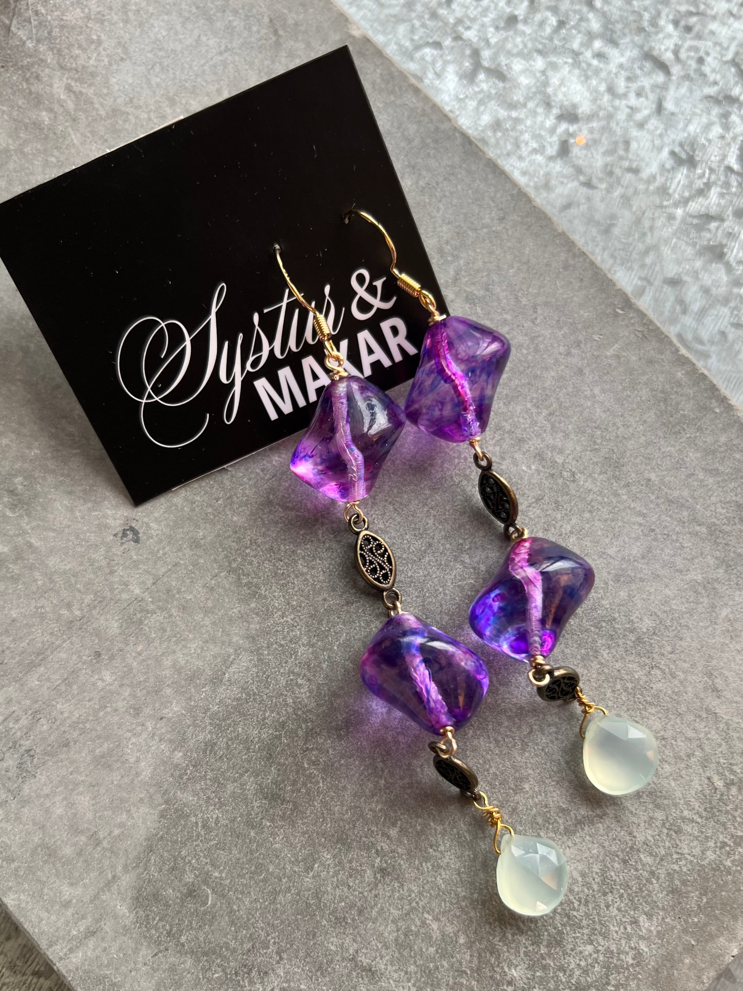 Eyrnalokkarnir hennar samanstanda af endurunnu skarti, tilfinningu og skapandi hugsun sem gerir það að verkum að hvert par er einstakt, og bara til eitt af hverri gerð.