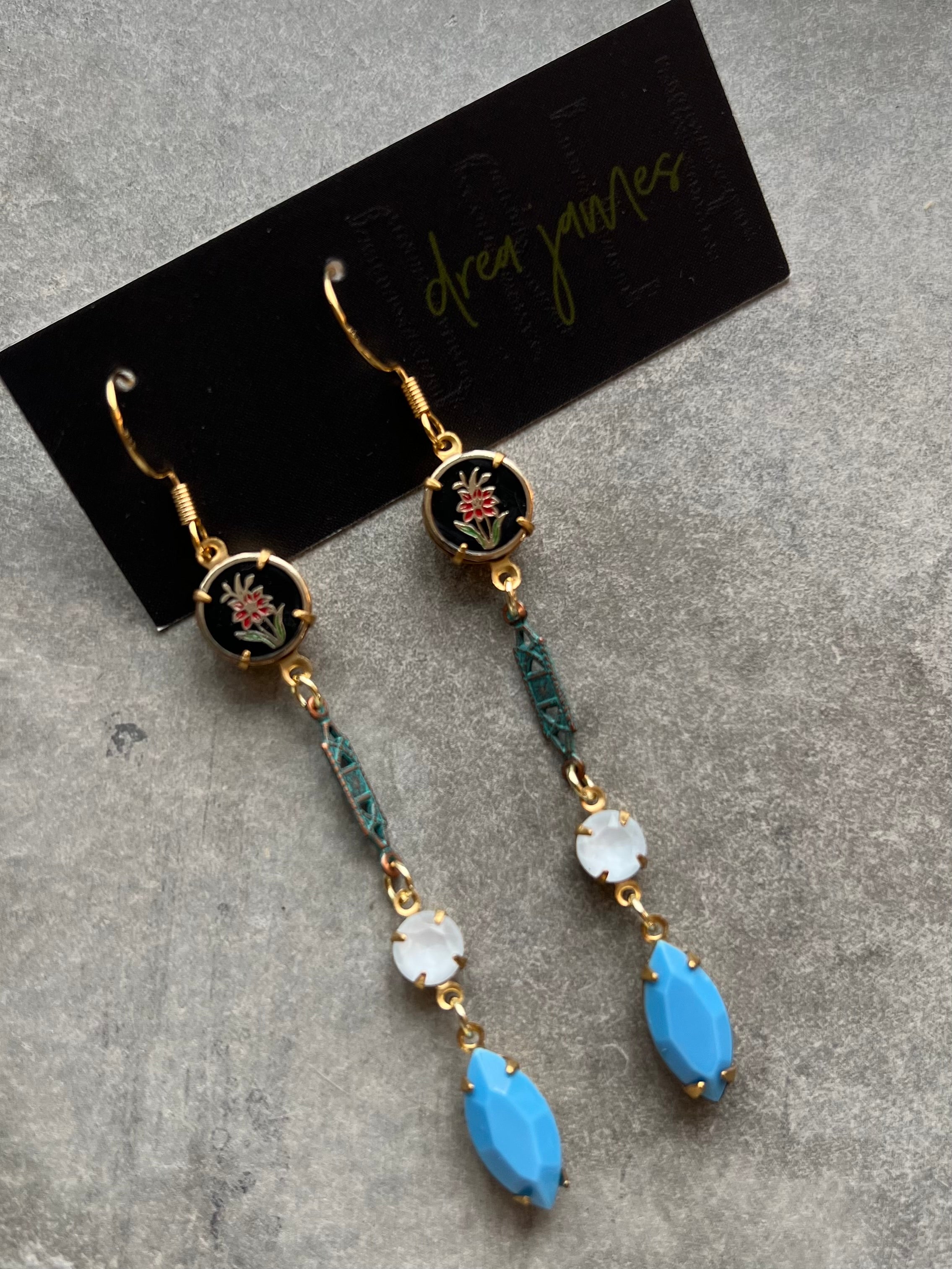 Eyrnalokkarnir hennar samanstanda af endurunnu skarti, tilfinningu og skapandi hugsun sem gerir það að verkum að hvert par er einstakt, og bara til eitt af hverri gerð.