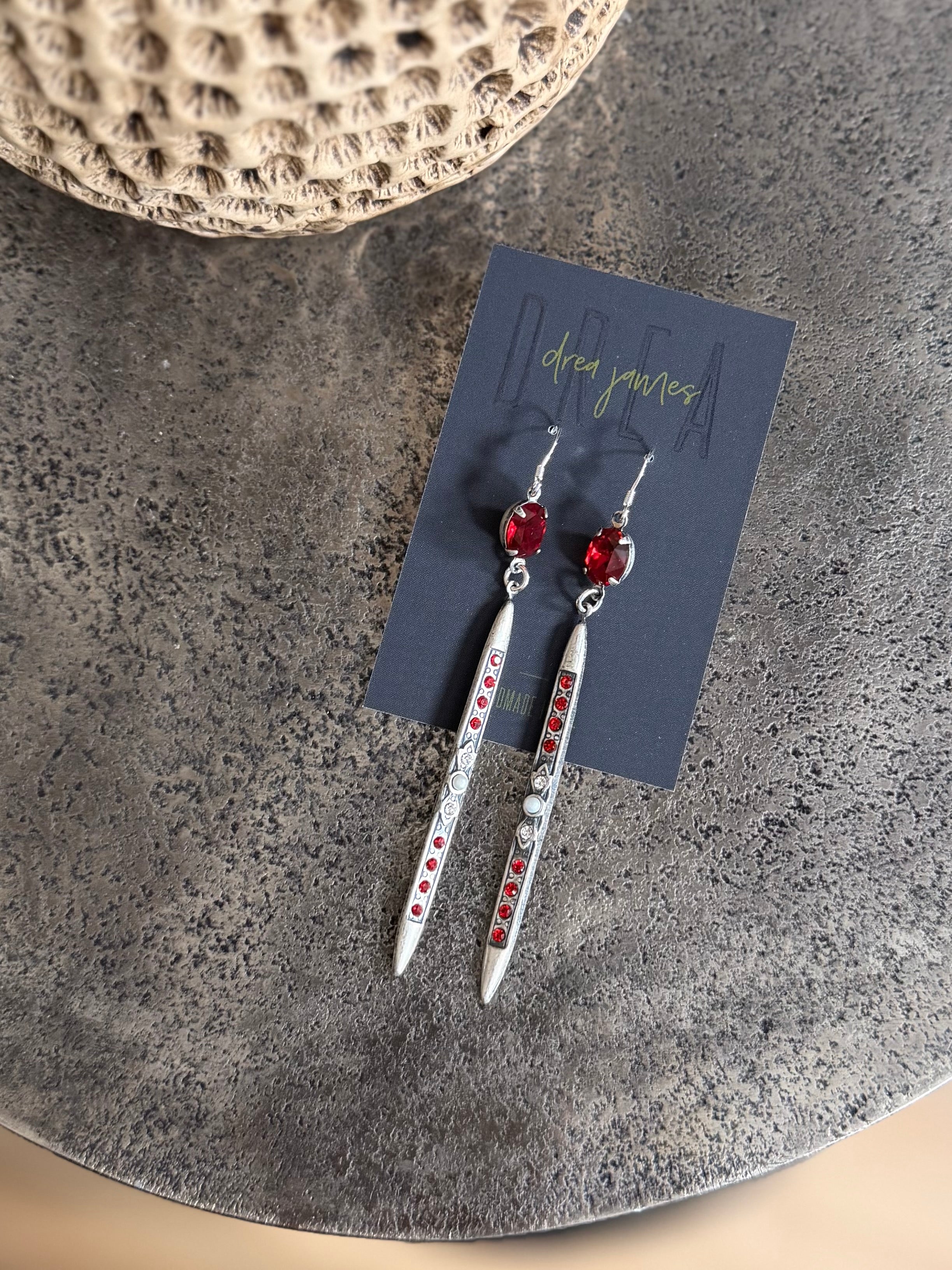Eyrnalokkarnir hennar samanstanda af endurunnu skarti, tilfinningu og skapandi hugsun sem gerir það að verkum að hvert par er einstakt, og bara til eitt af hverri gerð.