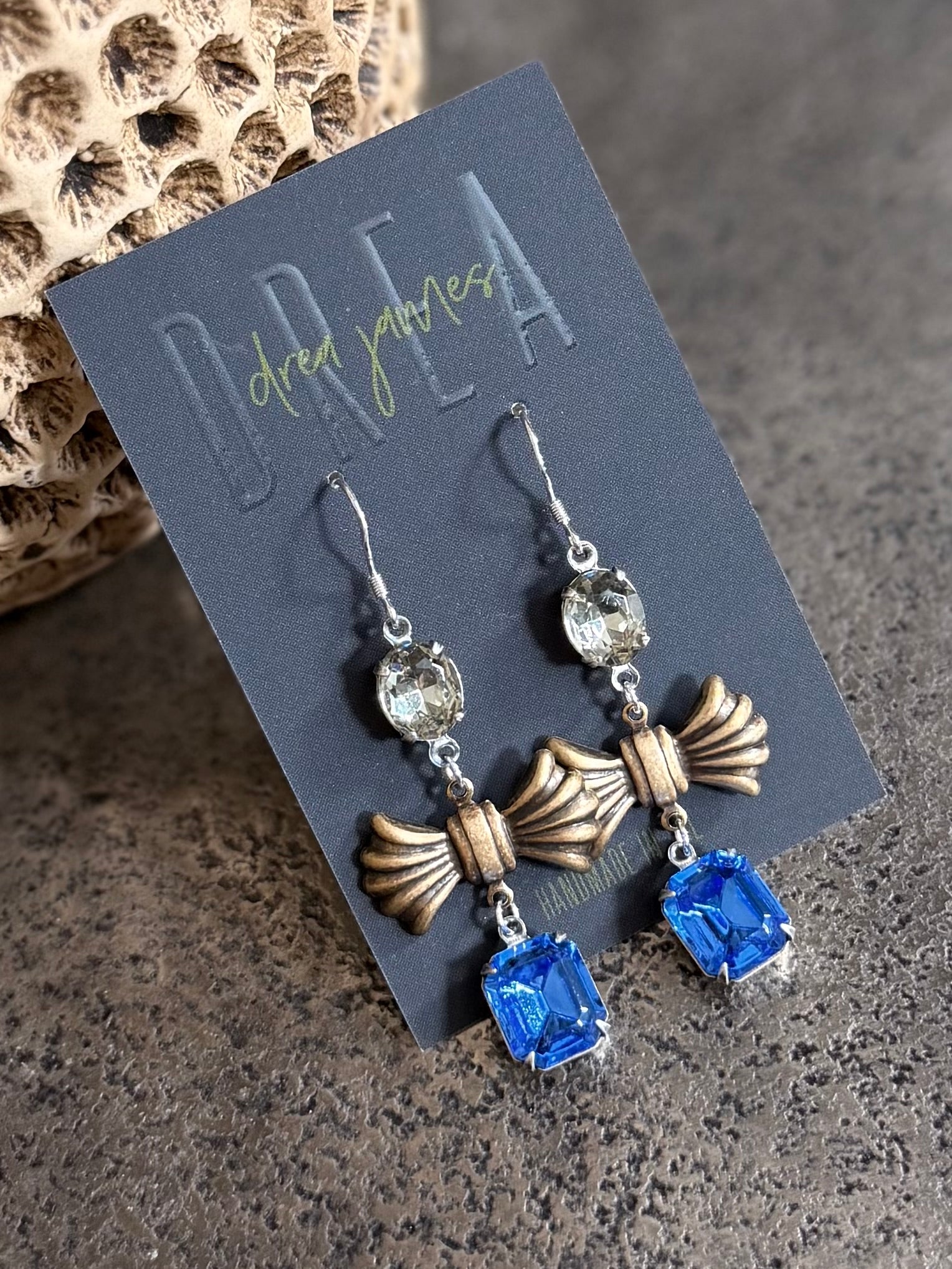 Eyrnalokkarnir hennar samanstanda af endurunnu skarti, tilfinningu og skapandi hugsun sem gerir það að verkum að hvert par er einstakt, og bara til eitt af hverri gerð.