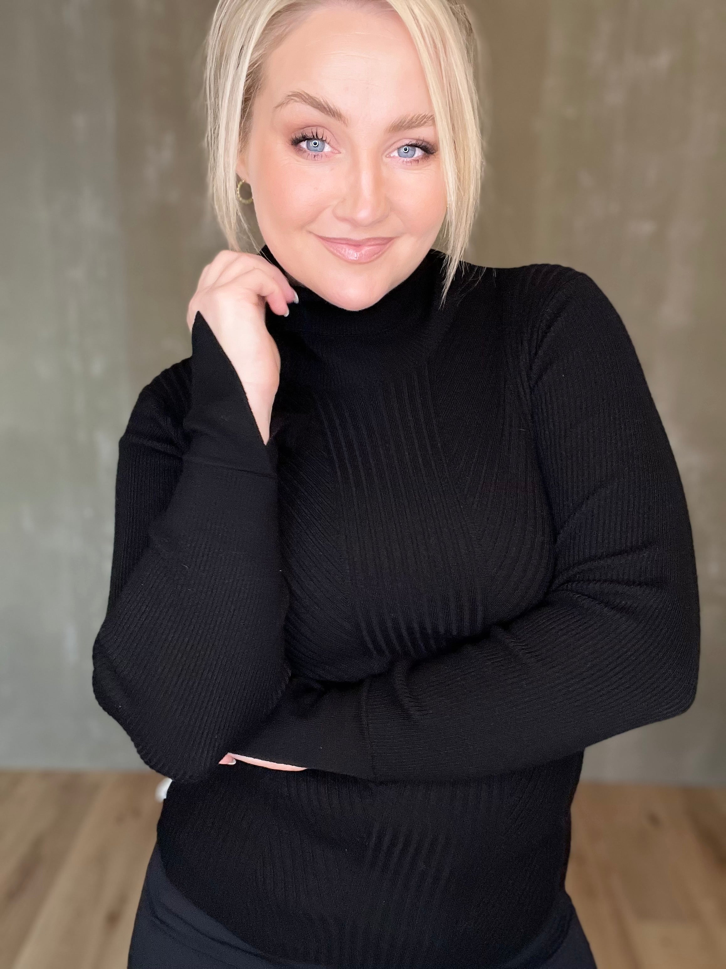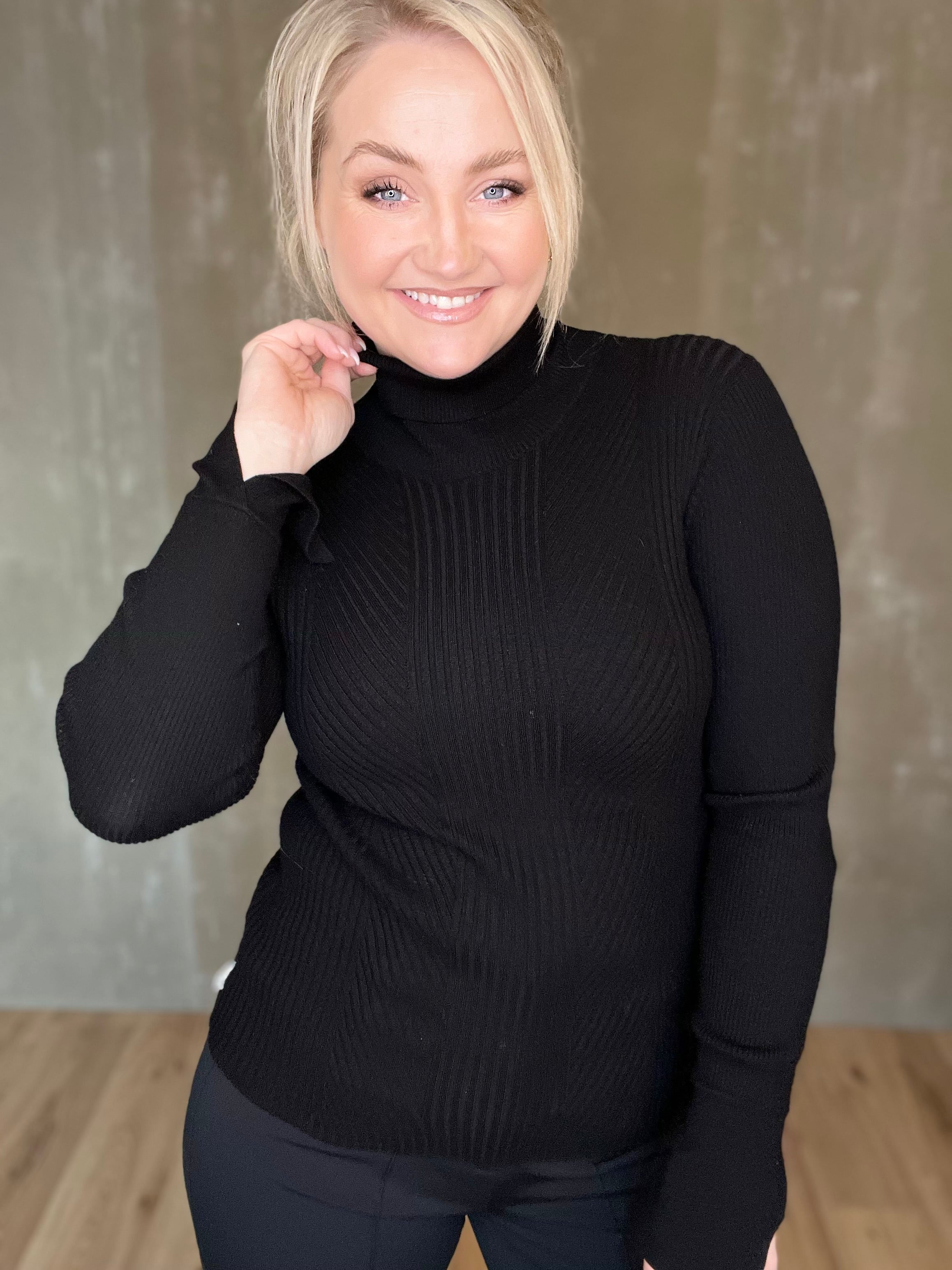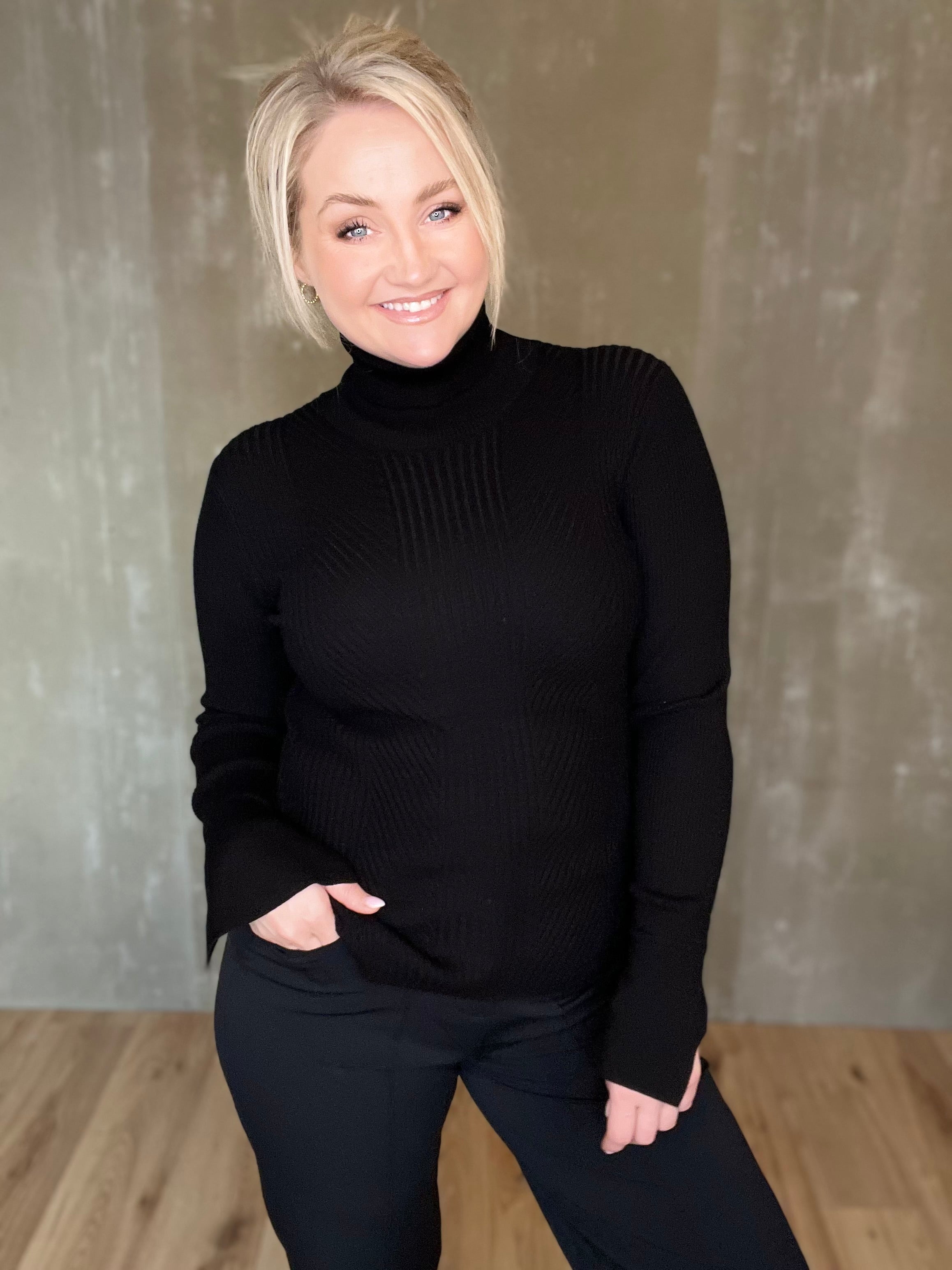 "Eins og að vera í smjöri"... ekki að ég hafi stundað það mikið að "klæðast" smjöri.. en ef ég væri að því gæti ég ímyndað mér að svona yrði tilfinningin. Einstaklega mjúkir peysubolir hér á ferð með fallegum háum kraga og fallegum prjónadetail að framan. Ermarnar eru einnig mjög skemmtilegar en þessi parast vel með blazer jökkum, hvers kyns buxum, girt eða þannig að hún liggi yfir og prjónið gefur henni hellings teygjanleika.